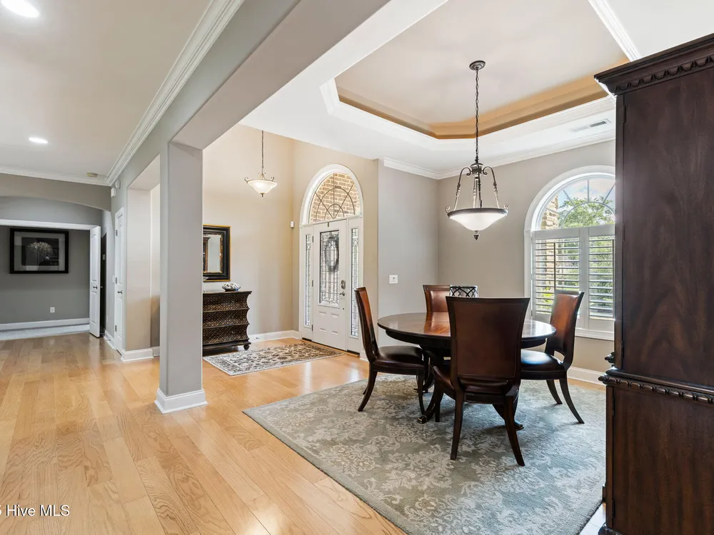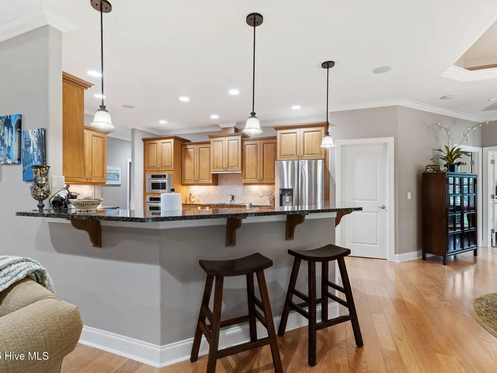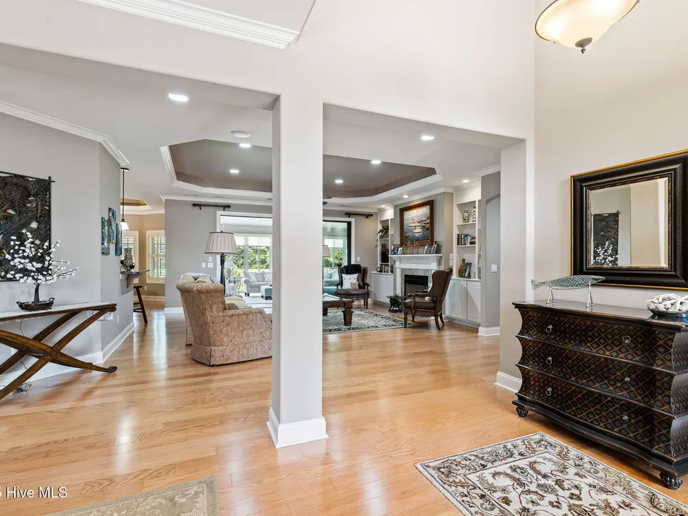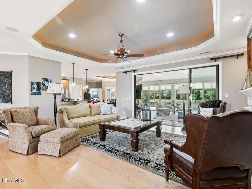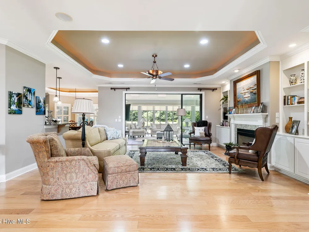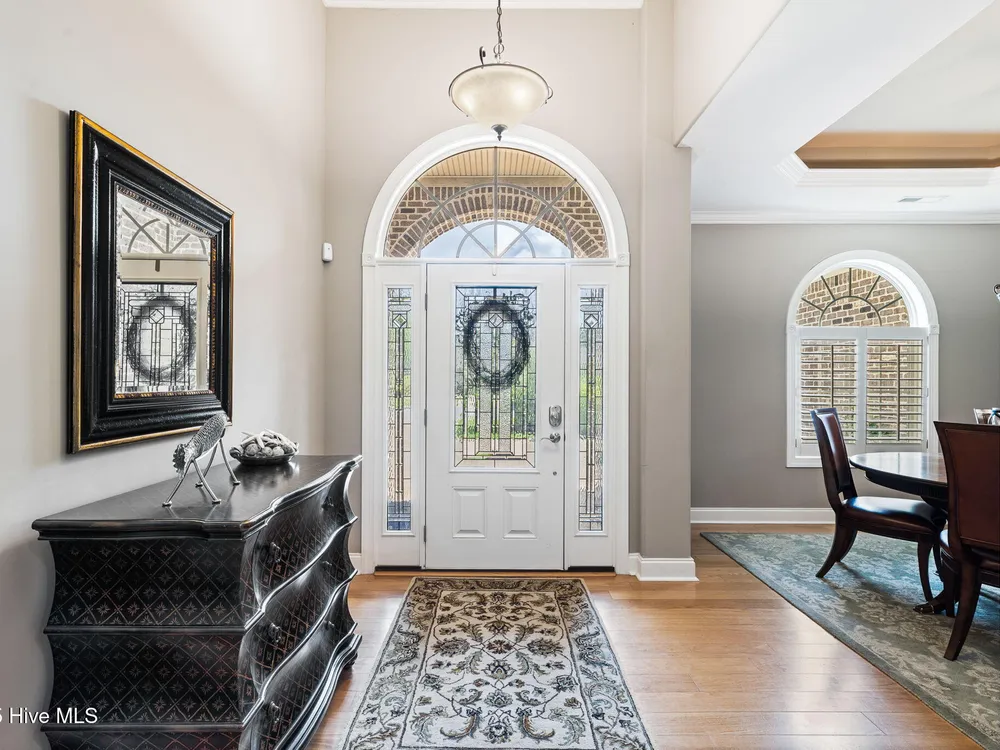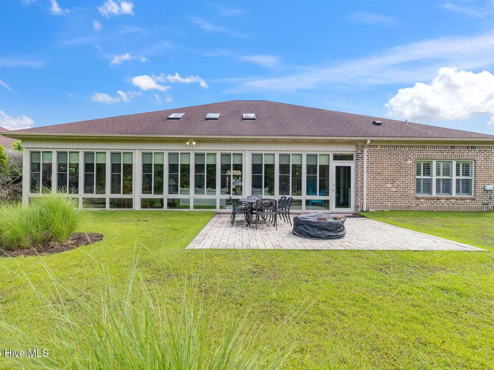 Welcome to The Captiva, a beautifully designed Floridian-style home by the trusted Trusst Builder Group, located in the highly desirable Parkview neighborhood of Brunswick Forest. This home enjoys a prime setting with peaceful views of water, natural landscapes, and the community boardwalk--all within walking distance of the popular Annsdale Park.Thoughtfully designed with an open-concept layout, the home features 3 bedrooms, 3.5 bathrooms, and a private home office, providing the ideal balance of everyday comfort and space for entertaining. One of the most impressive highlights is the 700 sq. ft. glass-enclosed all-seasons Lanai, fully heated and cooled, and equipped with a grill, bar, and refrigerator. It opens to a spacious outdoor patio, where you'll find a wood-burning firepit--a perfect place to relax and enjoy the beautifully landscaped surroundings.Inside, the home is rich with detail, including engineered hardwood flooring throughout the main living areas, illuminated tray and coffered ceilings, built-in cabinetry, and decorative lighting. The chef's kitchen features stainless steel appliances, an electric cooktop, built-in wall oven and microwave, tile backsplash, and a raised granite bar for casual dining.The owner's suite is a spacious retreat, offering two walk-in closets with custom wood shelving and built-in storage. The owner's bathroom includes dual granite vanities and a large walk-in tiled shower, creating a serene, spa-like space. All bedrooms are comfortably carpeted, enhancing the warm and inviting feel throughout the home.With lawn care and irrigation water included in the HOA, residents enjoy a low-maintenance lifestyle. Brunswick Forest offers an unmatched lineup of amenities, including indoor and outdoor pools, a fitness and wellness center, tennis and pickleball courts, walking trails, parks, a dog park, Hammock Lake with kayak launch, and the acclaimed Cape Fear National Golf Course.Schedule your private showing today!