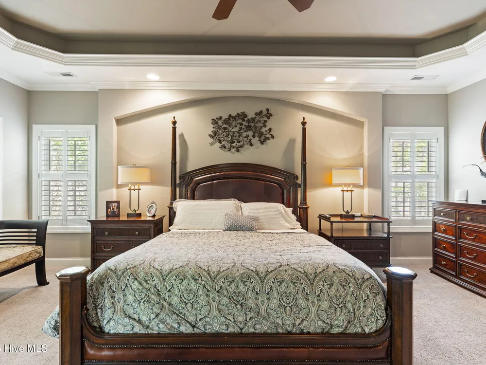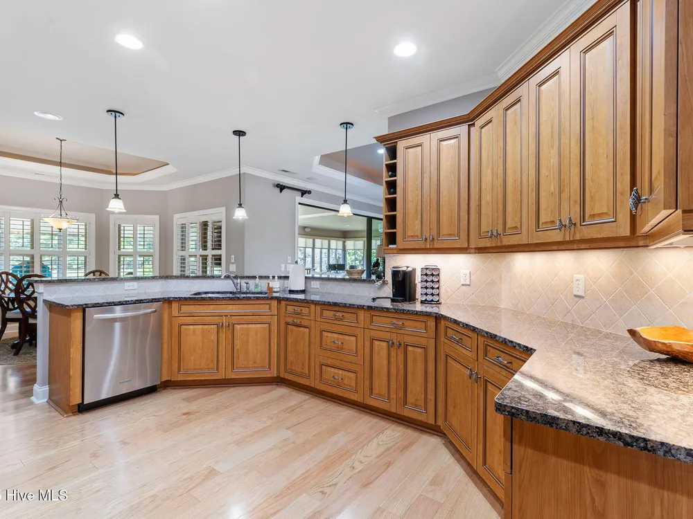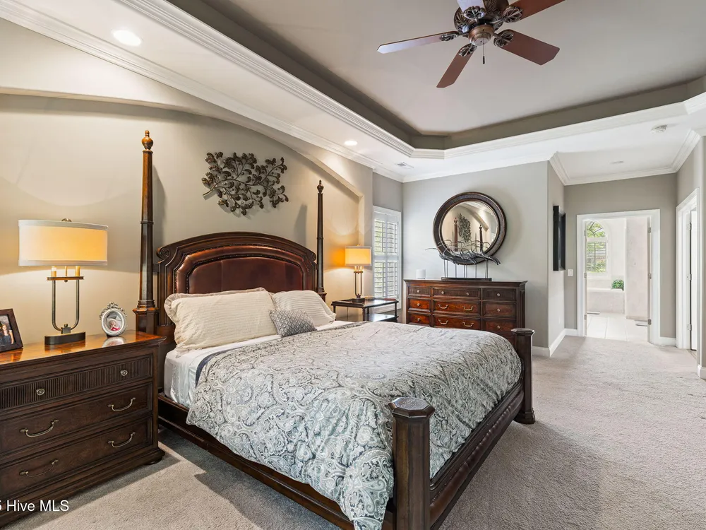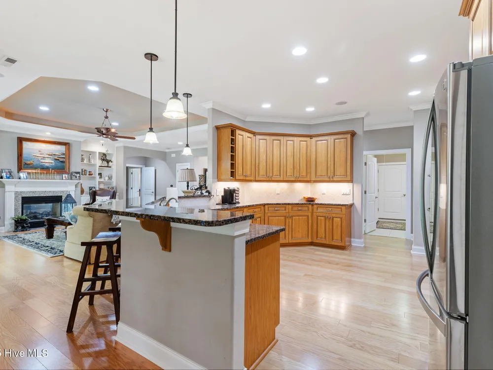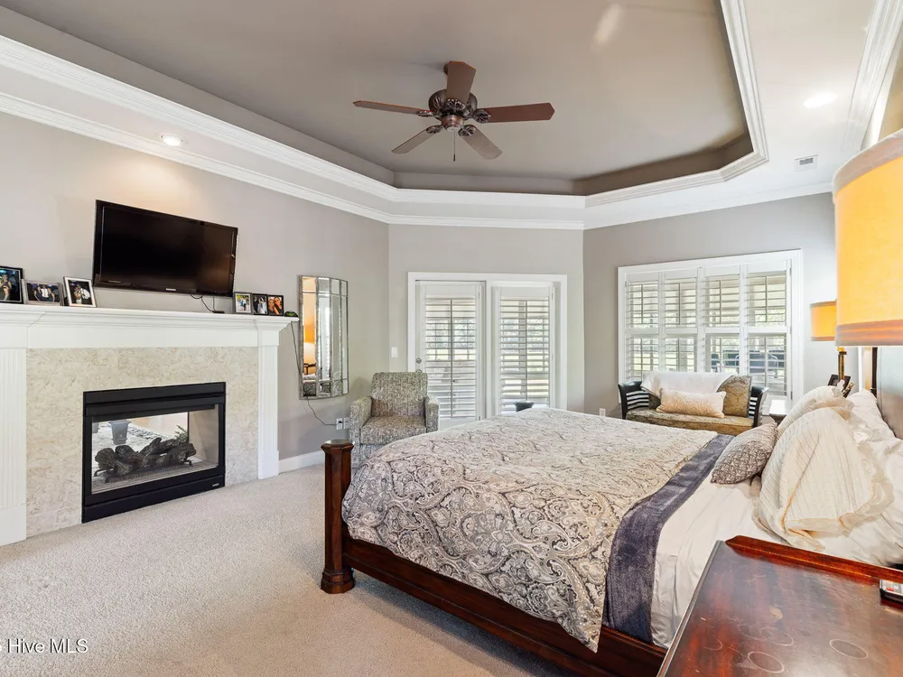 - Blinds/Shades, Sound System, Wet Bar, Walk-In Closet(s), Walk-in Shower, Tray Ceiling(s), Entrance Foyer, Pantry, Mud Room, Master Downstairs, Kitchen Island, High Ceilings, Gas Log, Ceiling Fan(s), Bookcases