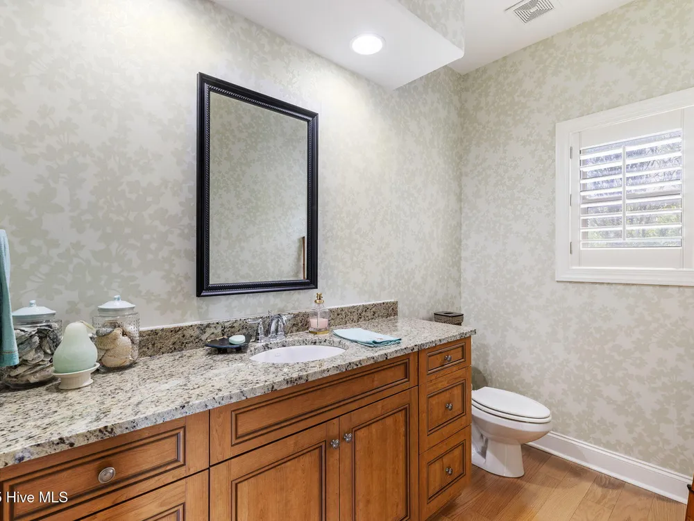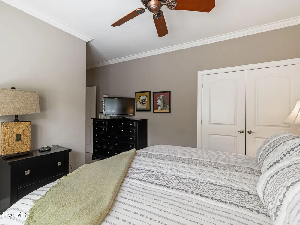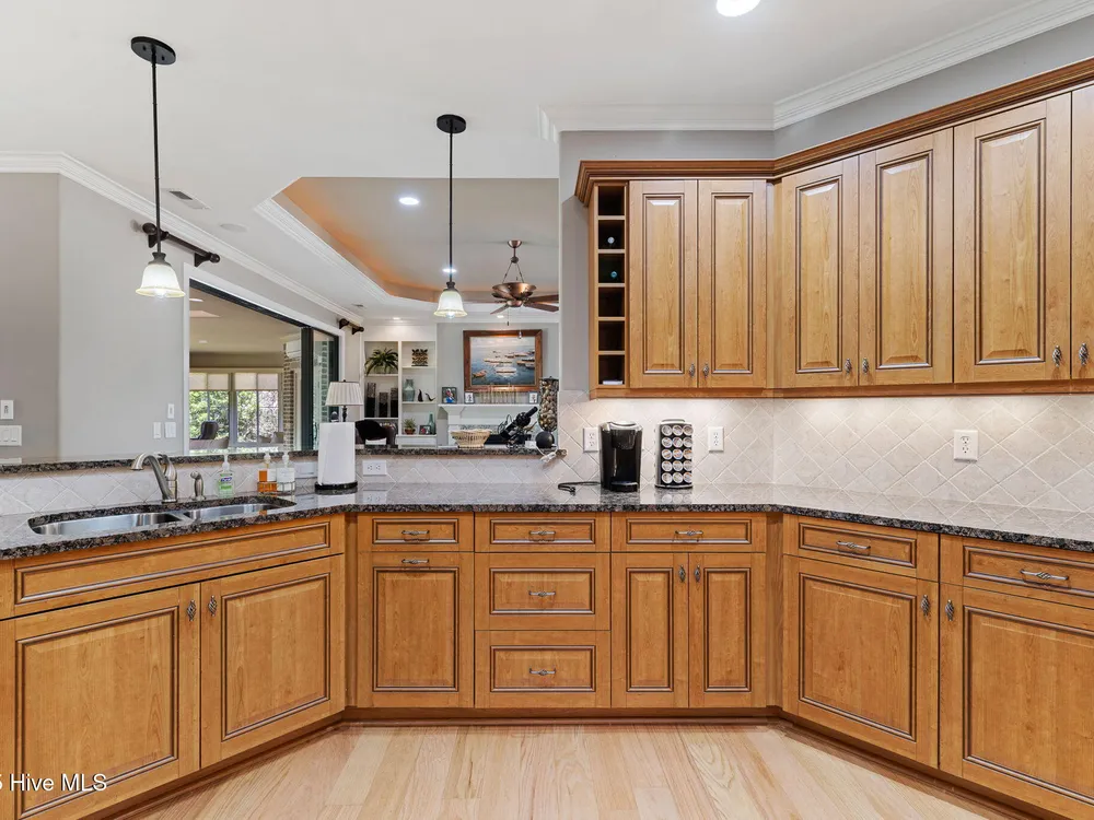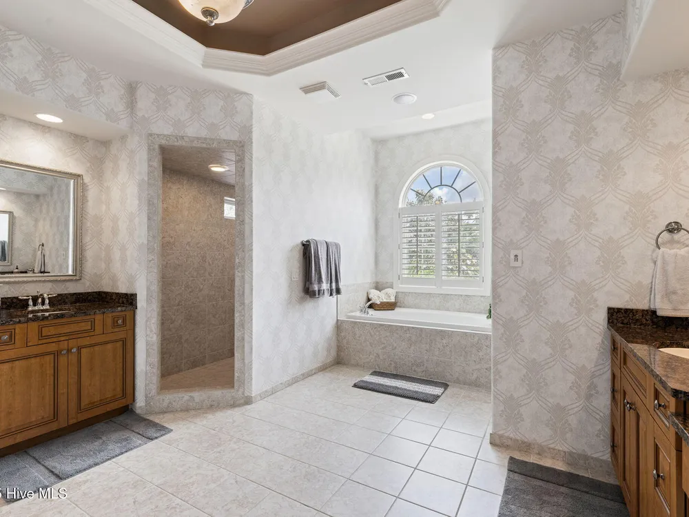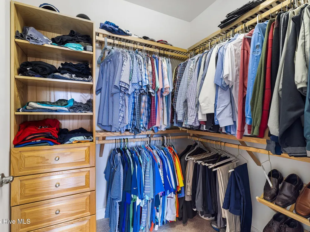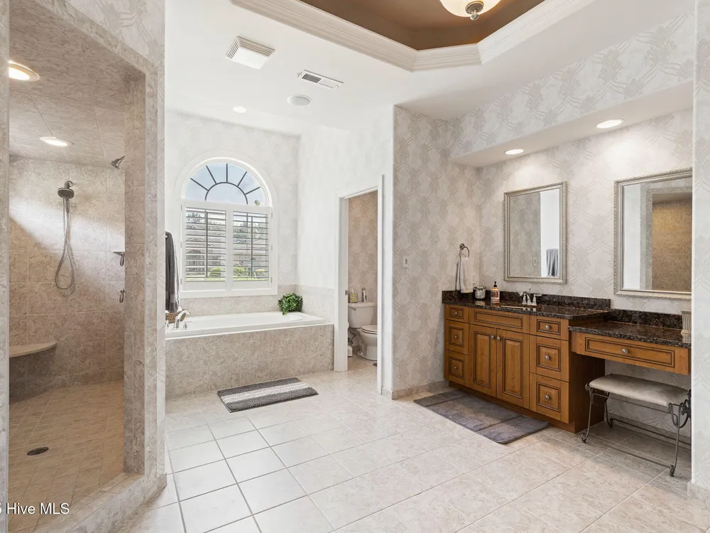 - Blinds/Shades, Sound System, Wet Bar, Walk-In Closet(s), Walk-in Shower, Tray Ceiling(s), Entrance Foyer, Pantry, Mud Room, Master Downstairs, Kitchen Island, High Ceilings, Gas Log, Ceiling Fan(s), Bookcases