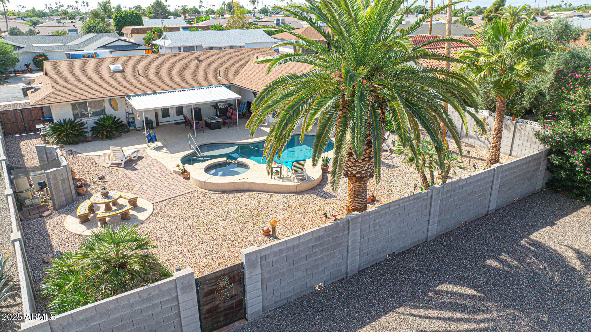 This Home Offers Features And Updates That Make It Truly One Of A Kind In Sun City! Originally A 2-Bedroom, 1-Bathroom Home, It Has Been Beautifully Transformed Into A Spacious 3-Bedroom, 2-Bathroom Retreat Designed For Comfort And Style. As You Step Through The Front Door, Your Eyes Are Immediately Drawn To The Sparkling Backyard Pool Complete With A Built-In Hot Tub And Surrounded By A Cool Deck Patio That's Perfect For Relaxing Or Entertaining. A Full Primary Suite Has Been Added, Creating A Desirable Split Floor Plan With The Guest Bedrooms On The Opposite Side Of The Home. The New Primary Bedroom Is Generously Sized, Featuring A Vaulted Ceiling And Peaceful Views Of The Pool. The Primary Bathroom Showcases A Beautifully Tiled Shower, While The Guest Bathroom Includes A Tub For Added Convenience. Inside, The Living Space Feels Open And Connected. The Wall Between The Kitchen And Living Room Has Been Removed, Creating A Bright And Welcoming Flow. The Kitchen Has Been Fully Updated With Stylish Cabinets And Granite CountertopsThe Perfect Place To Gather And Enjoy The Heart Of The Home. Every Update Was Made With Comfort And Function In Mind, Making This Home A Rare Find In Sun City. Come Experience It For Yourself!