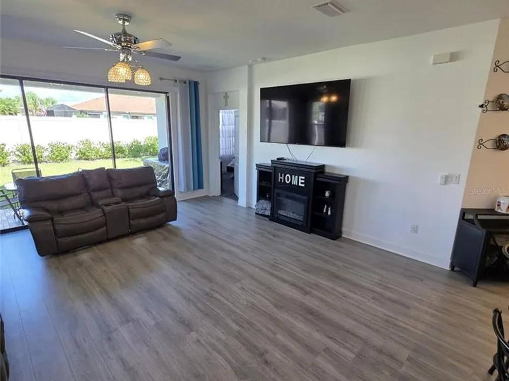 HURRICANE-PROOF BUILDING UPGRADES - NO FLOOD ZONE - LOW HOME INSURANCE - MOVE-IN READY! This meticulously maintained home is packed with high-end upgrades, smart technology, and thoughtful touches throughout. Located in a desirable neighborhood with HOA-covered amenities (including roof, exterior paint, yard work, and more), this home combines convenience, security, and style. Interior Features: Gourmet kitchen with double oven, 6 full-size burners, cast iron grill & griddle plates, and an oversized smart refrigerator/freezer with hot/cold water & ice capabilities Pull-out heavy-duty kitchen drawers for maximum storage, plus a pull-out trash cabinet Filtered waterspout in kitchen sink Updated microwave/convection oven Solid wood shelving in all closets and pantry—no wire shelves Spacious laundry room with built-in cabinets and countertop Remote-controlled ceiling fans in every room, including the lanai Smart, heavy-duty washer & dryer Bonus room with French doors—perfect for a home office or easily converted to a 3rd bedroom All showers have doors for a clean, modern look Comfort & Air Quality: Air purifying system built into the AC, plus UV light for added protection Whole-home water purification system Smart appliances throughout—many of which communicate with each other and with you Wooden shades throughout Exterior Upgrades: Sealed/coated driveway and garage floor Screen door and full all-around gutters Floored lanai, perfect for relaxing or entertaining Garage features: built-in side shelving, hidden overhead storage, bike holders, and a smart keypad garage door opener Safety & Security: Wired alarm system with sensors on every window and door Indoor & outdoor security cameras—no batteries to change, all professionally wired Panic alarm in second bedroom Connected fire alarm system Up-to-date hurricane protection features result in lower home insurance premiums This home is truly turn-key, offering peace of mind, luxury, and functionality in every detail. Don’t miss the opportunity to own a home that’s been upgraded with care and lived in with pride.