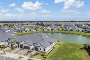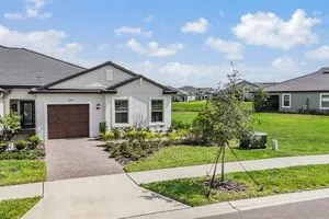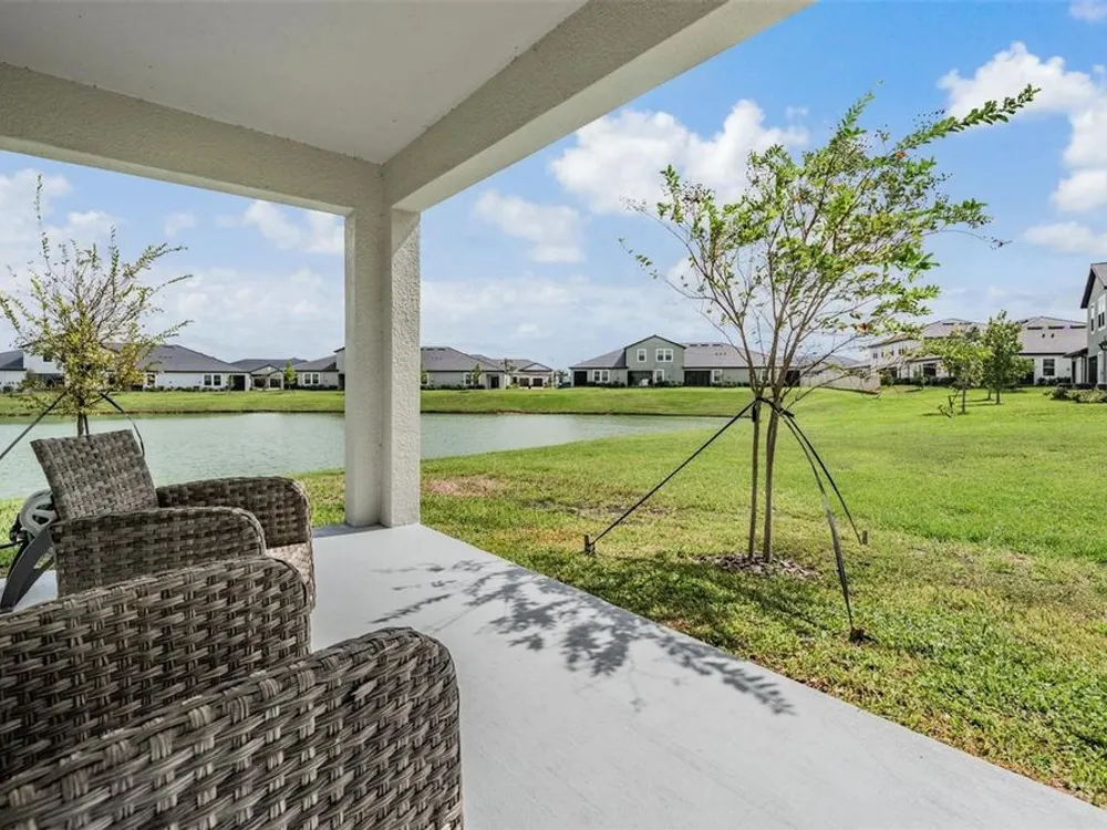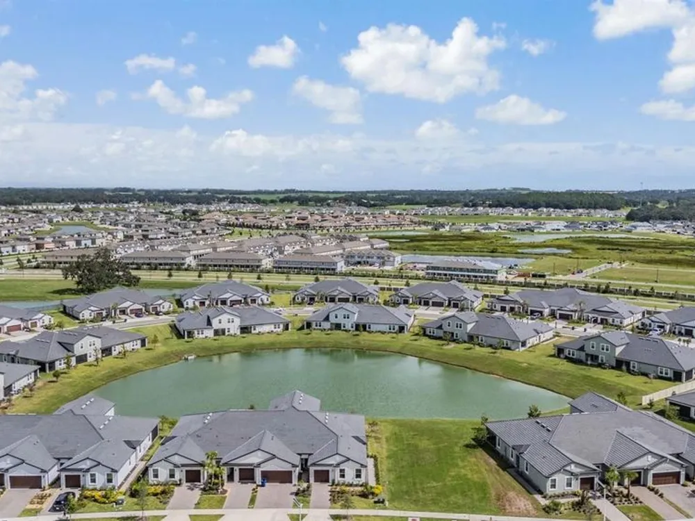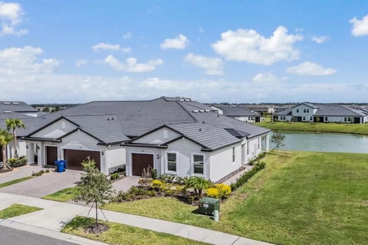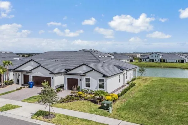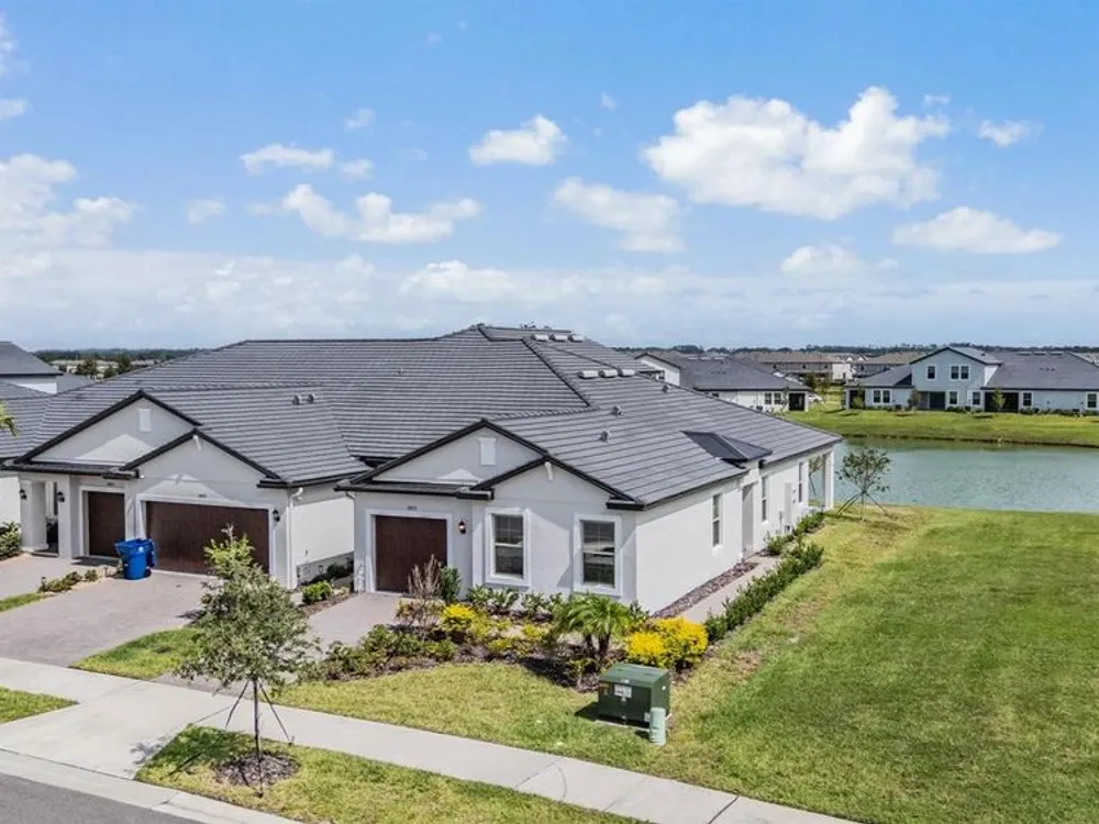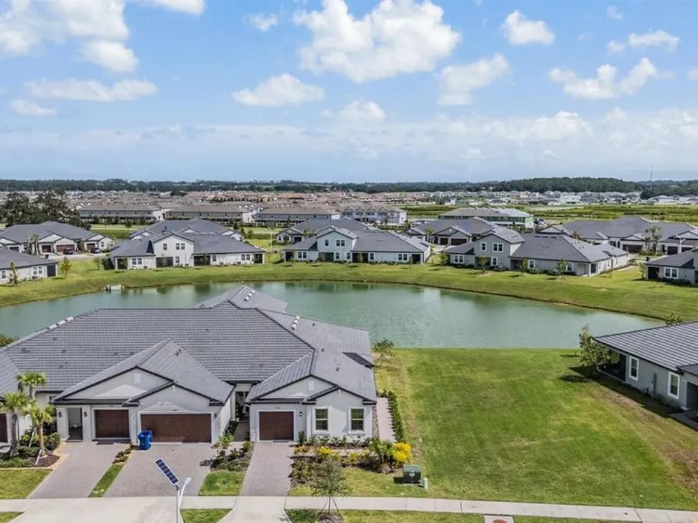 Location, Location, Location! Just steps away from the Clubhouse and Amenity Center! This pristine Pottery Barn inspired Villa with wonderful POND LOT in Medley Active Adult. For those better than 55 years young, presents an exceptional lifestyle just beyond the confines of your home. As a resident, you'll enjoy exclusive Clubhouse access with a full calendar of events daily! You will also enjoy a restaurant & bar, heated pool w/cabanas, ballroom, billiards room, card room, state of the art fitness center, pickleball & tennis courts, bocce ball, yoga, line dancing and private active adult events. PLUS included in your HOA is a 15-acre lagoon membership w/soft, sandy beaches including a swim-up bar, kayaking, paddleboarding, obstacle course, waterslides, corn hole games, and tons of community events! Be sure & invite friends or family to come along with you as you may gift them passes or pay a deeply discounted rate! This immaculate villa will please even the most selective buyers! Comprised of 2 spacious bedrooms, 2 Full Baths + an office/den, and 1 car garage. Your new home includes lots of upgrades including crown molding, quartz countertops throughout, plenty of lighting, stainless appliances and white cabinetry. Sliding glass doors lead to your Lania with a wonderful pond view and extra space between villas. Great spot to sit and relax and enjoy a cup of coffee or glass of wine! As you step inside, you'll be greeted by a seamless flow of open living spaces, making it ideal for both relaxation and entertaining. Get ready to make memories that will last a lifetime! Your dream home awaits; you will be enjoying the CAREFREE FLORIDA RESORT LIFESTYLE in your new home as quickly as you are able to move in! Gorgeous curb appeal on this block villa! Enjoy 42" Cabinets, and Walk-in Pantry in this gorgeous kitchen. Primary Suite includes ensuite bath, dual sinks, and Walk-in Closet to keep you organized, and ceiling fans to keep you cool. High-speed (ULTRAFI) internet, premium cable, yard maintenance & exterior painting and homeowners' insurance for structure are covered by HOA. The location of this residence is equally remarkable, situated in close proximity to premier shopping destinations, and an array of dining options, you'll find yourself immersed in a vibrant community that strikes a perfect balance between exclusivity and convenience. Ride your Golf Cart to the Clubhouse, Publix, restaurants, Farmers Market, Chick-fil-A, Banks, Starbucks, Nail Shops, and more! Close to Advent Health Hospitals, BayCare Hospital, Florida Medical Clinic, Wire Grass Mall, Tampa Premium Outlet Mall, Krate at the Grove, Sam's Club, Costco, Golf Courses & Movie Theater. Easy access to I75, 275, T