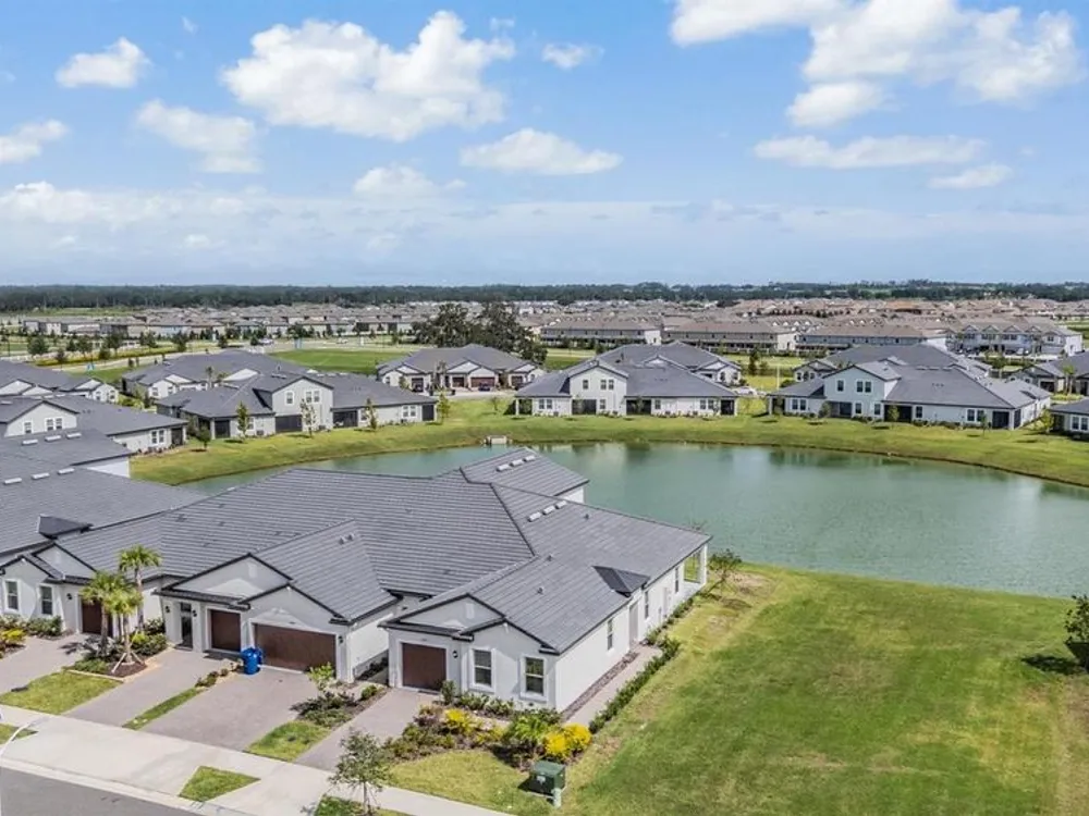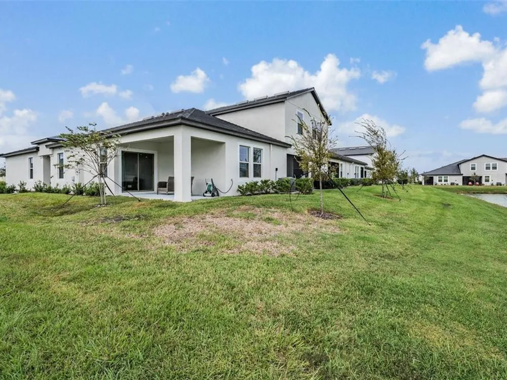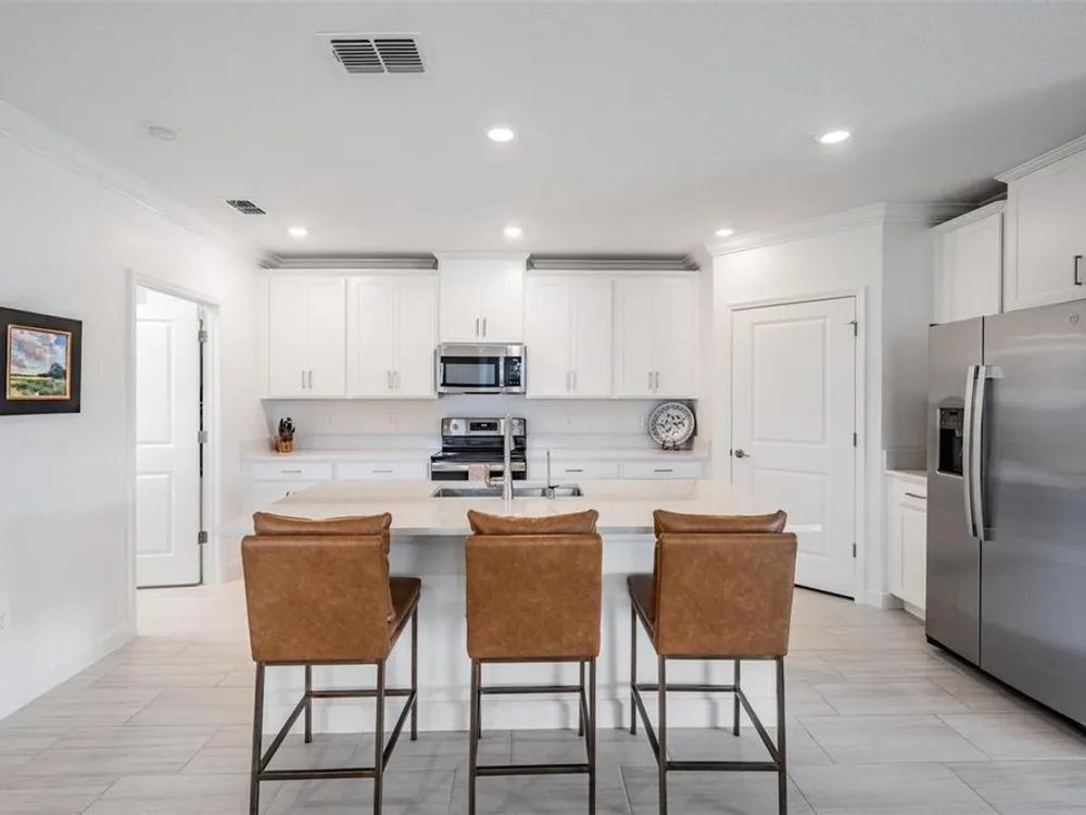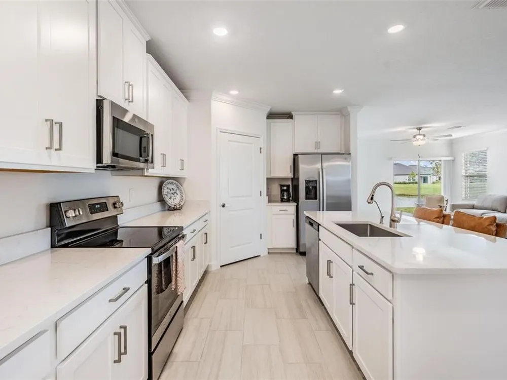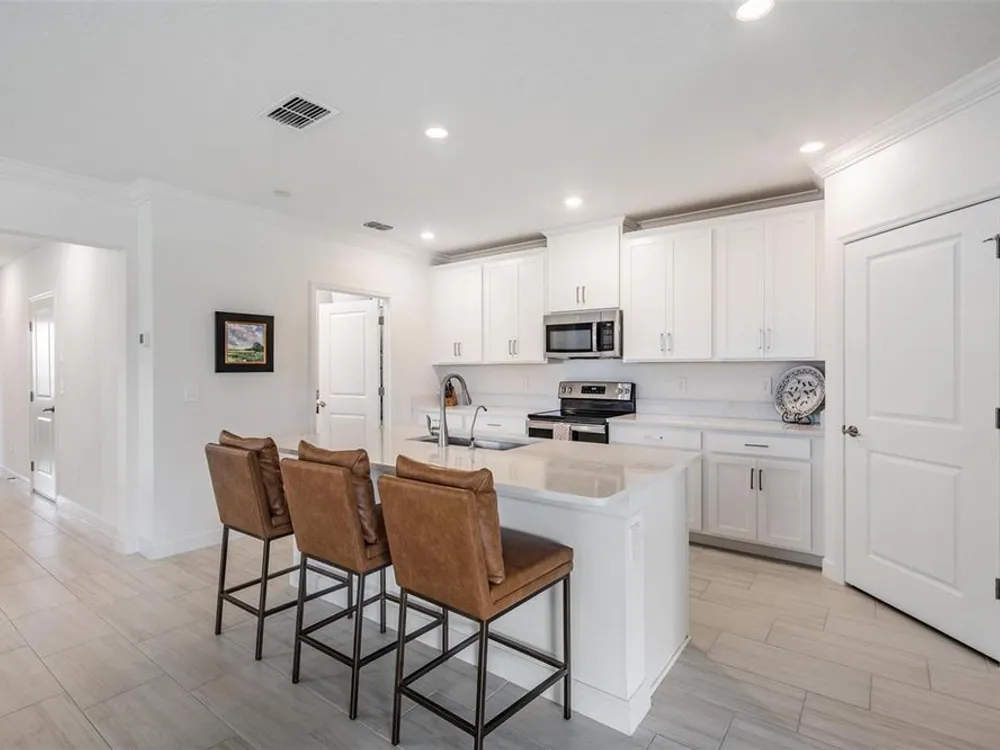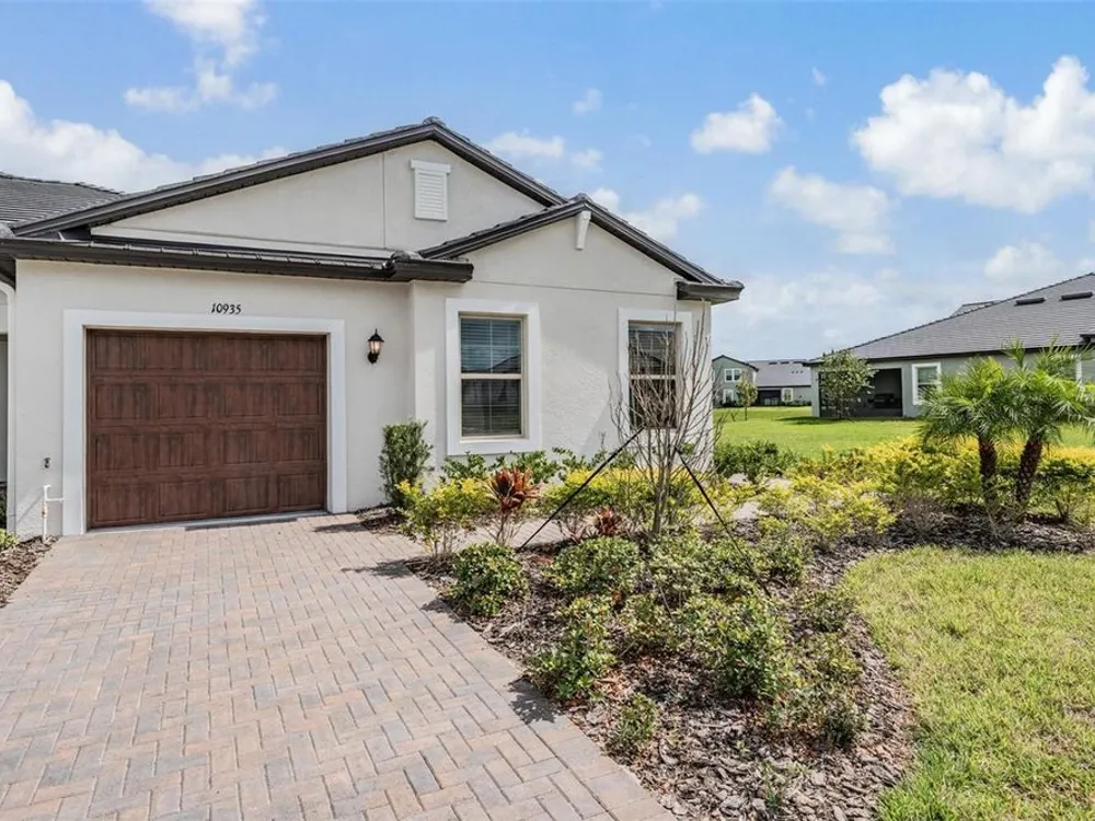 Location, Location, Location! Just steps away from the Clubhouse and Amenity Center! This pristine Pottery Barn inspired Villa with wonderful POND LOT in Medley Active Adult. For those better than 55 years young, presents an exceptional lifestyle just beyond the confines of your home. As a resident, you'll enjoy exclusive Clubhouse access with a full calendar of events daily! You will also enjoy a restaurant & bar, heated pool w/cabanas, ballroom, billiards room, card room, state of the art fitness center, pickleball & tennis courts, bocce ball, yoga, line dancing and private active adult events. PLUS included in your HOA is a 15-acre lagoon membership w/soft, sandy beaches including a swim-up bar, kayaking, paddleboarding, obstacle course, waterslides, corn hole games, and tons of community events! Be sure & invite friends or family to come along with you as you may gift them passes or pay a deeply discounted rate! This immaculate villa will please even the most selective buyers! Comprised of 2 spacious bedrooms, 2 Full Baths + an office/den, and 1 car garage. Your new home includes lots of upgrades including crown molding, quartz countertops throughout, plenty of lighting, stainless appliances and white cabinetry. Sliding glass doors lead to your Lania with a wonderful pond view and extra space between villas. Great spot to sit and relax and enjoy a cup of coffee or glass of wine! As you step inside, you'll be greeted by a seamless flow of open living spaces, making it ideal for both relaxation and entertaining. Get ready to make memories that will last a lifetime! Your dream home awaits; you will be enjoying the CAREFREE FLORIDA RESORT LIFESTYLE in your new home as quickly as you are able to move in! Gorgeous curb appeal on this block villa! Enjoy 42" Cabinets, and Walk-in Pantry in this gorgeous kitchen. Primary Suite includes ensuite bath, dual sinks, and Walk-in Closet to keep you organized, and ceiling fans to keep you cool. High-speed (ULTRAFI) internet, premium cable, yard maintenance & exterior painting and homeowners' insurance for structure are covered by HOA. The location of this residence is equally remarkable, situated in close proximity to premier shopping destinations, and an array of dining options, you'll find yourself immersed in a vibrant community that strikes a perfect balance between exclusivity and convenience. Ride your Golf Cart to the Clubhouse, Publix, restaurants, Farmers Market, Chick-fil-A, Banks, Starbucks, Nail Shops, and more! Close to Advent Health Hospitals, BayCare Hospital, Florida Medical Clinic, Wire Grass Mall, Tampa Premium Outlet Mall, Krate at the Grove, Sam's Club, Costco, Golf Courses & Movie Theater. Easy access to I75, 275, T