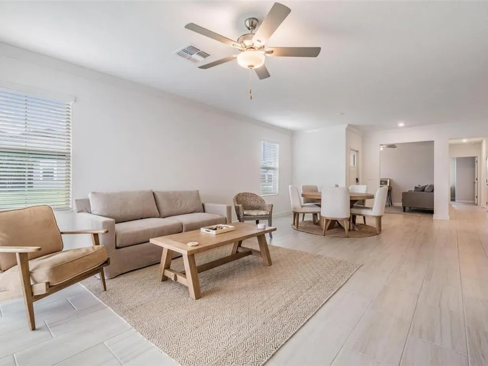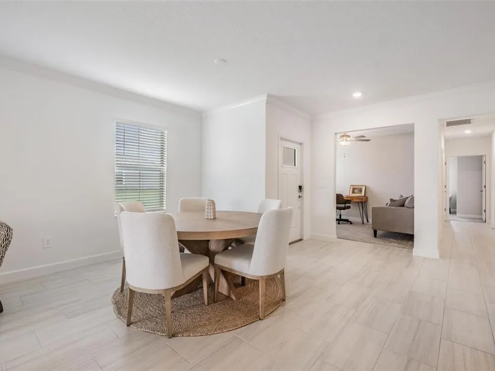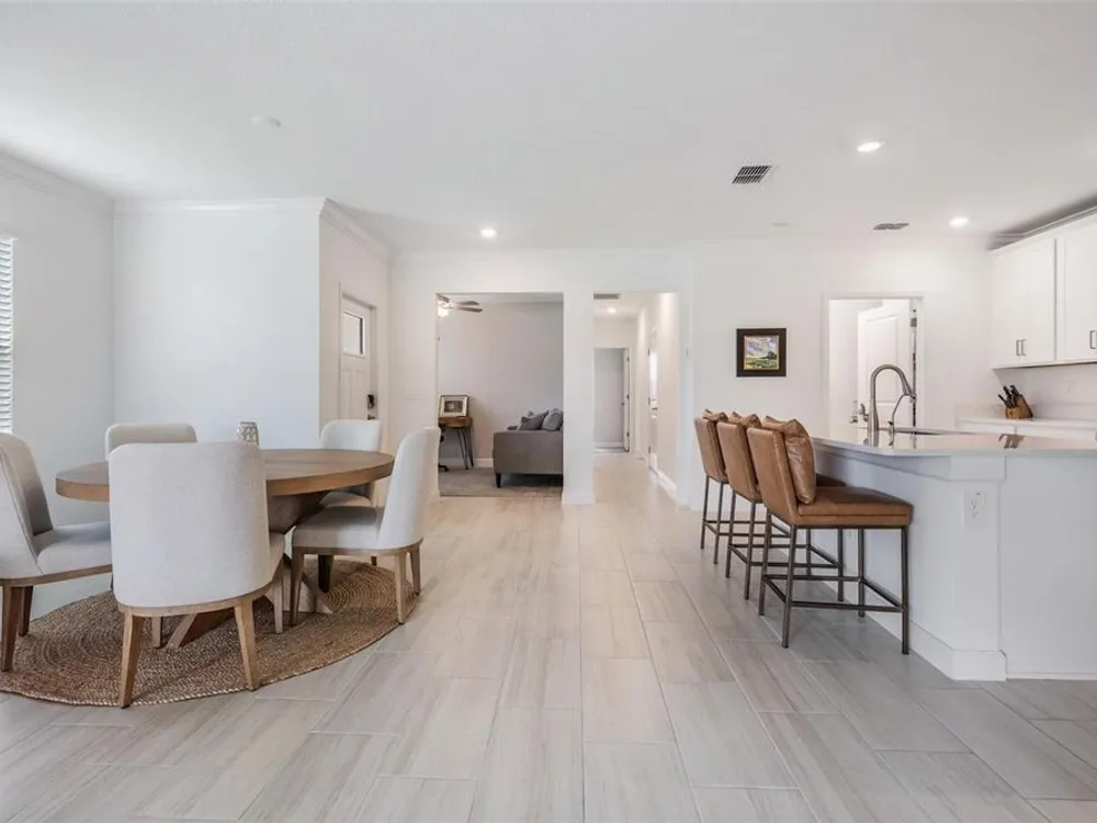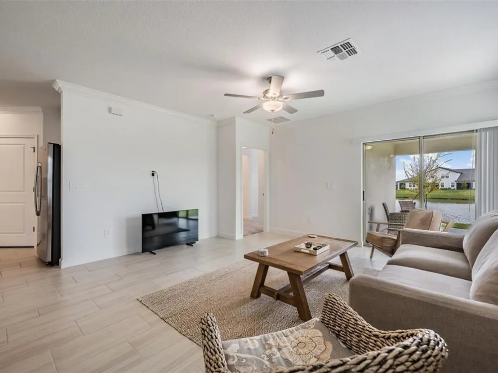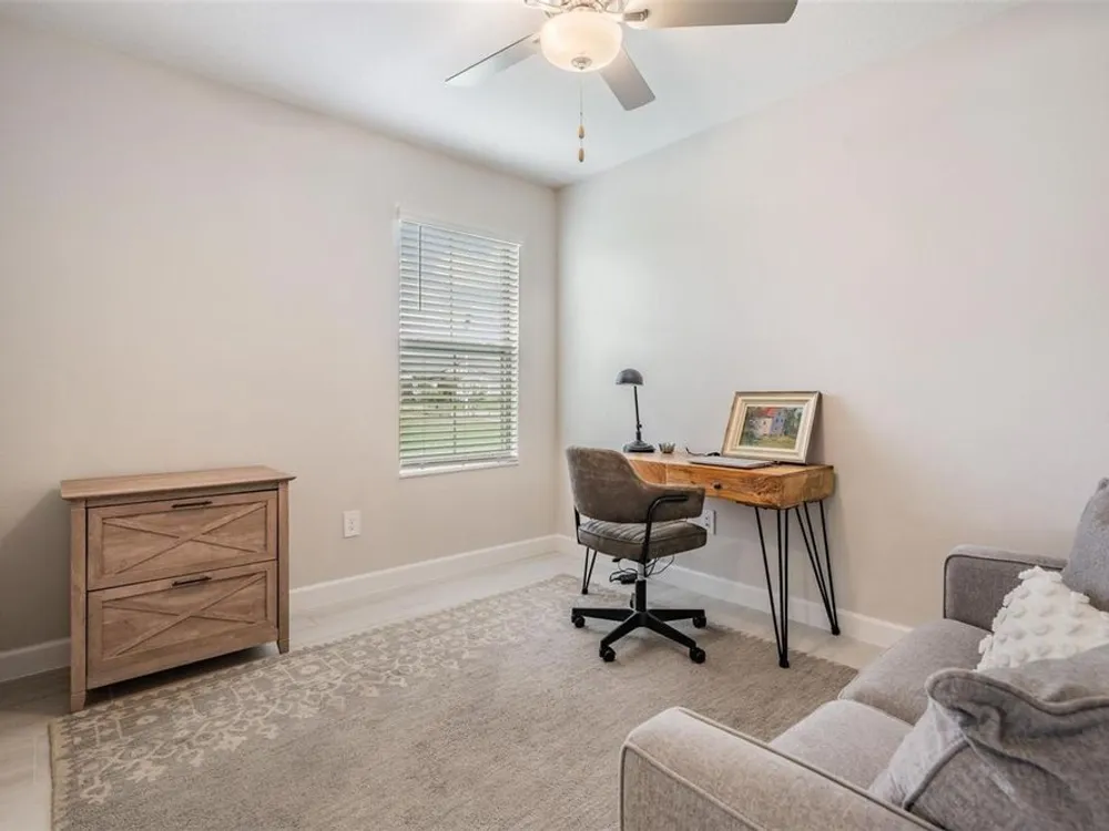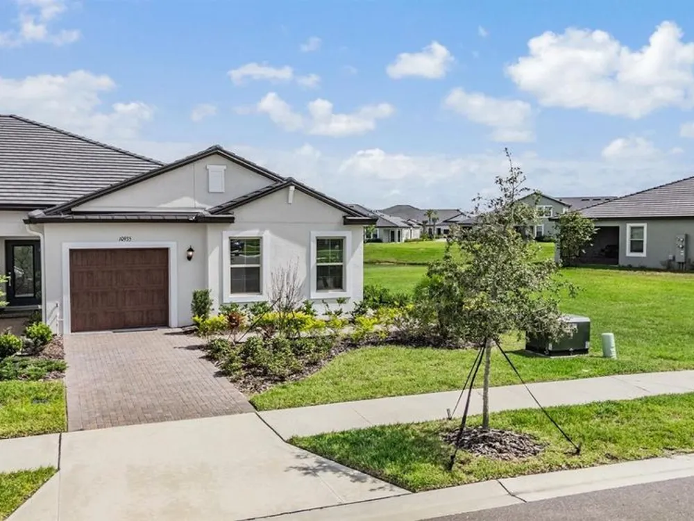 Location, Location, Location! Just steps away from the Clubhouse and Amenity Center! This pristine Pottery Barn inspired Villa with wonderful POND LOT in Medley Active Adult. For those better than 55 years young, presents an exceptional lifestyle just beyond the confines of your home. As a resident, you'll enjoy exclusive Clubhouse access with a full calendar of events daily! You will also enjoy a restaurant & bar, heated pool w/cabanas, ballroom, billiards room, card room, state of the art fitness center, pickleball & tennis courts, bocce ball, yoga, line dancing and private active adult events. PLUS included in your HOA is a 15-acre lagoon membership w/soft, sandy beaches including a swim-up bar, kayaking, paddleboarding, obstacle course, waterslides, corn hole games, and tons of community events! Be sure & invite friends or family to come along with you as you may gift them passes or pay a deeply discounted rate! This immaculate villa will please even the most selective buyers! Comprised of 2 spacious bedrooms, 2 Full Baths + an office/den, and 1 car garage. Your new home includes lots of upgrades including crown molding, quartz countertops throughout, plenty of lighting, stainless appliances and white cabinetry. Sliding glass doors lead to your Lania with a wonderful pond view and extra space between villas. Great spot to sit and relax and enjoy a cup of coffee or glass of wine! As you step inside, you'll be greeted by a seamless flow of open living spaces, making it ideal for both relaxation and entertaining. Get ready to make memories that will last a lifetime! Your dream home awaits; you will be enjoying the CAREFREE FLORIDA RESORT LIFESTYLE in your new home as quickly as you are able to move in! Gorgeous curb appeal on this block villa! Enjoy 42" Cabinets, and Walk-in Pantry in this gorgeous kitchen. Primary Suite includes ensuite bath, dual sinks, and Walk-in Closet to keep you organized, and ceiling fans to keep you cool. High-speed (ULTRAFI) internet, premium cable, yard maintenance & exterior painting and homeowners' insurance for structure are covered by HOA. The location of this residence is equally remarkable, situated in close proximity to premier shopping destinations, and an array of dining options, you'll find yourself immersed in a vibrant community that strikes a perfect balance between exclusivity and convenience. Ride your Golf Cart to the Clubhouse, Publix, restaurants, Farmers Market, Chick-fil-A, Banks, Starbucks, Nail Shops, and more! Close to Advent Health Hospitals, BayCare Hospital, Florida Medical Clinic, Wire Grass Mall, Tampa Premium Outlet Mall, Krate at the Grove, Sam's Club, Costco, Golf Courses & Movie Theater. Easy access to I75, 275, T