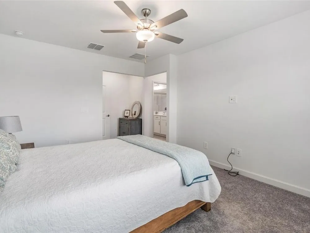 - Ceiling Fan(s), Crown Molding, Kitchen/Family Room Combo, Open Floorplan, Main Level Primary, Solid-Wood Cabinets, Split Bedrooms, Stone Counters, Walk-In Closet(s), Window Treatments