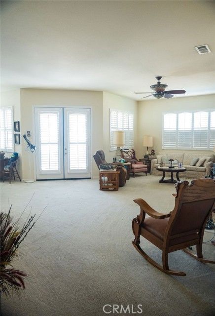 Beautiful upgraded home in the 55+ community of Sun City! Located at the end of a cul-de-sac, this home features 2 bedrooms, each with their own private bathrooms in a split floorplan. Each have walk-in closets, the master closet is huge with floor to ceiling custom built shelving systems. The second bedroom closet also has custom shelving systems with tons of storage. Between them is a large den with double door entry and a guest bath. Well designed kitchen that opens to the dining area and great room. Two-and-a-half car garage also features built in cabinetry that goes from floor to ceiling. The backyard is bigger than most in Sun City, and has a covered patio that is perfect for a relaxing evening meal and big enough for entertaining a large party. Don't sleep on this one!
