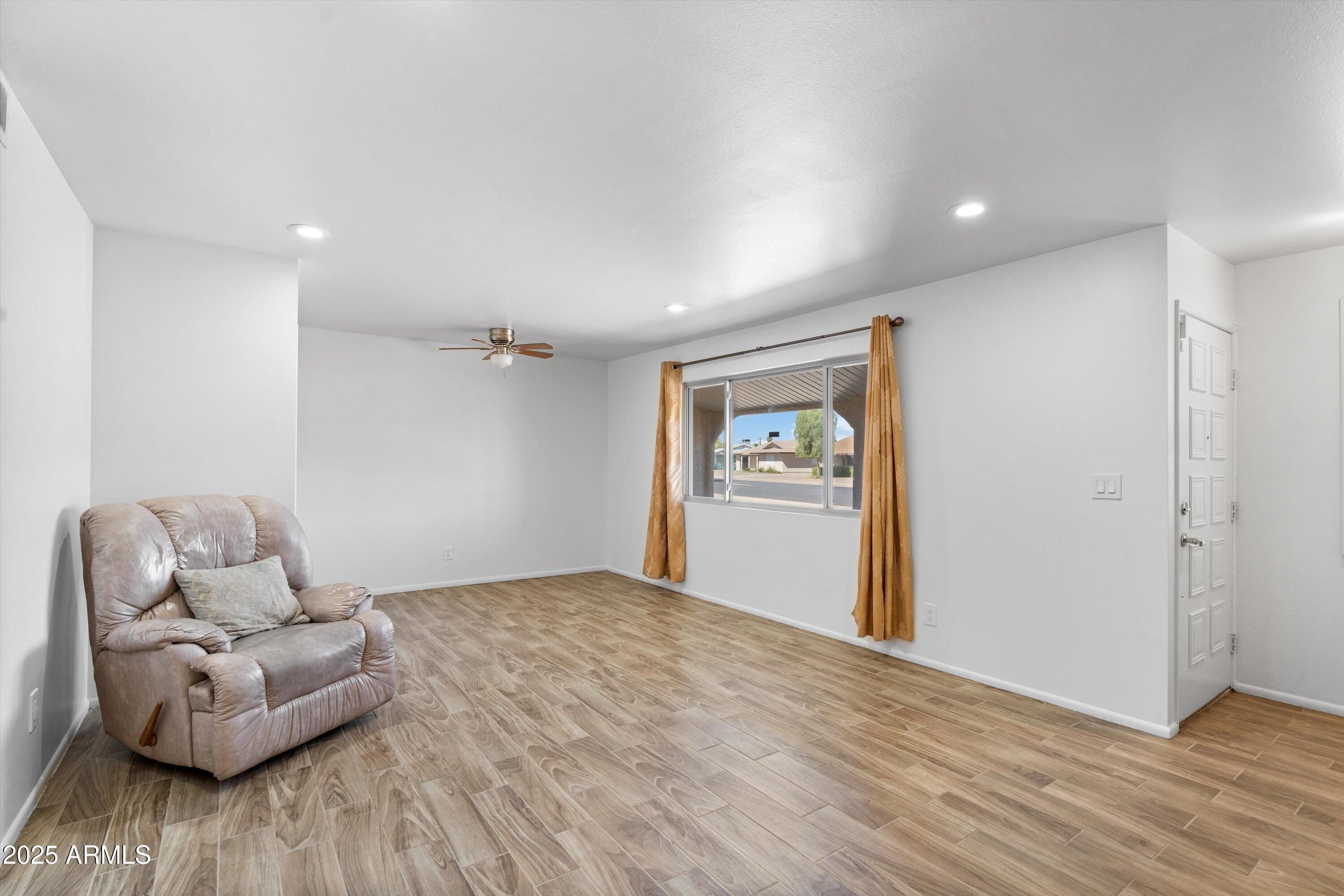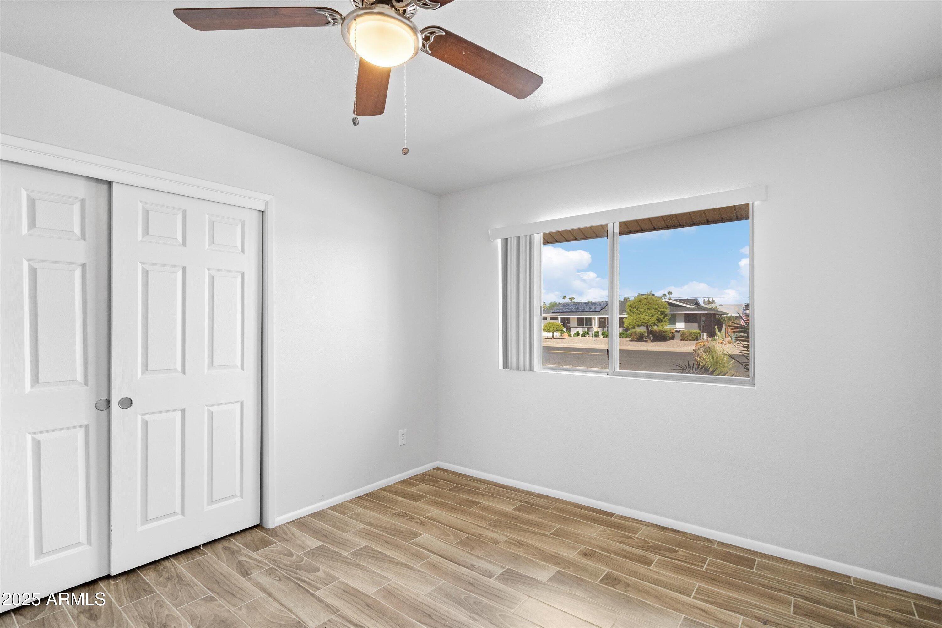 What a gem in Sun City! This home sits on a prime north/south golf course lot with incredible views of the 15th green, and the driveway gives you direct access to the course. It's a golfer's dream! Inside, you'll find a fresh remodel with timeless, modern touches. The kitchen and bathrooms feature white shaker cabinets, granite counters, under-mount sinks, updated faucets, and designer lighting. Throughout the home, you'll love the plank wood-style tile floors, new doors, fresh paint, sleek hardware, and stainless steel appliances. Major updates give you peace of mind, including a recently replaced A/C, newer dual pane Low-E windows, and a newer dimensional roof. Relax or entertain on the massive covered patio overlooking the green, and take advantage of the spacious utility room with golf cart parking. This home brings together comfort, style, and the Sun City lifestyle you've been looking for. Opportunities like this don't come along often, make it yours today!