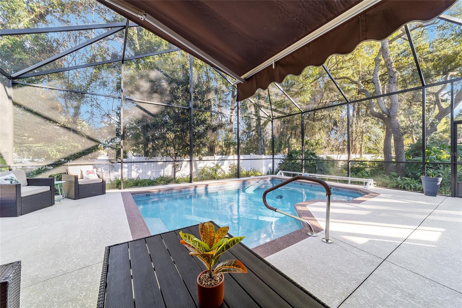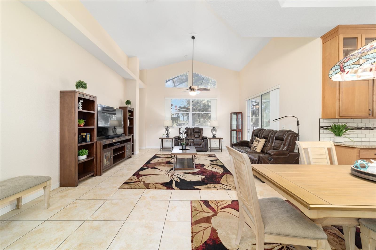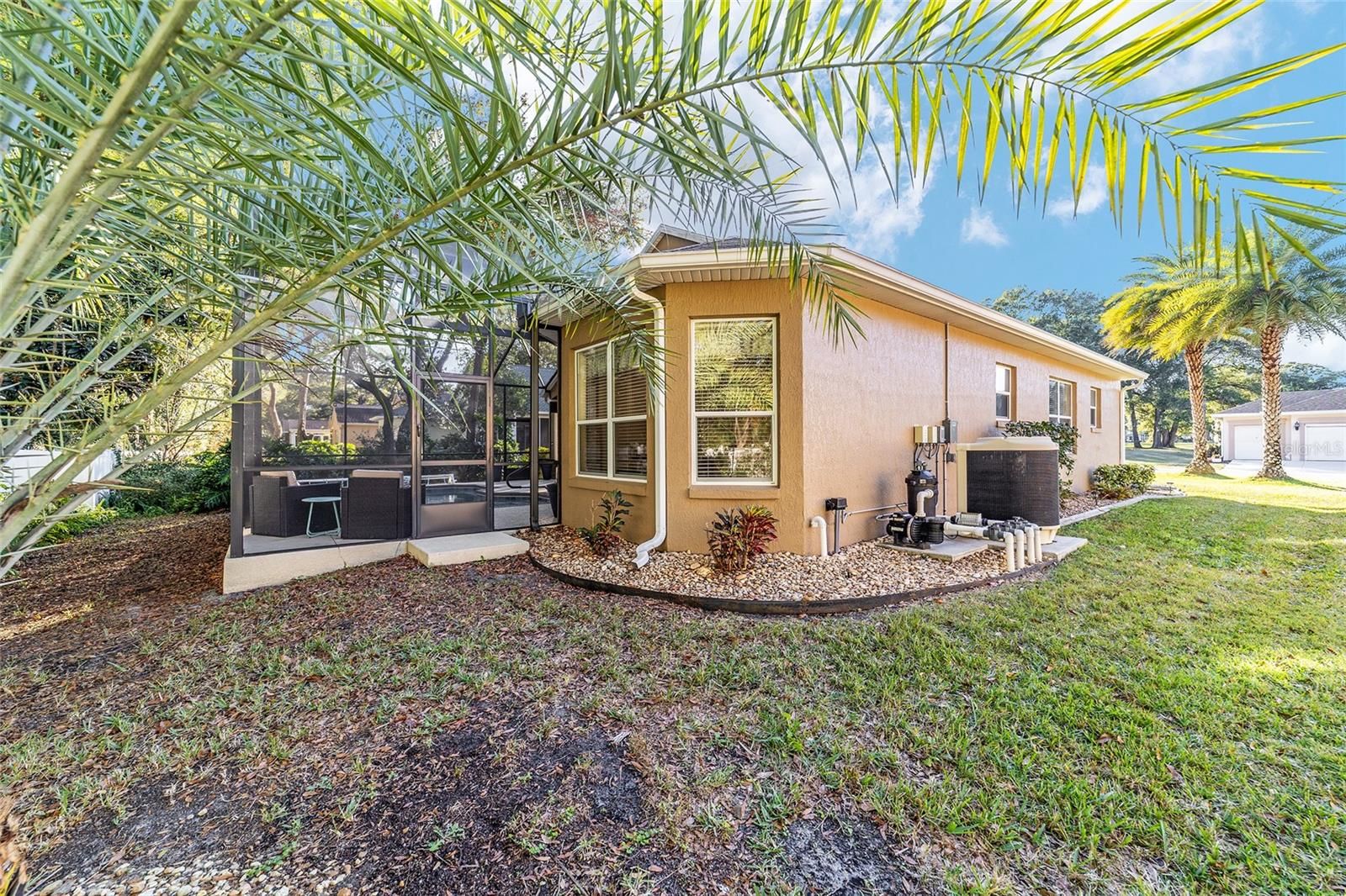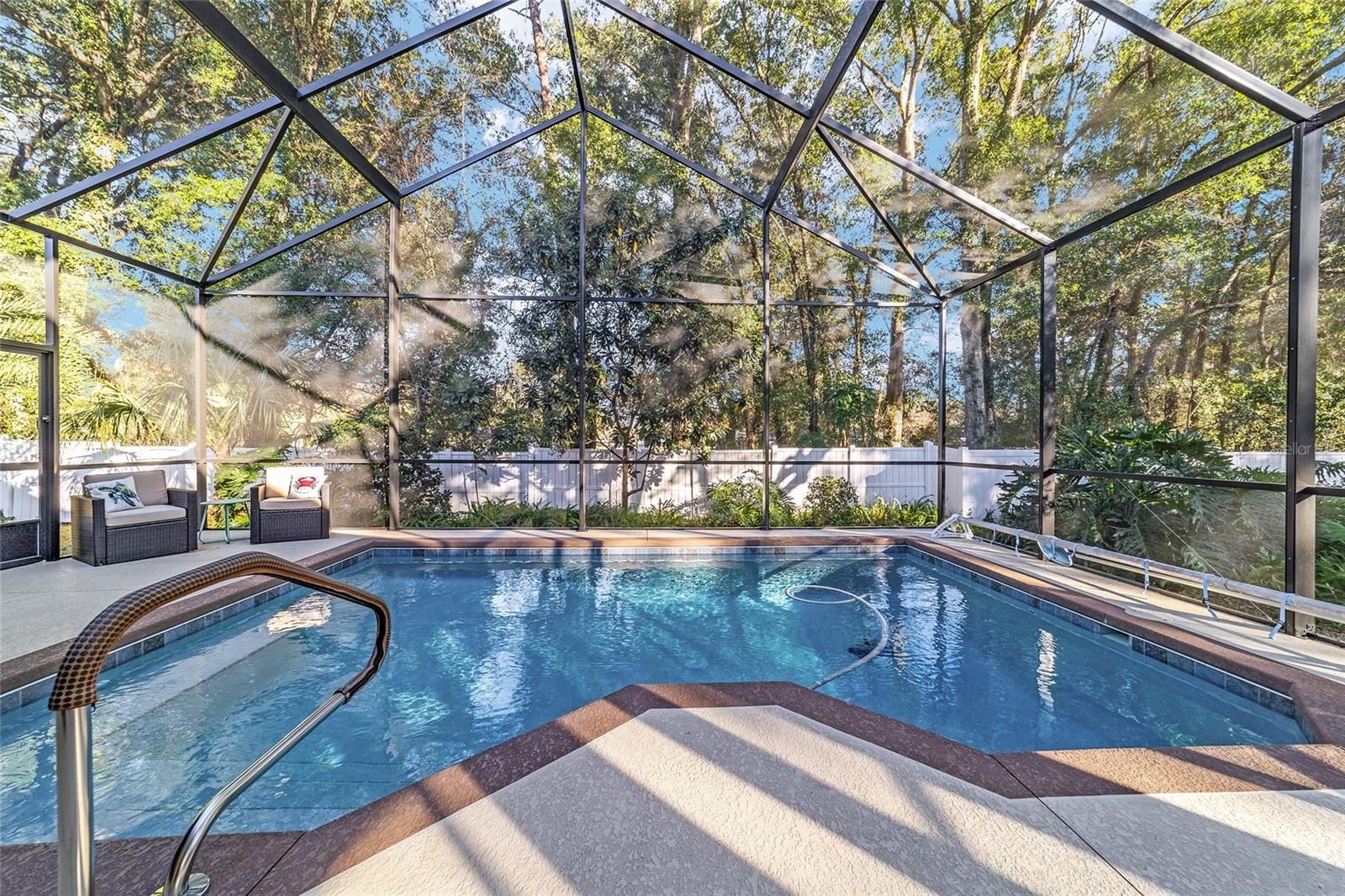 LOOKING FOR A POOL HOME IN OAK RUN? This ever popular Kapalua model home, with a brick paver driveway,located in the prestigious Eagles Point neighborhood, has a golf course view from the front of the home and a heated 24x33 Saline Pool, to enjoy in a private backyard. This open floor plan 3/2/2, 1724 Sqft home has a large Great Room with vaulted ceilings and ceramic tile in the kitchen and great room. This master chef Kitchen has been upgraded with subway tile, Tray ceiling above, DOUBLE 36" cabinets up to the ceiling,and Pantry for lots of extra storage. The primary bedroom, with laminate floors is at the back of the home and has a walk-in closet, a large bay window to bring in plenty of light, ensuite with upgraded walk-in shower, and double sinks. One of the guest bedrooms, located at the front of the home also has a bay window,and walk-in closet. Upgraded bathroom with walk-in shower between the 2 guest bedrooms. Off the living room is an 12x15 enclosed lanai, under heat and air, that leads to an inviting large 24x33 spacious pool area, enclosed in a screened bird cage and also features an expandable awning to get some needed shade. The garage has additional space thanks to an overhead situated AC unit, for a workshop area and plenty of extra storage. Roof 2022, AC 2017. Oak Run is a 55+ gated community, with 6 pools, 5 spas, 2 fitness centers, Dog Park, Restaurant, Golf Course and Driving Range. Close to Medical Facilities, Restaurants and shopping. This is a must see!