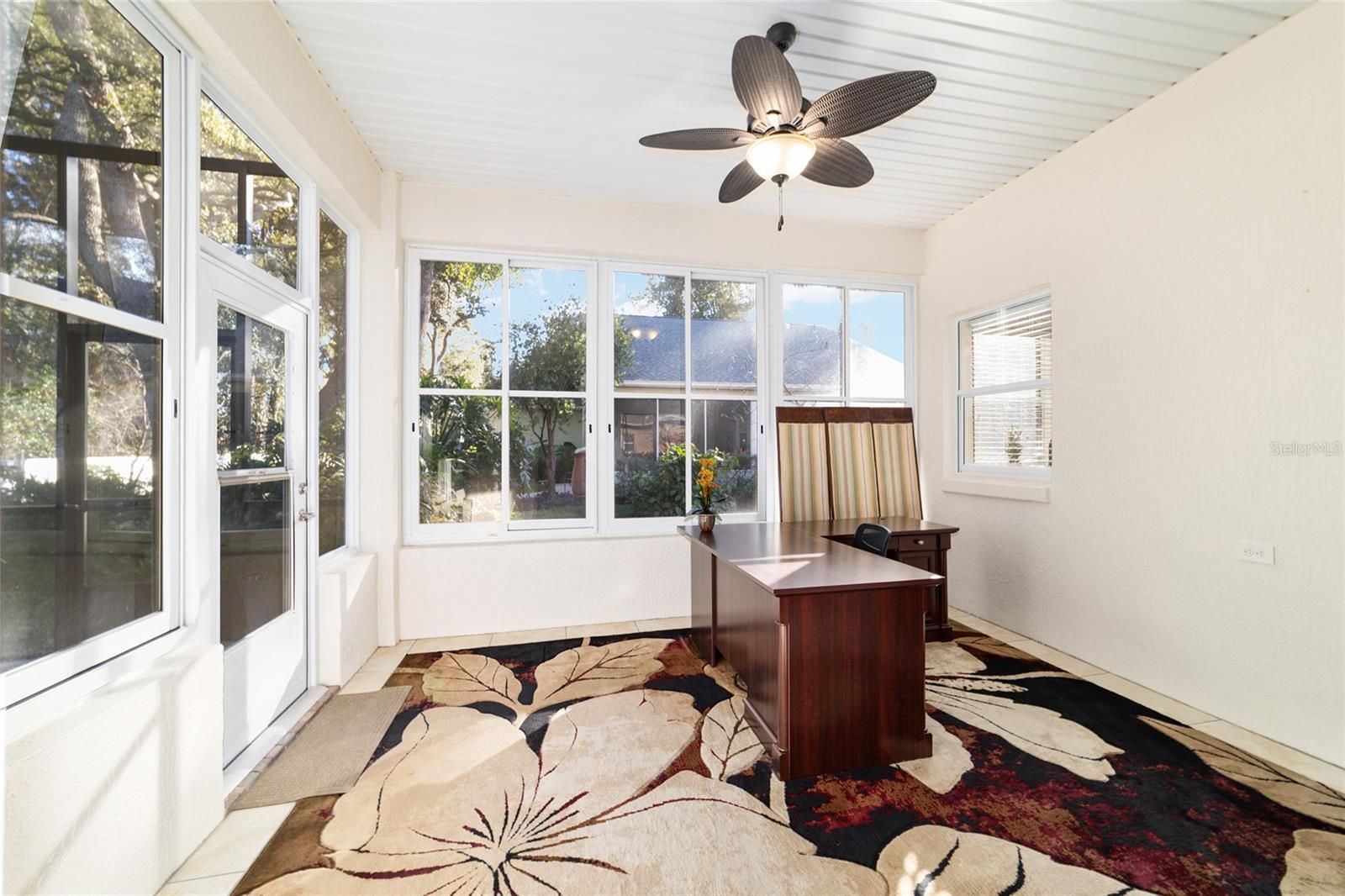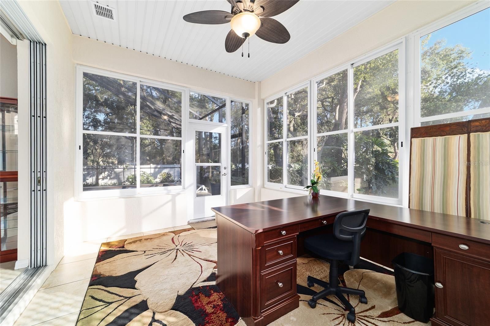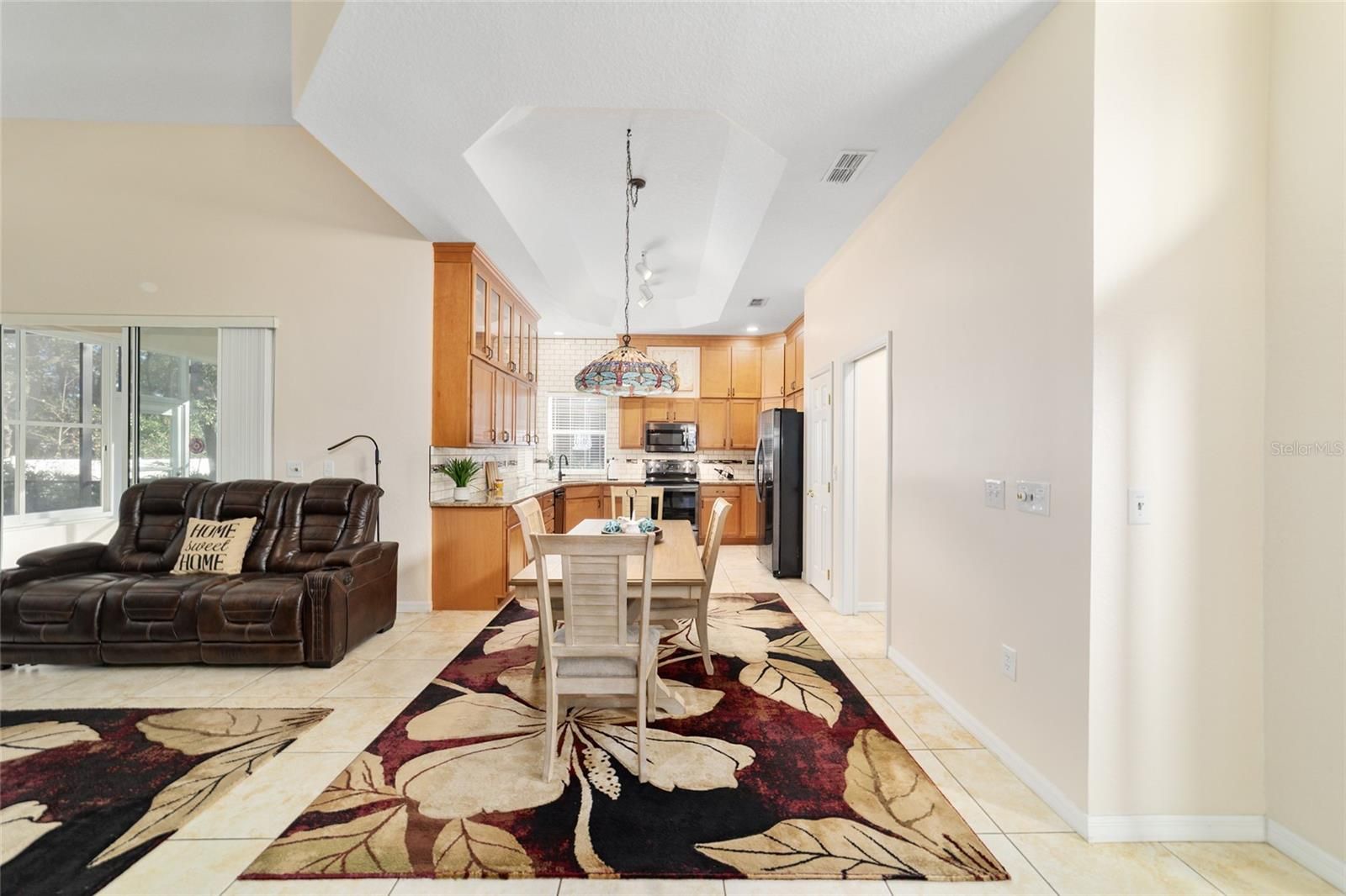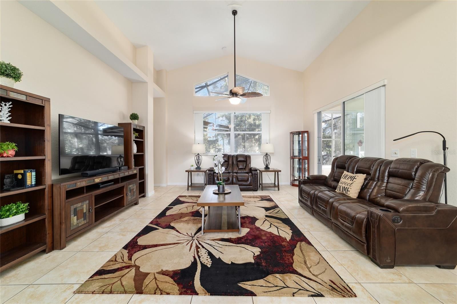 LOOKING FOR A POOL HOME IN OAK RUN? This ever popular Kapalua model home, with a brick paver driveway,located in the prestigious Eagles Point neighborhood, has a golf course view from the front of the home and a heated 24x33 Saline Pool, to enjoy in a private backyard. This open floor plan 3/2/2, 1724 Sqft home has a large Great Room with vaulted ceilings and ceramic tile in the kitchen and great room. This master chef Kitchen has been upgraded with subway tile, Tray ceiling above, DOUBLE 36" cabinets up to the ceiling,and Pantry for lots of extra storage. The primary bedroom, with laminate floors is at the back of the home and has a walk-in closet, a large bay window to bring in plenty of light, ensuite with upgraded walk-in shower, and double sinks. One of the guest bedrooms, located at the front of the home also has a bay window,and walk-in closet. Upgraded bathroom with walk-in shower between the 2 guest bedrooms. Off the living room is an 12x15 enclosed lanai, under heat and air, that leads to an inviting large 24x33 spacious pool area, enclosed in a screened bird cage and also features an expandable awning to get some needed shade. The garage has additional space thanks to an overhead situated AC unit, for a workshop area and plenty of extra storage. Roof 2022, AC 2017. Oak Run is a 55+ gated community, with 6 pools, 5 spas, 2 fitness centers, Dog Park, Restaurant, Golf Course and Driving Range. Close to Medical Facilities, Restaurants and shopping. This is a must see!