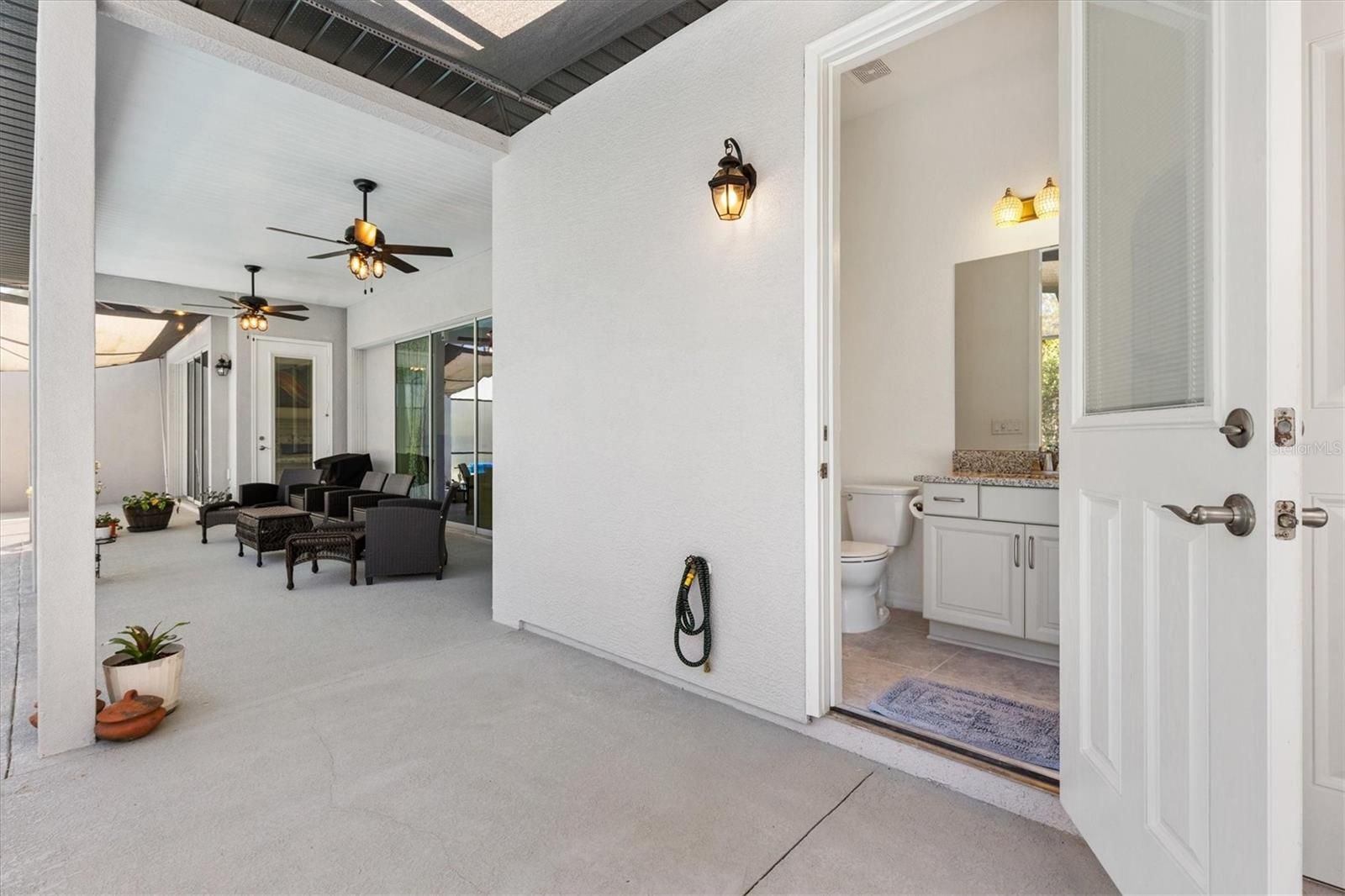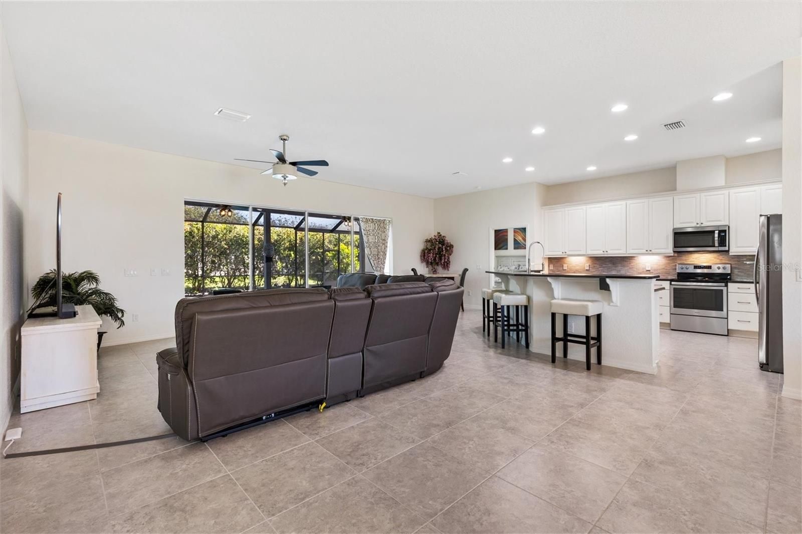 Welcome to your forever home in the Exclusive, Gated 55+ Golf Community of STONECREST, ideally located adjacent to THE VILLAGES, Florida, where an exceptional lifestyle and resort-style amenities await. This beautifully appointed, move-in ready residence has been thoughtfully designed for both comfort and convenience, built in 2019, offering WHEELCHAIR ACCESSIBILITY and an EXTENDED GARAGE perfect for accommodating larger, longer vehicles. Inside, the home showcases an expanded Kitchen with abundant cabinetry, gleaming stainless steel appliances, and a RANGE VENTED to the outdoors, creating a space that is as functional as it is inviting. Every detail has been carefully considered, from the WHOLE-HOUSE WATER FILTRATION SYSTEM to the centralized media cabinet with structured wiring, delivering hardwired HIGH-SPEED ETHERNET and data connections in every room and even the lanai for seamless connectivity. Designed for both relaxation and entertaining, this home features a stunning 38’ x 10’ HEATED SALTWATER LAP POOL with both SOLAR and ELECTRIC HEAT, complemented by an extended lanai with a privacy wall and an expanded garden area, offering your own private outdoor retreat. Inside, you’ll find smart 4K TVs throughout the home, ranging from 50” to an impressive 85”, enhancing your everyday living experience. With 3 spacious Bedrooms and 3 FULL BATHS, in a desirable split bedroom floor plan, along with TILE Flooring throughout and added security locks on all doors leading out to pool, this home blends style, comfort, and peace of mind. Being offered nicely furnished, it is truly turnkey and ready for you to begin enjoying the Florida lifestyle immediately. Experience the freedom to be as active or as relaxed as you choose in this vibrant golf community, where everything from shopping and dining to medical facilities is conveniently accessible by your 2019 Yamaha Drive Quietech EFI golf cart! This is more than a home, it’s your gateway to the lifestyle you’ve been dreaming of.