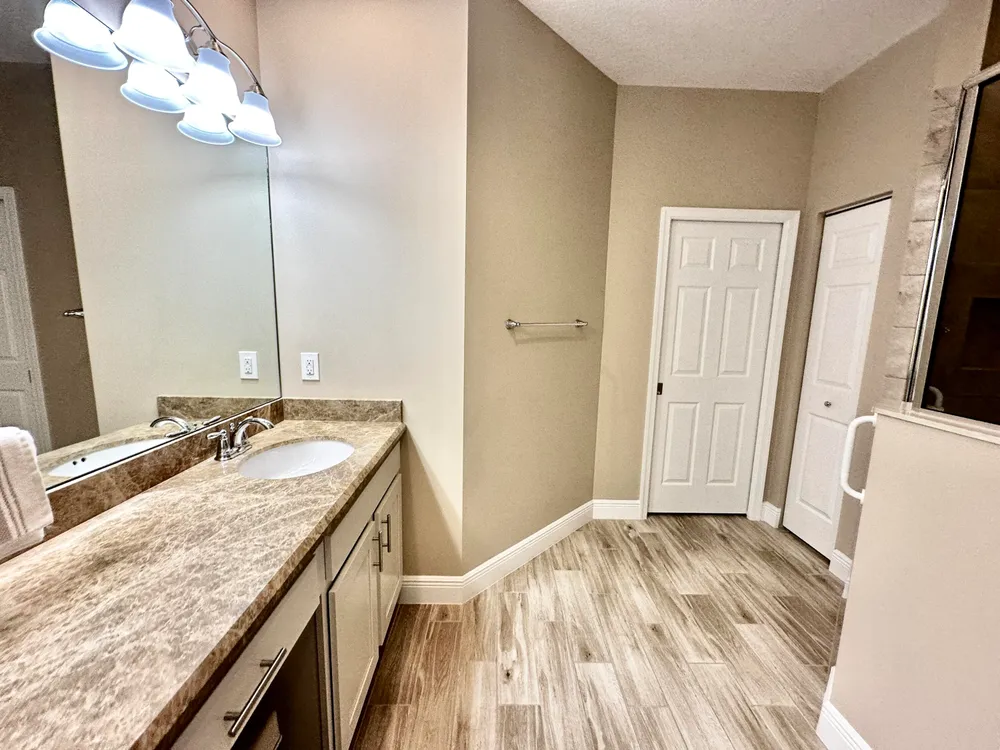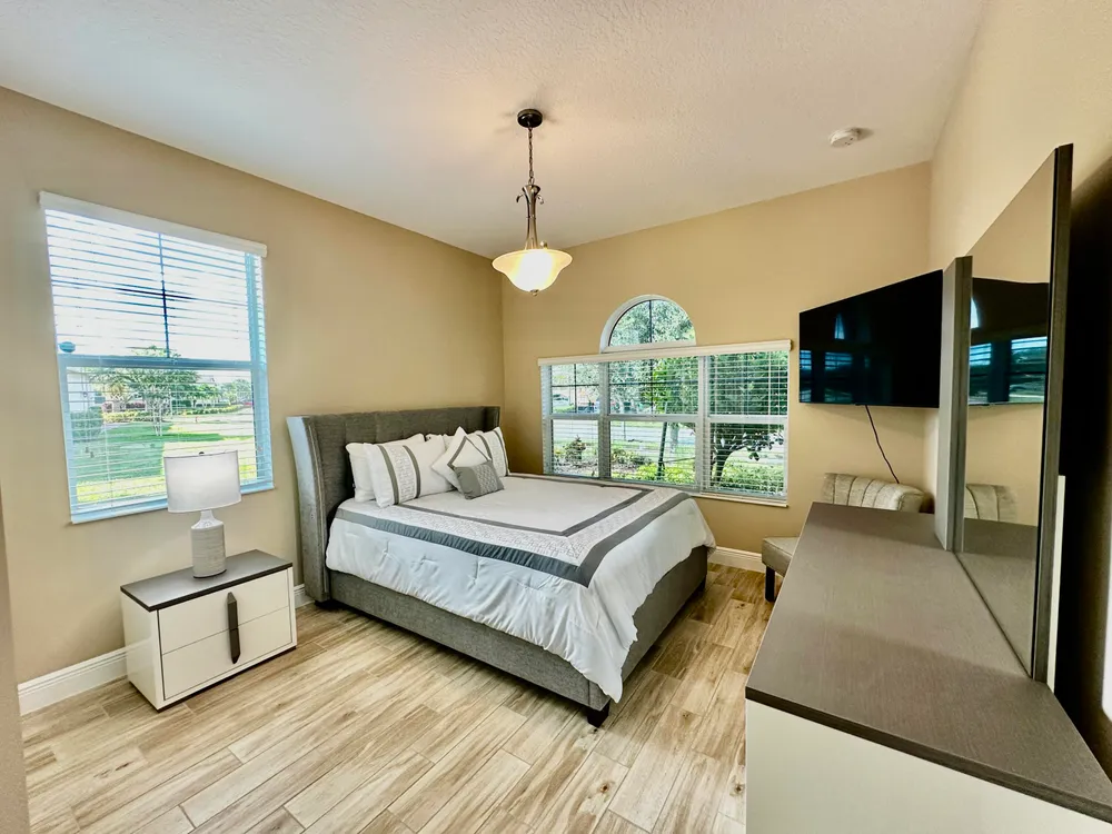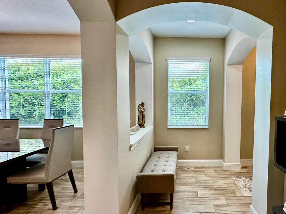 - Entry Level Living Area, Entrance Foyer, Pantry, Split Bedrooms, High Ceilings, Walk-In Closet(s), Home Office, Family Room, Living/Dining Room, Snack Bar, Blinds, Impact Glass, Plantation Shutters, Window Vertical(s), Dual Sinks, Primary Downstairs, Separate Shower, Washer/Dryer Hookup