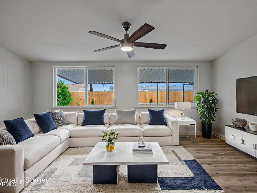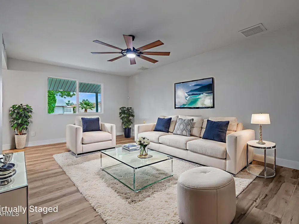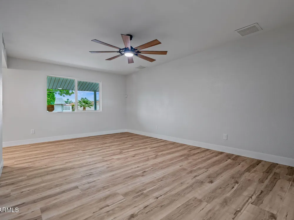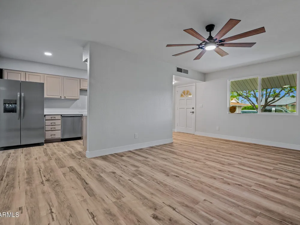 Welcome to a beautifully updated home just minutes from the recreation center! This 2-bed, 2-bath beauty features new windows, new floors, and fresh modern finishes throughout. Enjoy a bright, open living space, upgraded kitchen, and a spacious backyard perfect for relaxing or entertaining. Situated in a quiet 55+ community close to golf, shopping, and dining — this one is truly move-in ready!