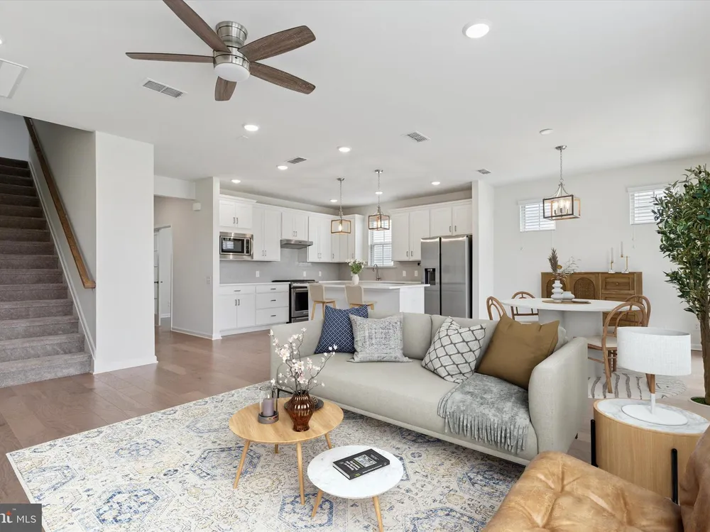 - Breakfast Area, Ceiling Fan(s), Combination Dining/Living, Family Room Off Kitchen, Floor Plan - Open, Kitchen - Island, Laundry Chute, Pantry, Recessed Lighting, Sprinkler System, Upgraded Countertops, Walk-in Closet(s), Window Treatments, Wood Floors