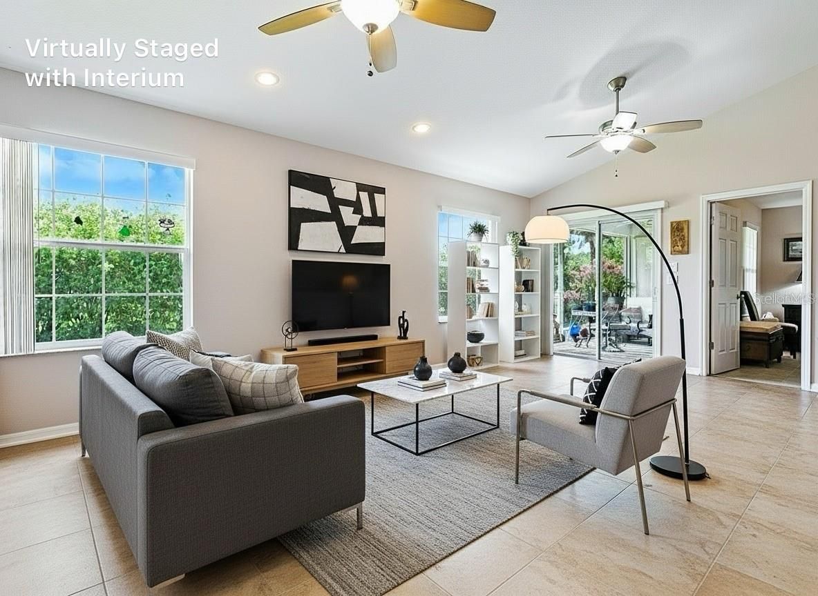 Some Photos are visually staged. Motivated Seller/ Go and Show, Seller says make offers. /$5000 concession toward closing cost/Welcome to Stonecrest, an exclusive golf course community — Florida Living at Its Finest Discover the vibrant, resort-style lifestyle that makes Stonecrest a top choice for retirement. This gated 55+ community offers exceptional amenities designed to enjoy your golden years — including an 18-hole championship golf course, lighted pickleball courts, softball fields, 4 pools, and state-of-the-art fitness centers. Whether you're unwinding in the indoor saltwater pool and spa or joining one of 90+ clubs, you'll find every day filled with opportunities to live your best life. At the heart of it all, the welcoming clubhouse features casual dining and a lively social scene. As you arrive, you’ll immediately notice the beautifully landscaped yard and lush greenery — a preview of the thoughtful touches that continue inside. This Charming and adorable home is just a bridge away for the Villages and is equipped with SOLAR PANELS, dramatically lowering your electric bills and adding eco-friendly appeal. The screened garage door offers pleasant airflow, making the space feel open and fresh. Step through the welcoming entryway and into a space designed for both elegance and functionality. Gorgeous flooring flows throughout, with tile in the wet areas and plush carpet in one of the bedrooms. The open-concept kitchen is a standout — featuring rich cabinetry, stone countertops, and a sun-filled window that adds warmth to the room. The living room boasts soaring ceilings, stylish laminate flooring, and expansive windows that frame peaceful backyard views. Graceful archways connect the main areas, creating a sense of flow and openness. Relaxation Meets Luxury in the Bedroom Suite. The primary bedroom is a bright, tranquil retreat, enhanced by natural light and a ceiling fan for year-round comfort. The en-suite bath feels like a spa getaway — complete with stone countertops, a garden tub, and a separate tiled shower with glass doors. Two additional bedrooms offer cozy sanctuaries with ample natural light, ceiling fans, and spacious closets. The second bathroom features floor-to-ceiling glass in the walk-in shower and a sunlit window for a refreshing feel. Tucked behind a pocket door, the laundry room offers quiet convenience with easy access to the garage. Outdoor Serenity Enjoy your mornings on the screened-in lanai, sipping coffee while soaking in the peaceful surroundings and leisurely pace of life that Stonecrest is known for. And don’t forget the solar panels, a fantastic bonus that keeps utility costs impressively low. A Home That Brings Comfort, Style, and Efficiency.