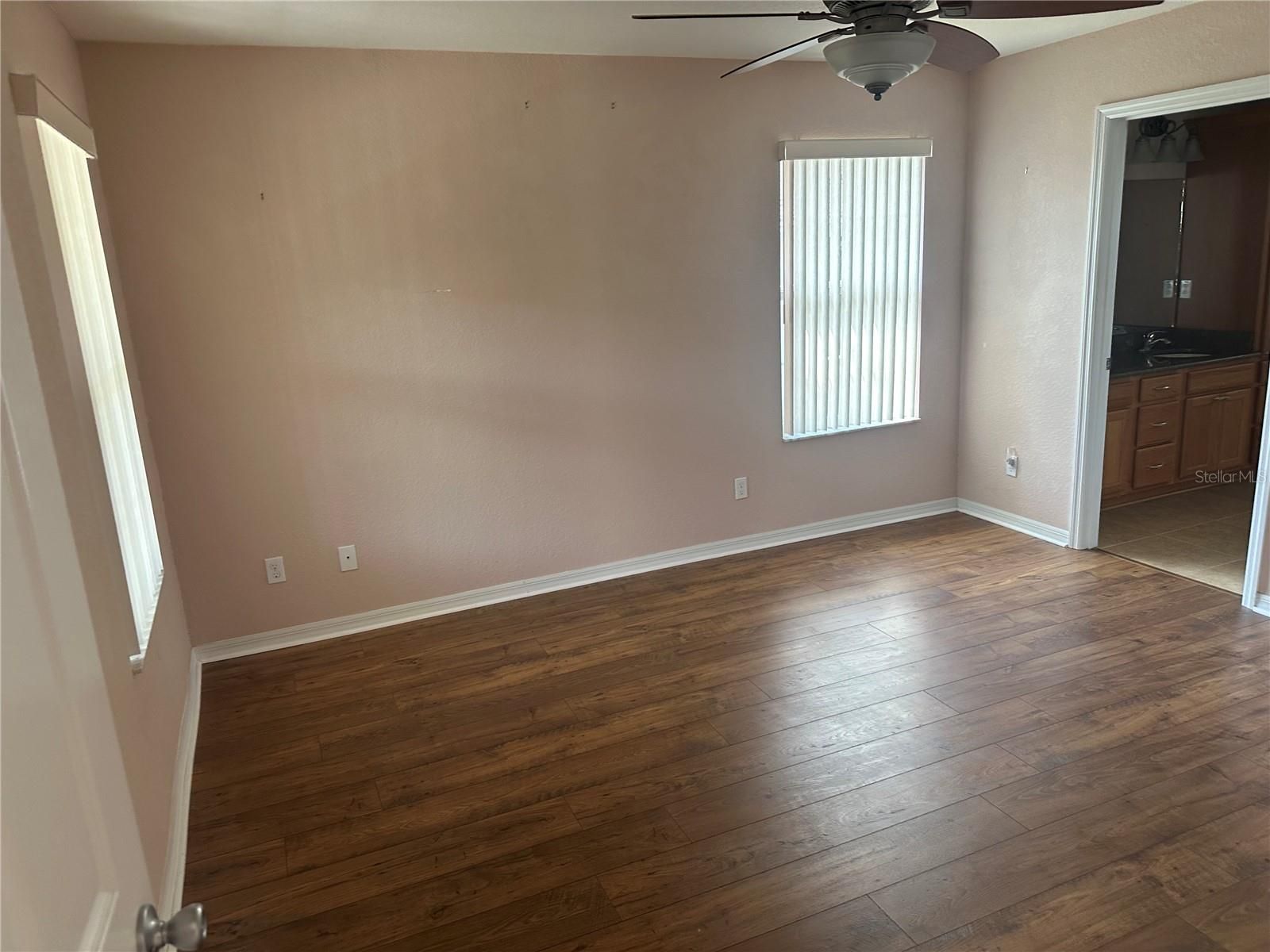 - Built-in Features, Ceiling Fan(s), Eat-in Kitchen, High Ceilings, Living/Dining Room, Main Level Primary, Solid Surface Counters, Stone Counters, Thermostat, Walk-In Closet(s), Window Treatments