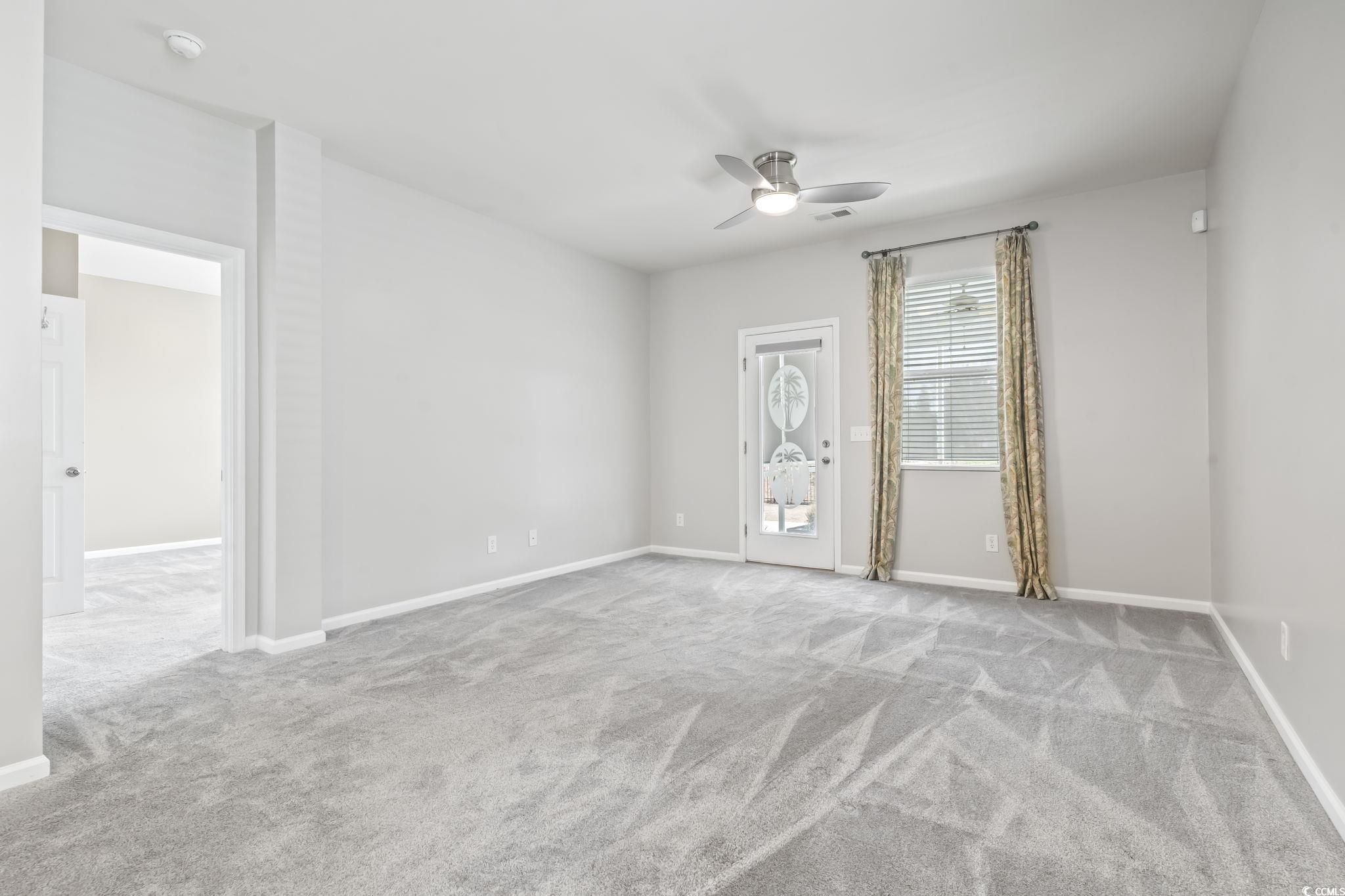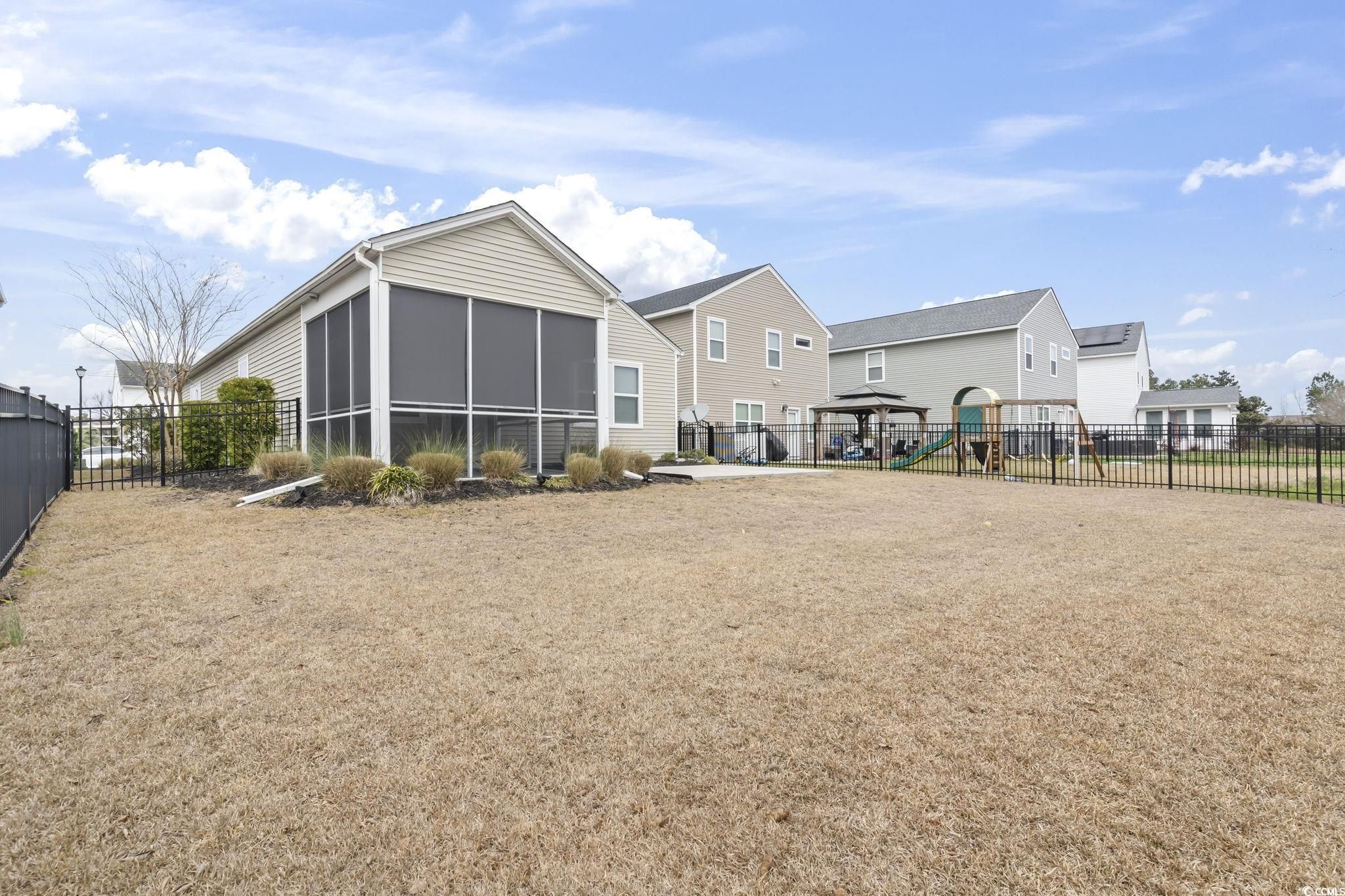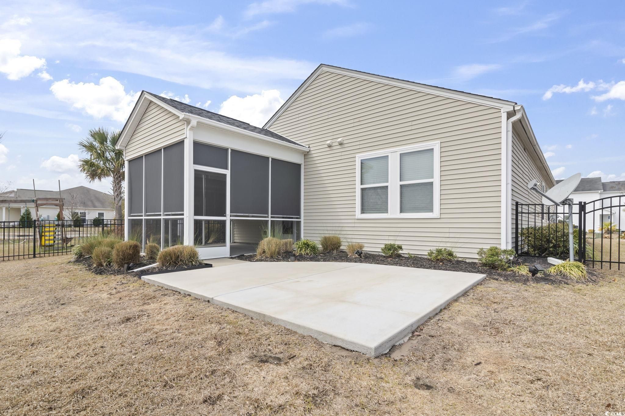 Welcome to 1097 Balmore Drive, a meticulously maintained 3-bedroom, 2-bathroom single-level home located in the desirable Carolina Forest neighborhood, Berkshire Forest. This former model home offers ample living space with an open floor plan and abundant natural light. A beautiful dining area, just inside the entry foyer, features wood flooring and chandelier-style lighting. The well-appointed kitchen features stainless steel appliances, granite countertops, a wooden island with leaf feature, a pantry, and a breakfast bar, perfect for entertaining. The primary bedroom includes a generous walk-in closet and en-suite bathroom with a walk-in shower, double vanity, and linen closet. Additional bedrooms provide flexibility for family, guests, or a home office and come equipped with ceiling fans and brand-new carpeting. The living area with overhead fan/light has direct access to the screened-in porch with pull-down shades, an additional concrete patio, and a large fenced-in backyard - a peaceful retreat from the hustle and bustle of Myrtle Beach. As part of the Berkshire Forest community, residents have access to various amenities, including a clubhouse, fitness center, swimming pools, lazy river, tennis/pickleball/basketball courts, and walking trails, enhancing the overall living experience. Conveniently located just minutes from shopping, dining, entertainment, schools, and just a short drive to the beach, this home offers the perfect blend of tranquility and accessibility. Don't miss the opportunity to call 1097 Balmore Drive your new home!
