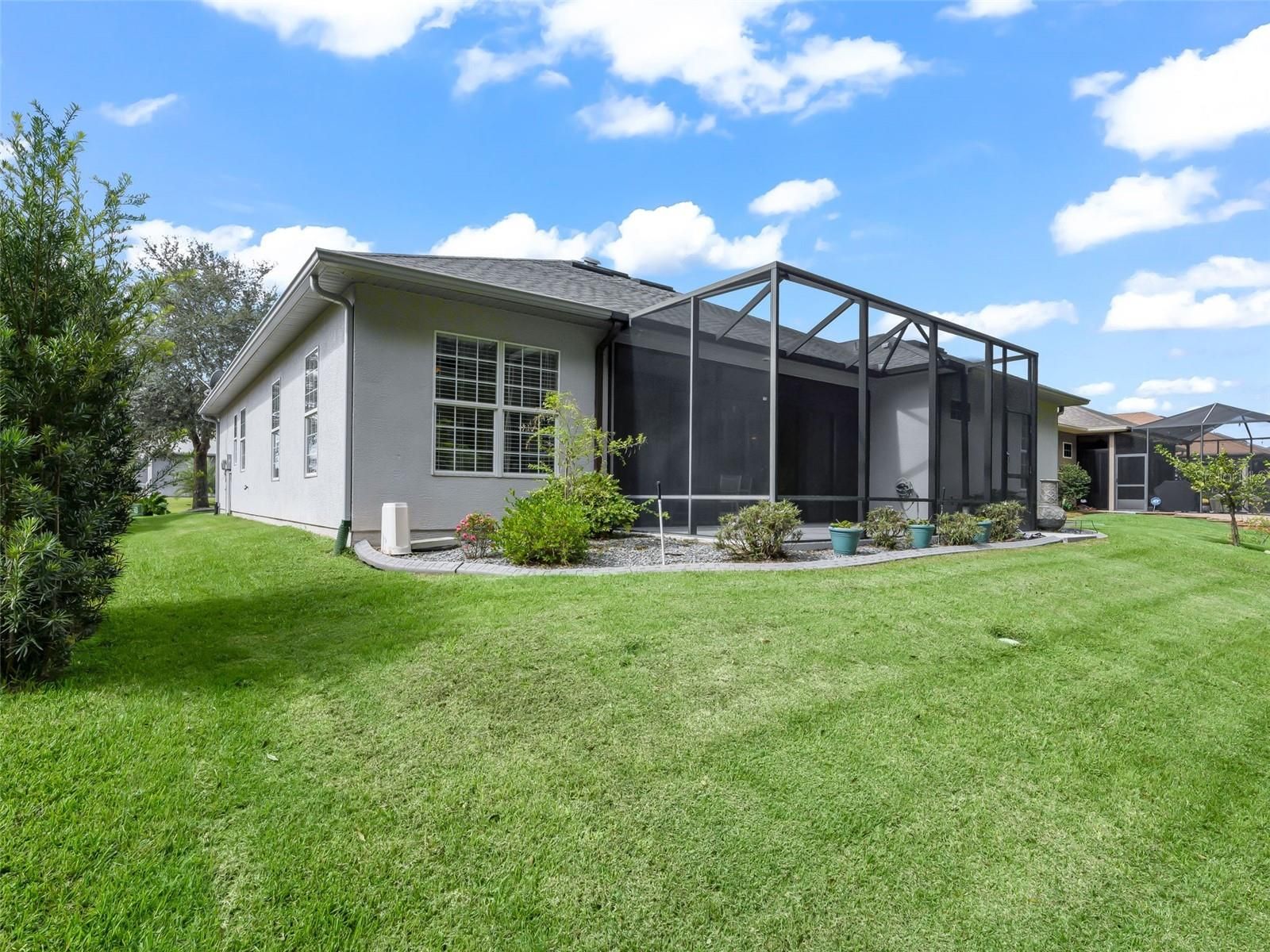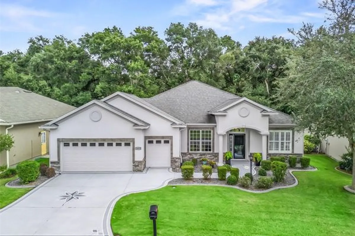 Stonecrest is a 55+ gated golf course community with all the amenities and 4 pools (one indoor), and just a Bridge Away By Golf Cart To The Villages! Immaculate 3/2 + Den Frontier model by Armstrong presents a 2 Car + Golf Cart Garage, an Open Concept and Split Floor Plan, HVAC 2022, No Carpet, and Rear Privacy with Beautiful Trees Boarding the Fence Line of the Backyard! This Exceptional home offers Tremendous Curb Appeal featuring Meticulously maintained Professional Landscaping, Painted Concrete Driveway & Walkway, and a Covered Front Entrance with an Elegant Sidelight Accented Door! The Large Eat in Kitchen Opens to the Huge Family room showcasing beautiful Engineered Hardwood flooring, a Wet Bar with Glass cabinets, and offers access to the Expanded Lanai, creating a fantastic Spacious Gathering area, Perfect for Entertaining Family and Friends! This well appointed home boasts Crown molding, Plantation shutters, Soaring 10ft High ceilings, and an Expanded Lanai with a Birdcage Enclosure! As you enter into the foyer you are greeted by high ceilings, and a Stunning Dining area with an Elegant Tray ceiling, Wainscotting, Designer Chandelier, Glowing Engineered Hardwood flooring, Plantation shutters, and Crown molding. The Open Kitchen Showcases Custom Cabinets with under cabinet Lighting, Granite countertops, Generous Breakfast Bar with Upgraded Pendant Light Fixtures, Center Island with Large Snack bar, Stainless Appliances (Stove, Dishwasher & Microwave 2021, Refrigerator 2023), and an Eat-In Area with Wainscotting, Chair rail, and Plantation shutters! The Split Floor Plan affords Privacy for both the owners and their guests, as the Primary Suite is located at the opposite side of the home from the guest bedrooms and guest bathroom. The Luxurious Primary Suite boasts a Tray ceiling, Luxury Vinyl Plank flooring, Crown molding, Private Entry to the Lanai, a Huge Custom Walk in Closet with Built-Ins and En Suite Bathroom, featuring Crown molding, a 2 Sink Vanity, Soaking Tub, Private Water Closet & a Tiled Roman Walk in Shower. The 2 additional bedrooms feature nice size built in closets, Luxury Vinyl Plank flooring, & provide plenty of privacy for your guests. Retreat to your own Private Outdoor Oasis, on the Expanded Lanai with Birdcage Enclosure, Exceptional Rear Privacy, Enhancing the Outdoor Living Experience! Enjoy Outdoor BBQ's, Sunset Dinners, & the Beautiful Florida weather in your own backyard paradise! 2024 Yamaha Gas Golf Cart Included! You will love having plenty of room for storage in the 2 Car + Golf Cart Garage with freshly painted floor, Anderson screen doors, Insulated Garage Ceiling & Door (2022), Utility sink, & Cabinets! Heating Ducts Professionally Cleaned 10/25, Hot Water Heater 2023, Whole House Electronic Air Cleaner 2023, Whole House ADT Alarm System with Cameras, Door & Window Alarms & Monitoring 2023, Ring Doorbell with Camera & Voice control 2023, New Washer & Dryer 2022, Irrigation system, Smart Ecobee thermostat, Attic Fan 2020. This home offers Rear Privacy, Fantastic Outdoor Space, Luxurious features, & a Great location! Stonecrest is a 55+ gated golf course community with all the amenities, pools, pickleball courts, softball, 18 hole championship golf course, Broad Stripes Golf & Social Club and over 80 different clubs to join! As a private gated golf course community, you can expect a high level of privacy and security.