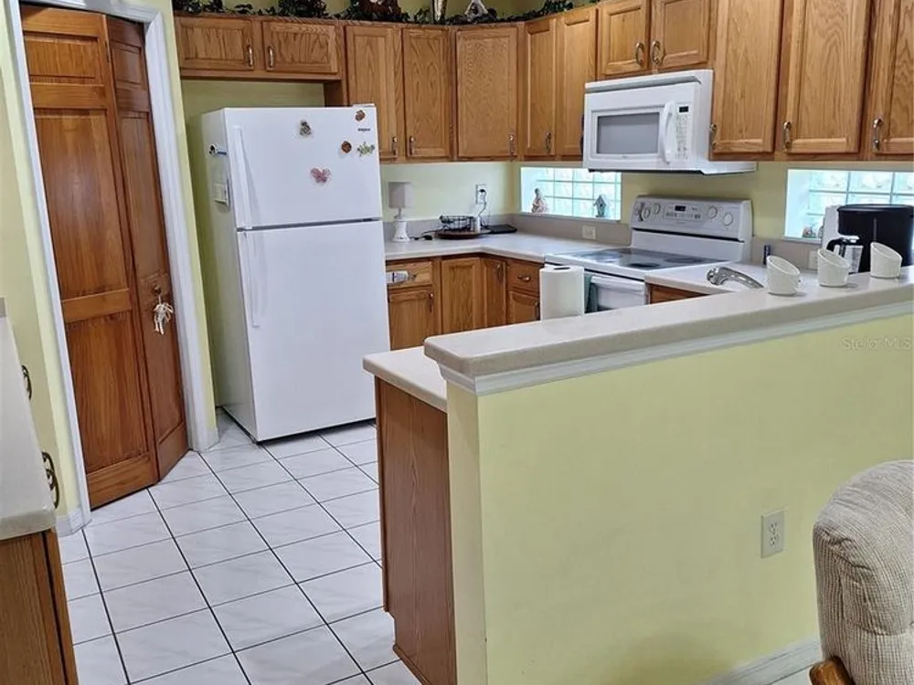 MAJOR PRICE IMPROVEMENT 8/8/2025... UNIQUE GULF BREEZE MODEL with all furnishings and is move-in ready. The front entrance of the home warmly welcomes you with a covered front porch and french doors! Upon entering you will find the spacious Living Room/Dining Room area featuring tray ceilings. This beautiful property features spacious 2 bedrooms and 2 bathrooms. The Master Bedroom has access to the enclosed lanai and offers a large walk-in closet, full bath with double sinks and shower with sliding glass doors. The second bedroom offers plenty of room for your guest(s) with a separate bathroom located nearby with a tub/shower combination. The bright and cheerful kitchen is a chef's delight offering ample countertops and wood cabinetry for all your cooking needs. An added bonus is the separate kitchen pantry!! The interior/exterior of the home was completely painted less than a year ago with neutral colors to accommodate any decor. Roof 2023, updated A/C, newer garage door opener and garage screen door. The washer/dryer is located in the 1.5 car garage along with a separate utility sink and wall cabinets for extra storage. An extra plus with this home is the lawn maintenance is included!! This home is located in a wonderful neighborhood near the Oak Run restaurant, fitness center, and golf course. Don't miss the opportunity to own this exceptional home perfect for comfortable living! Come view this home today and experience the beauty and comfort for yourself. Oak Run offers a restaurant, golf course, dog park and other great amenities ie. 6 pools, 5 hot tubs, fitness centers and much more..There are over 110 clubs to join!! **Oak Run is not an actual HOA community, therefore the monthly service fee does not go to an HOA. Please refer to Oak Run's website for details** You will be close to restaurants, shopping, and medical facilities in the area.