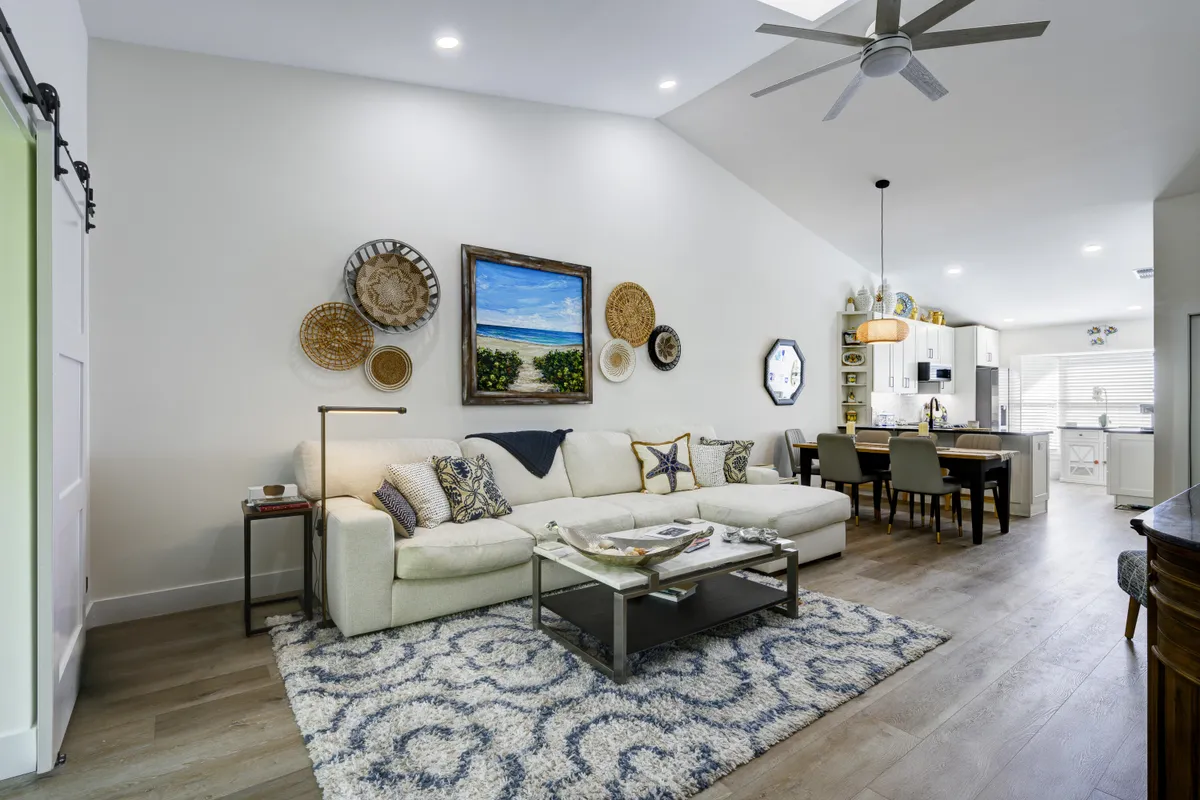 Fully renovated and beautifully maintained 2-bedroom, 2-bathroom villa located in the desirable Sea Pines community of Hobe Sound. This charming home offers 1,299 sq ft of living space (1,650 total sq ft) and backs up to a peaceful preserve, offering a sense of privacy and tranquility. Inside, you'll find a bright and spacious living room with vaulted ceilings and impact glass windows that flood the space with natural light. The open kitchen, complete with a cozy breakfast area, Shaker cabinets, newer Samsung appliances (2023) and induction Samsung stove. The kitchen connects seamlessly to the dining room, making it perfect for everyday living or entertaining guests. A versatile den provides the perfect space for a home office, or additional guest area complete with a custom Murphy bed. The master suite includes a walk-in closet and a private en-suite bath with a separate shower. The split floor plan offers privacy, with the second bedroom and full bath on the opposite side of the home. The villa also features a one-car garage, a screened porch, and an open patio for enjoying the Florida weather. The roof was replaced in 2018, and the home includes a mix of ceramic tile and vinyl flooring, accordion shutters, and partial impact glass for storm protection. A laundry area with washer and dryer is conveniently located in the garage. Sea Pines is an active 55+ community offering a wide range of amenities, including a pool, clubhouse, library, game room, shuffleboard, and more. Conveniently located near shopping, dining, and the beaches, this villa is the perfect place to enjoy relaxed Florida living.