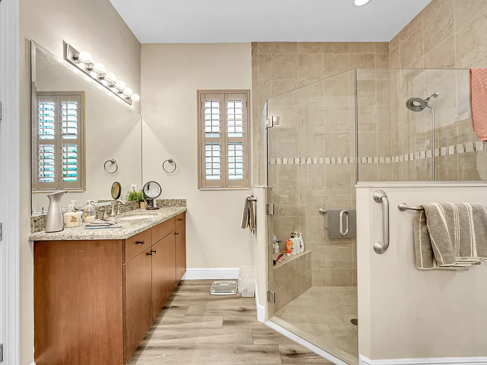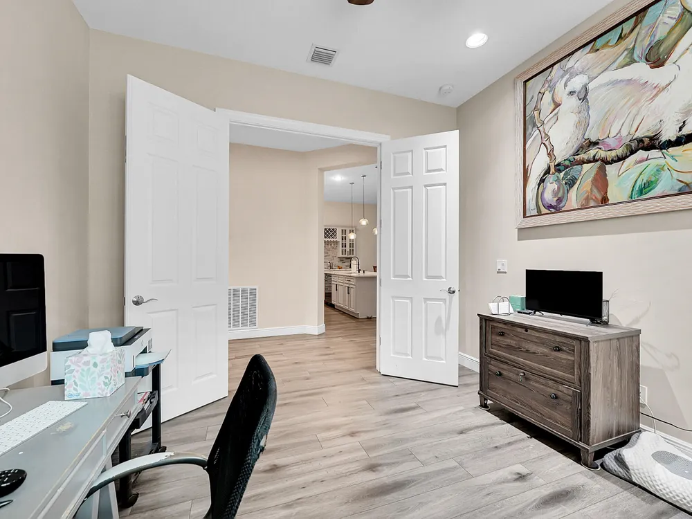 - Entry Level Living Area, Entrance Foyer, Kitchen Island, Pantry, Pull Down Attic Stairs, Walk-In Closet(s), Home Office, Family Room, Family/Dining Room, Kitchen/Dining Combo, Plantation Shutters, Primary Downstairs, Separate Shower, Washer/Dryer Hookup