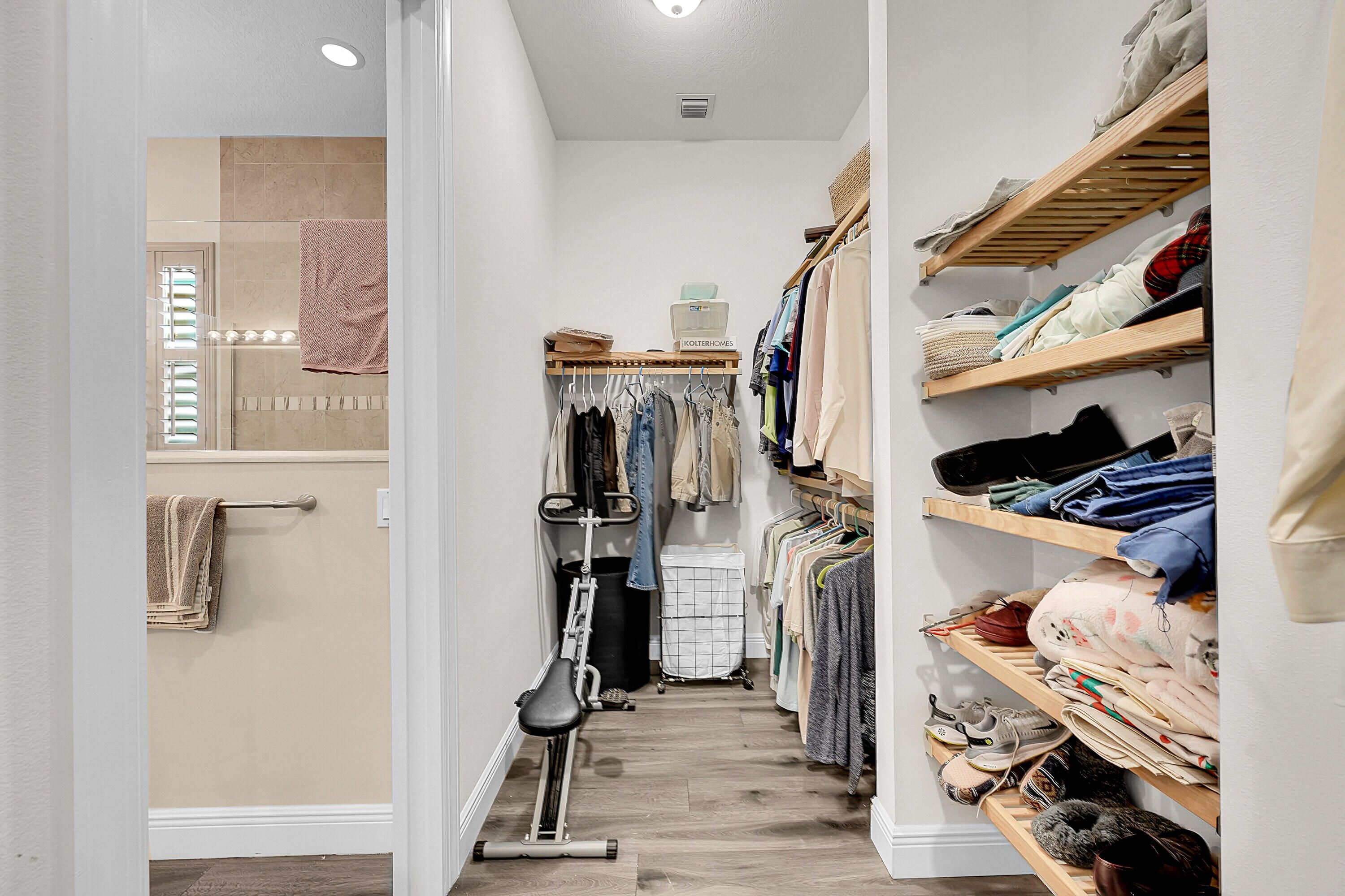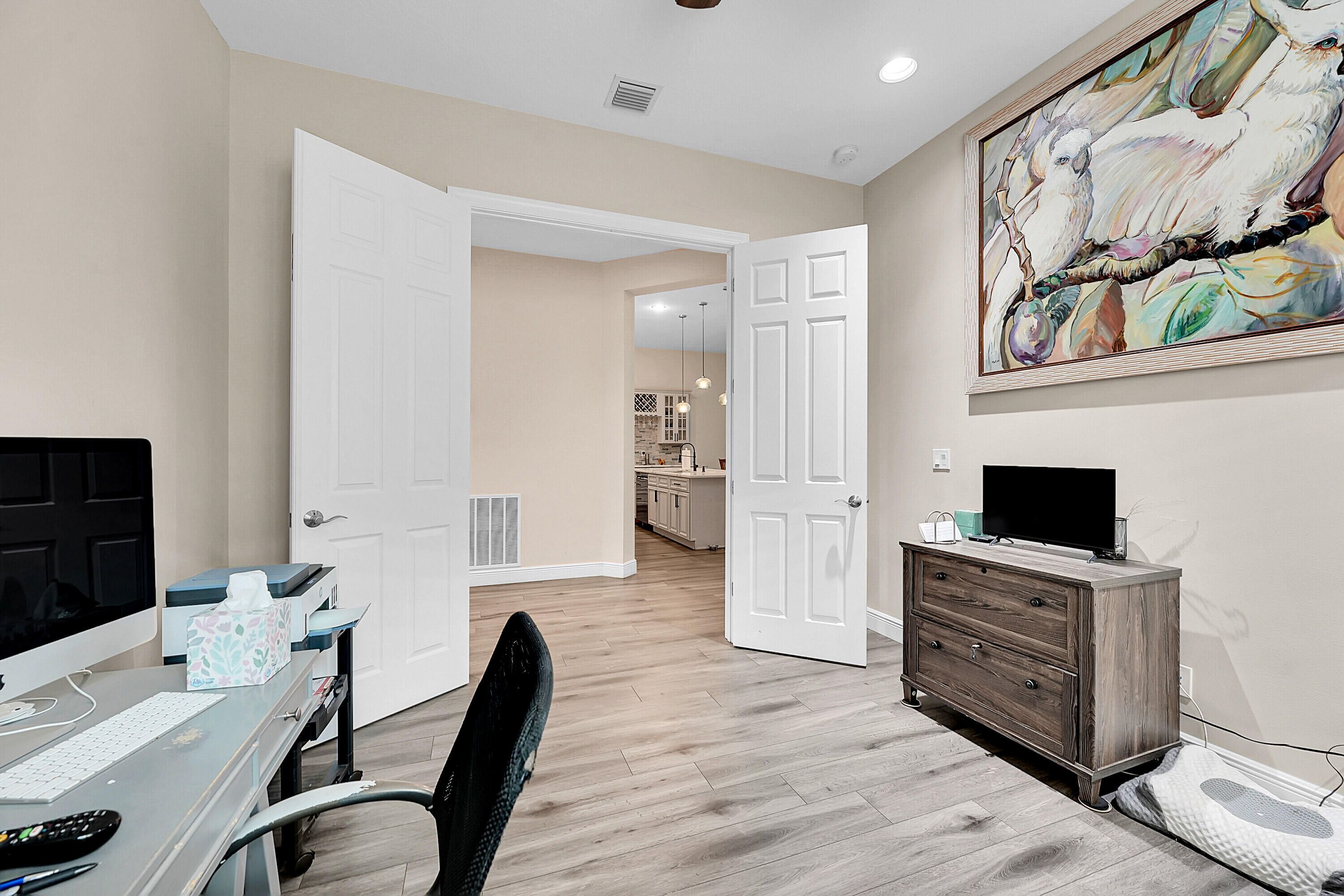 - Entrance Foyer, Pantry, Walk-In Closet(s), Pull Down Attic Stairs, Impact Glass, Family/Dining Room, Kitchen/Dining Combo, Main Level Primary, Separate Shower