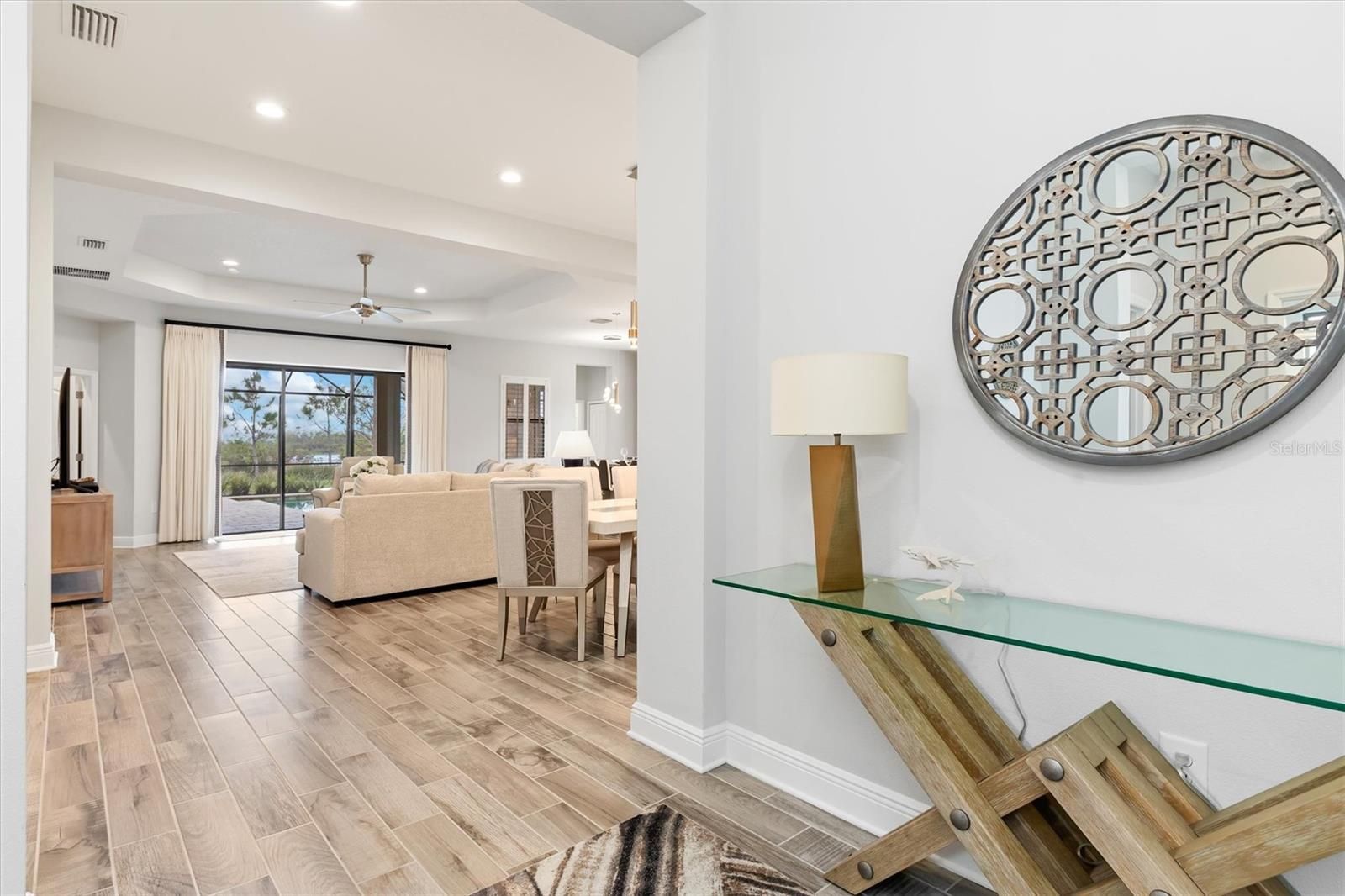 This exceptional 2021 custom-built home in Boca Royale Golf & Country Club truly shows like a model and stands out as one of the most desirable homes on the market today. Perfectly positioned on a rare dead-end street, it combines privacy, elegance, and superior craftsmanship with more than $140,000 in premium upgrades that enhance every detail. Designed around the popular Endless Summer floor plan, the home offers an airy, open layout filled with natural light and refined finishes. The gourmet kitchen features soft-close cabinetry, stainless steel appliances, designer fixtures, and a spacious pantry, all seamlessly connecting to the dining and great room for effortless entertaining. Expansive sliding glass doors lead to a heated saltwater pool and a brick-paver lanai with 225 square feet of covered outdoor living space and Storm Smart motorized screens, creating a perfect indoor-outdoor flow for year-round enjoyment. Accordion hurricane shutters, a new 2023 roof, and the X flood zone location provides peace of mind and long-term value. Inside, you will find upgraded tile flooring, plush carpeted bedrooms, plantation shutters, custom closets, and impeccable attention to detail throughout. Located within one of Boca Royale’s most desirable sections, residents enjoy maintenance-free landscaping, a resort-style pool, fitness center, and the social vibrancy of a gated golf and country club community—all just minutes from pristine Gulf beaches, dining, and shopping. Elegant, move-in ready, and built for the Florida lifestyle, this home shows better than new and offers a rare opportunity to own a piece of modern luxury in the heart of Southwest Florida. Furnishings available.
