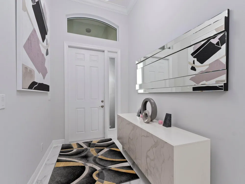 - Built-in Shelving, Entrance Foyer, High Ceilings, Walk-In Closet(s), Home Office, Great Room, Impact Glass, Dual Sinks, Separate Shower, Washer/Dryer Hookup