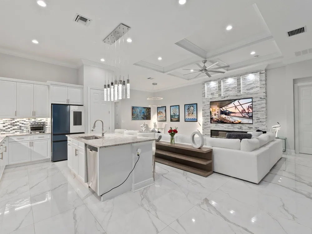 Welcome to your dream home! Nestled in the nicest Port St. Lucie community, this newly listed, fully upgraded house offers a luxurious lifestyle designed to impress. With 3 spacious bedrooms plus den and 3 well-appointed bathrooms, comfort meets style in every corner. Step inside to discover a gourmet kitchen where any professional chef would feel at home. The open-concept living area, anchored by a striking fireplace, is perfect for cozy evenings or hosting lavish gatherings. The primary bedroom serves as a private retreat, ideal for unwinding after a busy day. Every detail, from the head-turning fixtures to the flooring