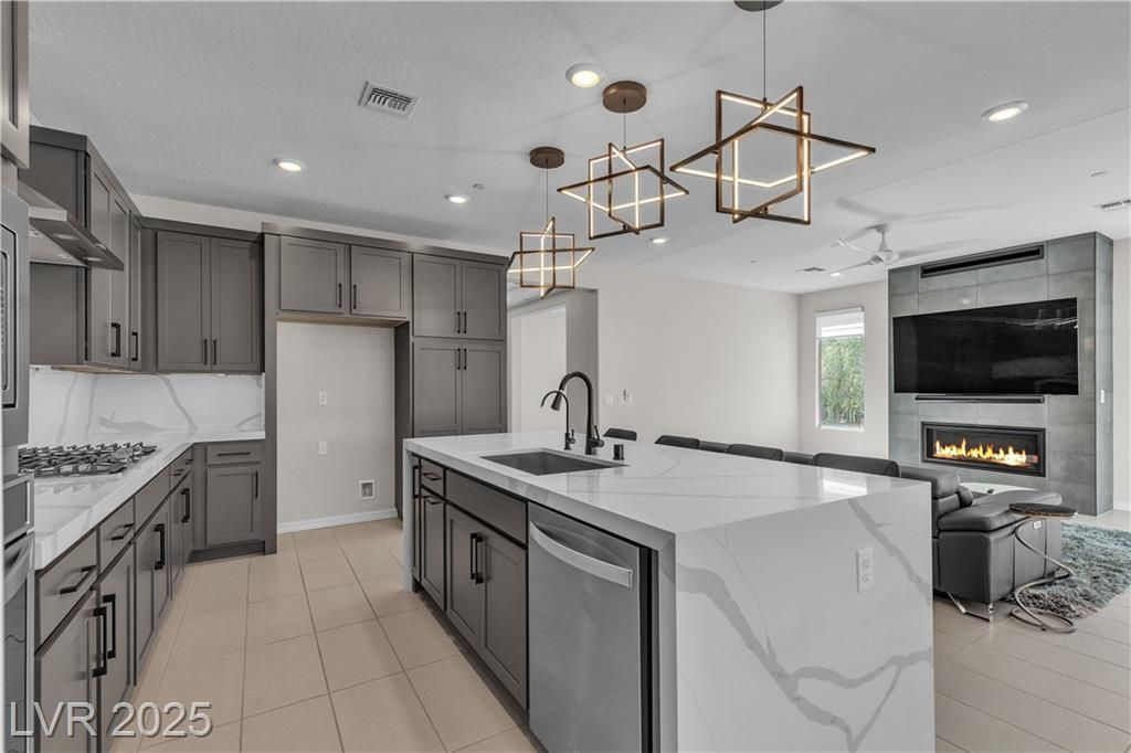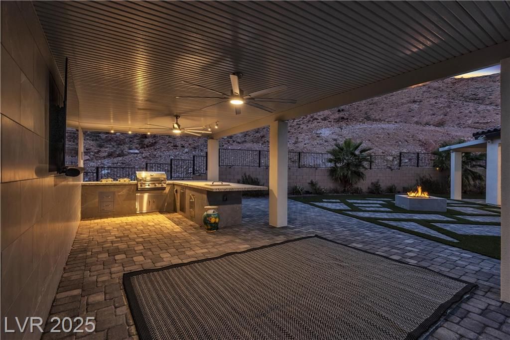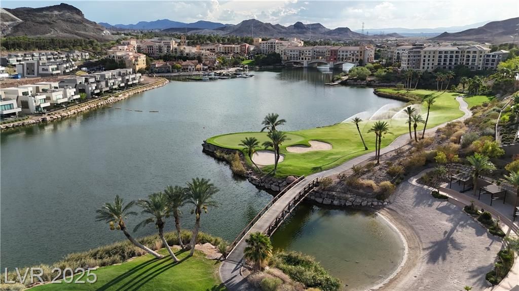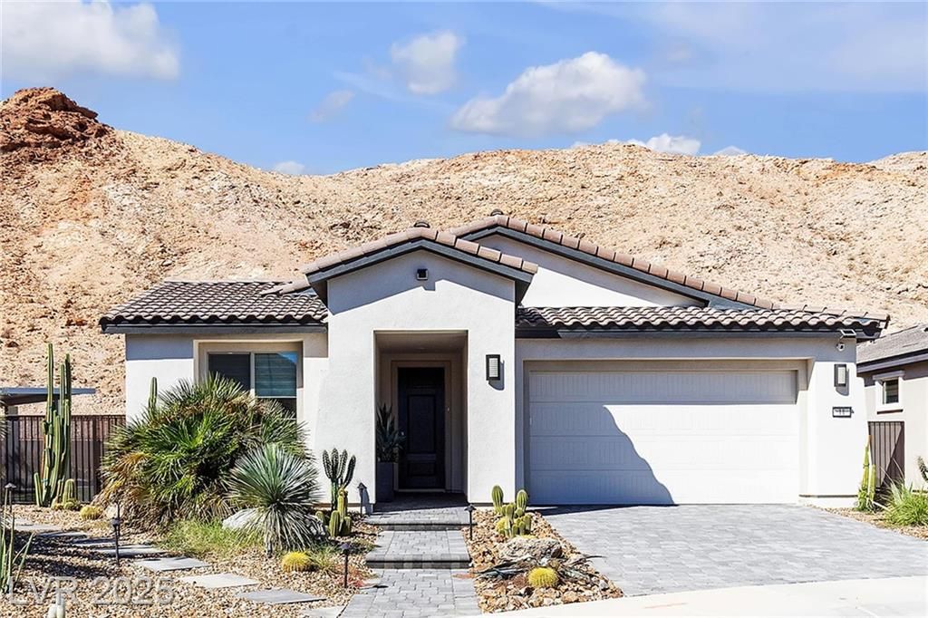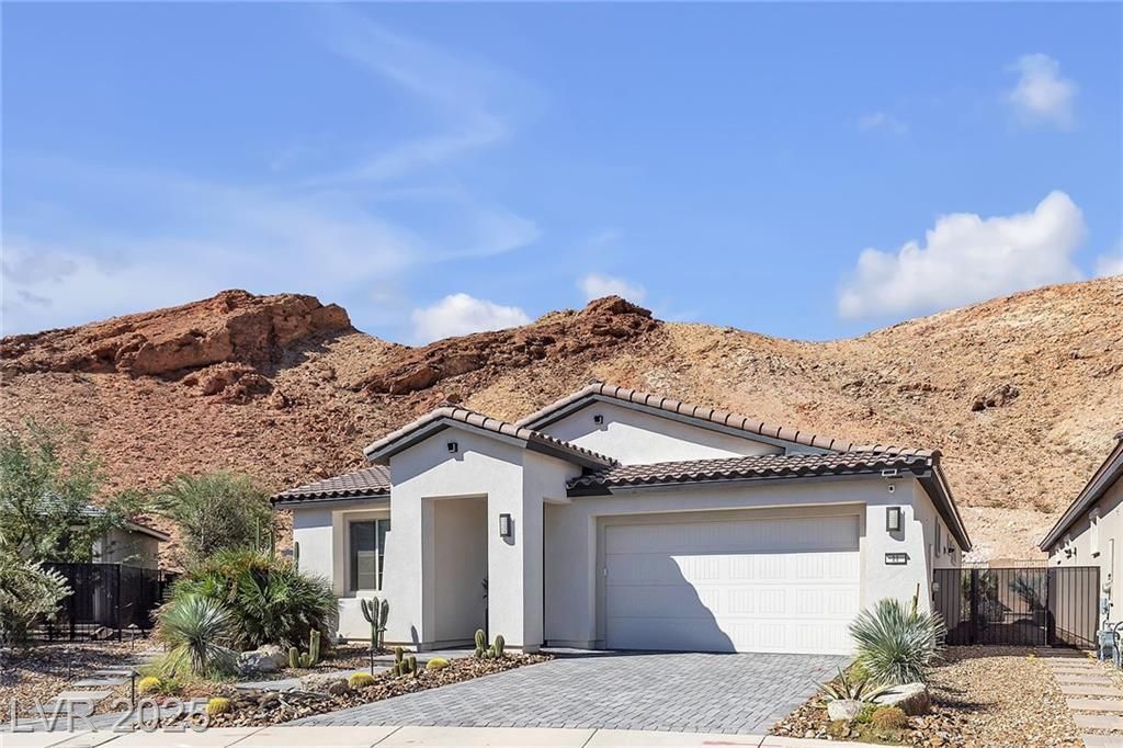 Seller rate buydown incentive! Welcome to 11 Acacia Creek, a stunning desert sanctuary on one of the largest lots in Del Webb’s Lake Las Vegas community. This rare, extended Brownstone model boasts an oversized backyard with $150K in upgrades, including multiple patios, a cozy fire pit, two flatscreen TVs, & a complete outdoor kitchen with granite counters—perfect for entertaining. Inside, the chefs kitchen features granite surfaces, a waterfall island with breakfast bar, & stainless appliances. The den/office offers a custom built-in desk, ideal for remote work or creative pursuits. The luxurious primary suite showcases granite finishes, a walk-in shower, and a spacious, organized closet. No rear neighbor adds privacy & tranquility and allows for serene mountain views. Designer touches & elegant finishes flow throughout the home. The finished garage has epoxy floors and an EV charging port, blending style with functionality. This property is a rare find—sophisticated & move in ready.