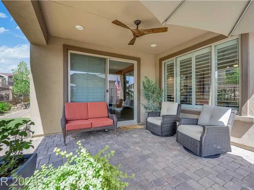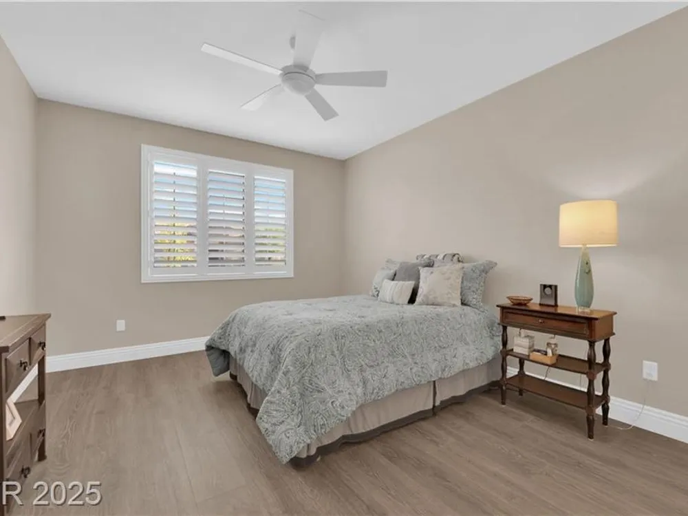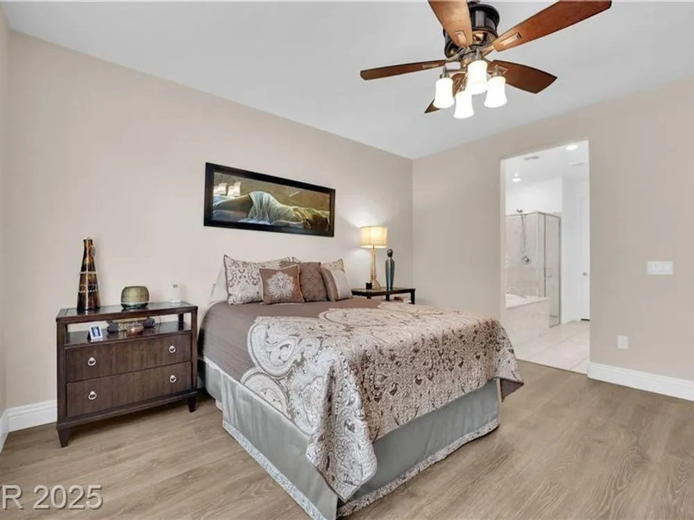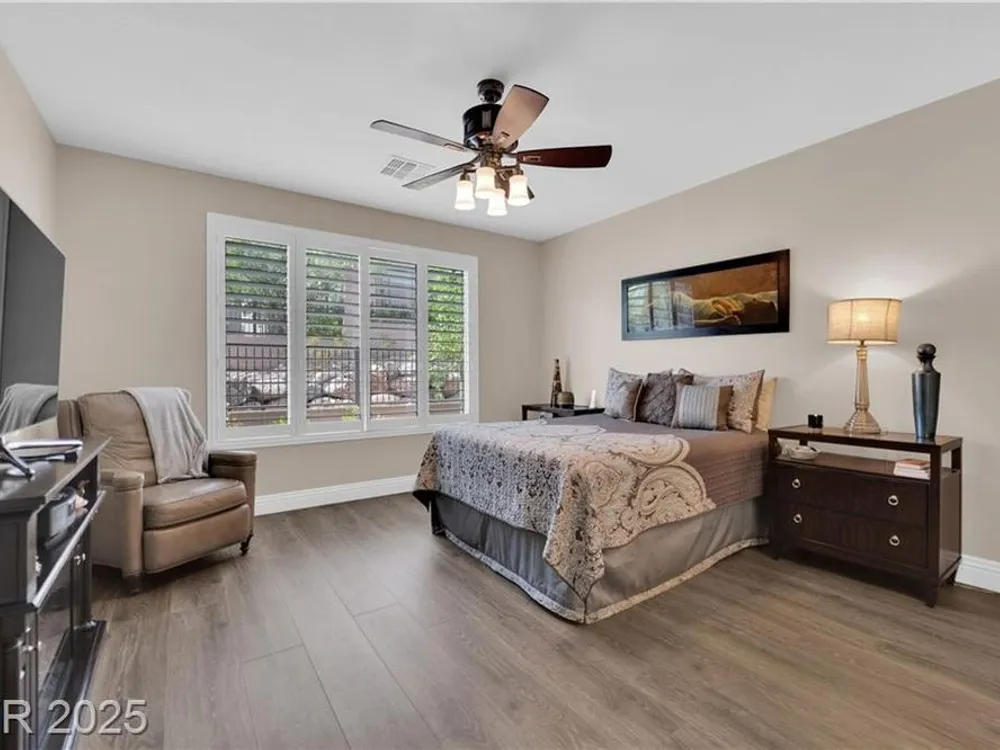 WELCOME to this 55+ residence in Lake Las Vegas offering the highly sought-after, SOLD OUT Tifton Walk floorplan, boasting not one, but two primary suites & a versatile den. Every detail in this home has been carefully considered. Luxurious upgraded luxury vinyl plank flooring flowing seamlessly throughout, creating a cohesive and elegant feel. The windows are adorned with stylish plantation shutters, providing both privacy and a touch of classic charm. The kitchen is a chef's delight, featuring upgraded appliances that are as beautiful as they are functional. Expanded laundry room with indoor secondary refrigerator. Step outside to the the serene, fully fenced backyard, meticulously landscaped with beautiful stone pavers and maintenance-free synthetic grass, allowing you to relax and enjoy the stunning Nevada weather without the fuss. Why wait for the builder when you can have this exceptional property now?
