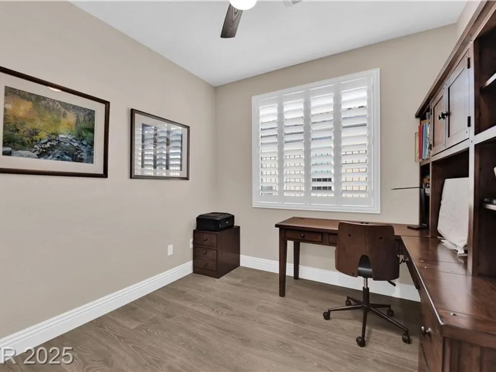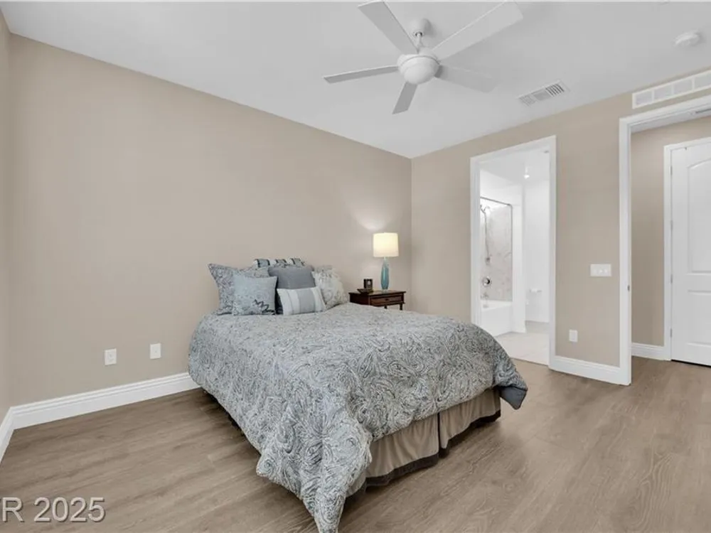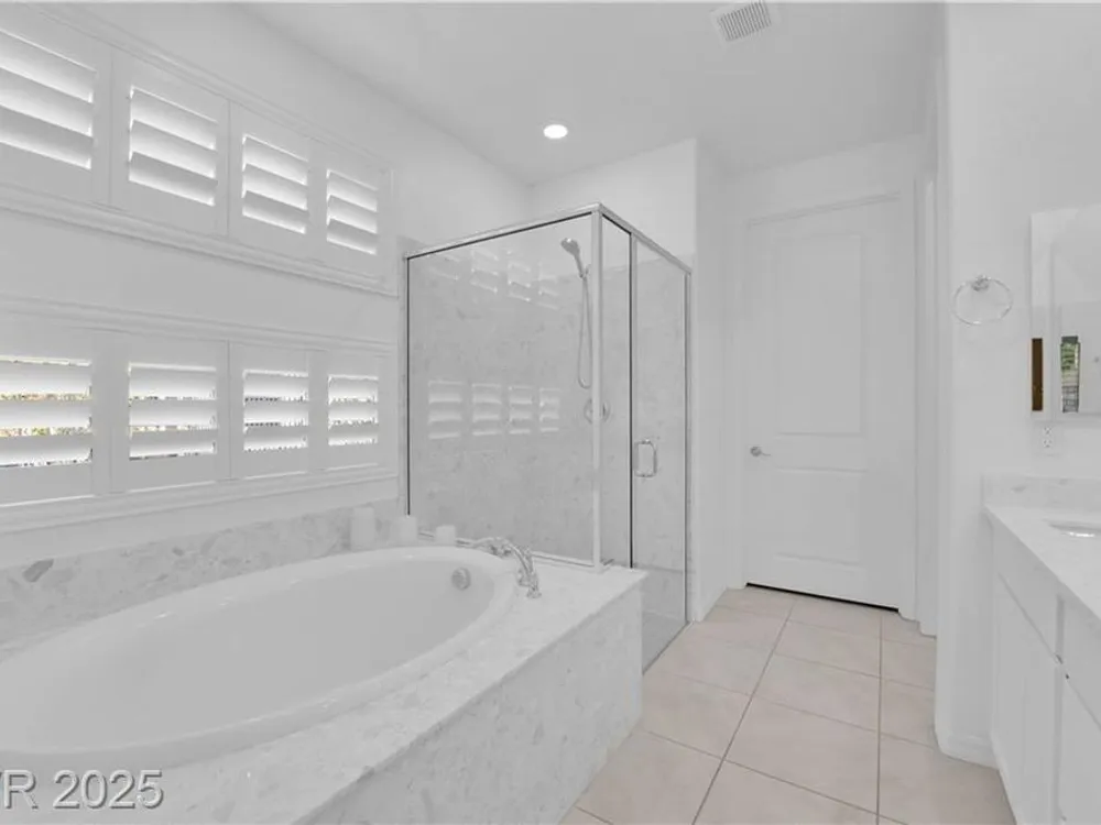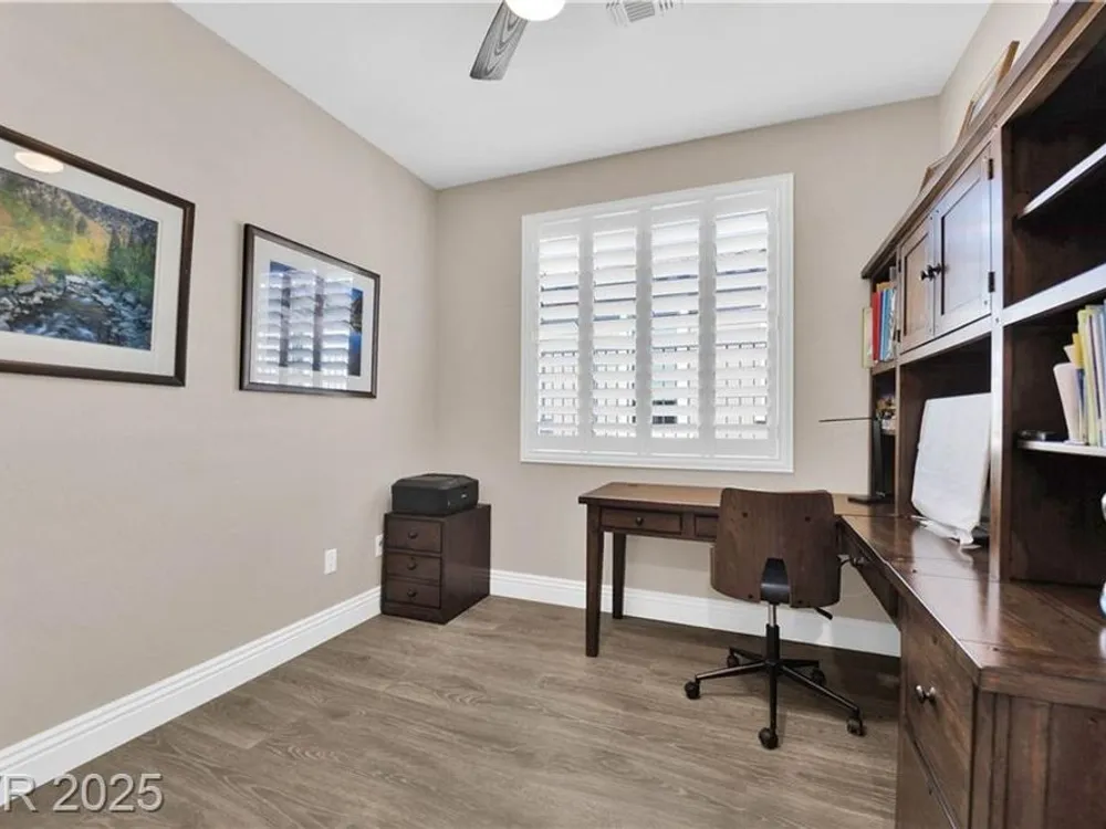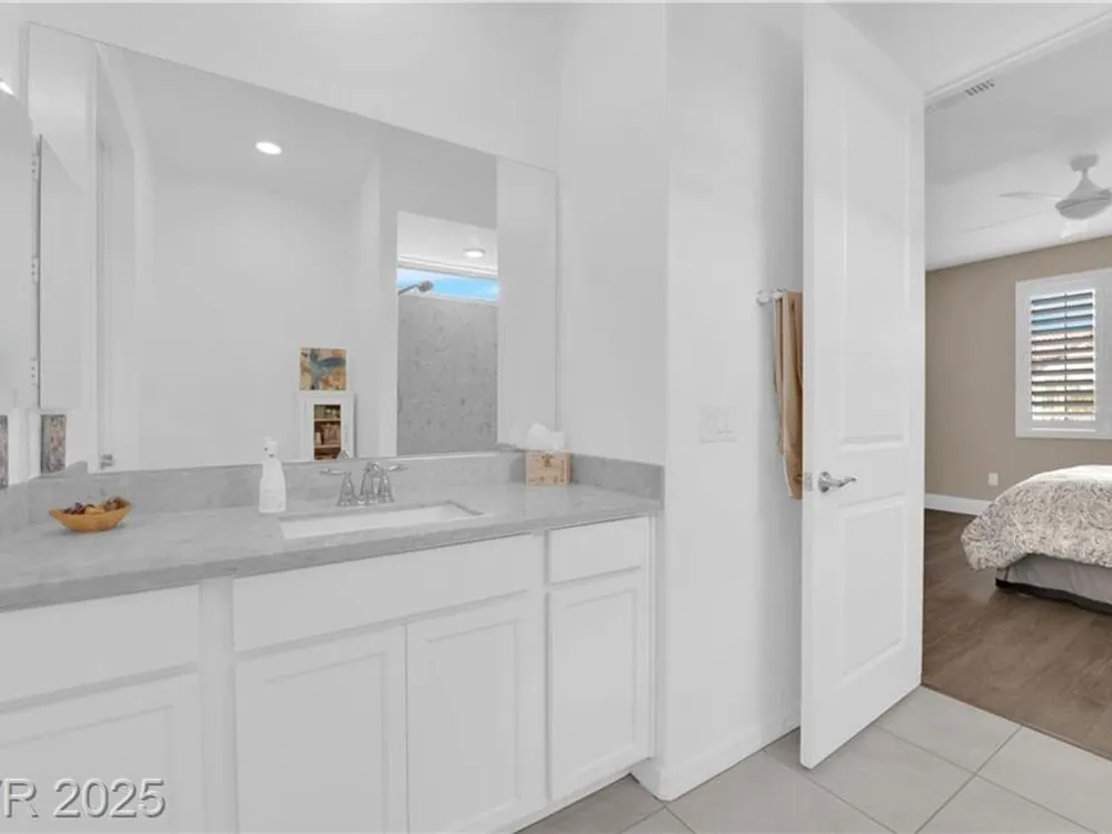 WELCOME to this 55+ residence in Lake Las Vegas offering the highly sought-after, SOLD OUT Tifton Walk floorplan, boasting not one, but two primary suites & a versatile den. Every detail in this home has been carefully considered. Luxurious upgraded luxury vinyl plank flooring flowing seamlessly throughout, creating a cohesive and elegant feel. The windows are adorned with stylish plantation shutters, providing both privacy and a touch of classic charm. The kitchen is a chef's delight, featuring upgraded appliances that are as beautiful as they are functional. Expanded laundry room with indoor secondary refrigerator. Step outside to the the serene, fully fenced backyard, meticulously landscaped with beautiful stone pavers and maintenance-free synthetic grass, allowing you to relax and enjoy the stunning Nevada weather without the fuss. Why wait for the builder when you can have this exceptional property now?