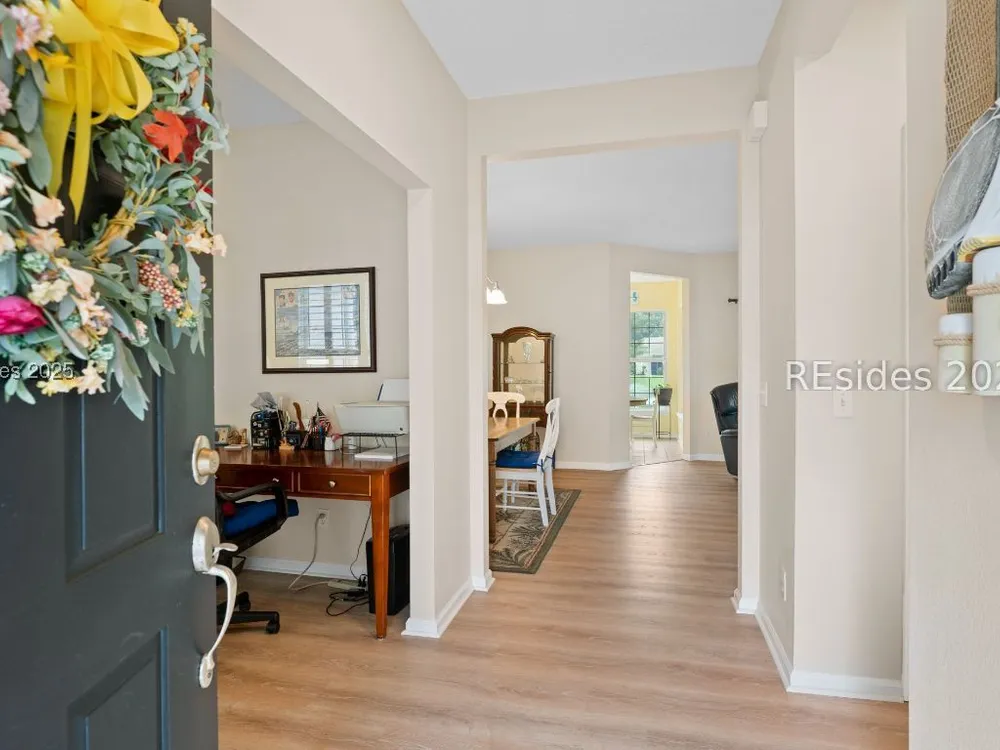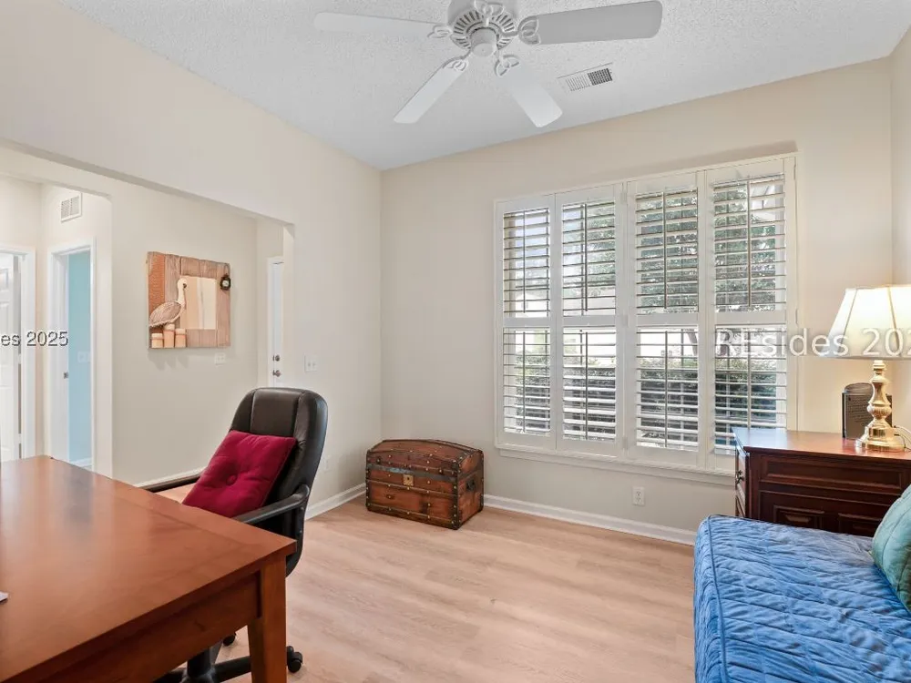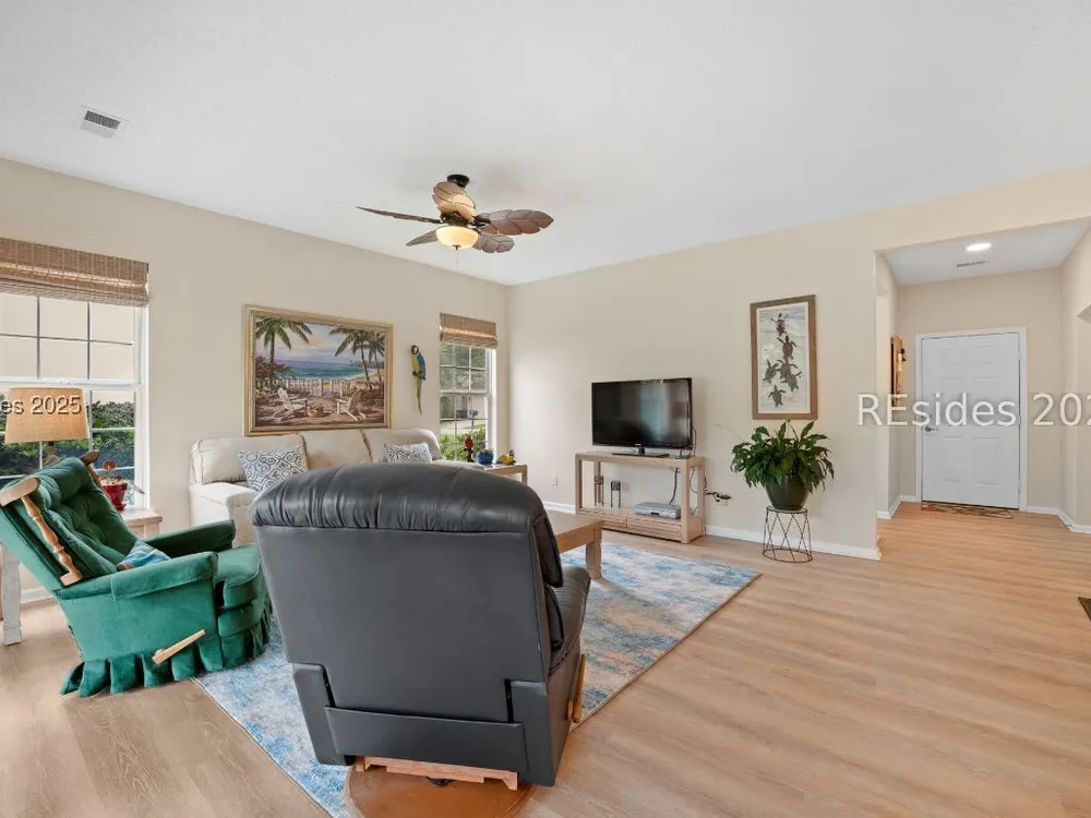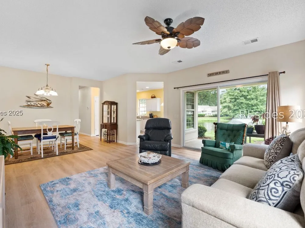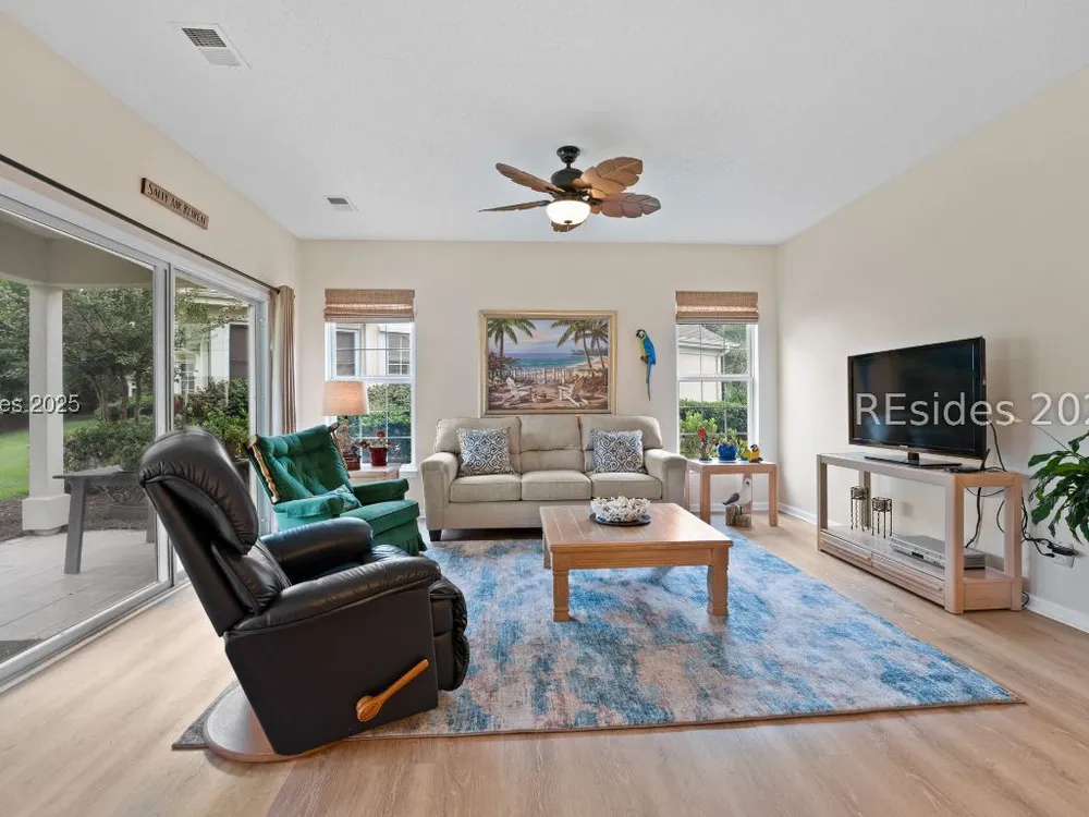 Great opportunity to own the sought-after Wren villa model in Sun City Hilton Heads desirable Aviary neighborhood! Ideally situated on a quiet cul-de-sac, this 2-bedroom plus den home offers a peaceful lagoon view and is just moments from the Hidden Cypress amenity center, pickleball courts, softball field, dog park, and woodworking shop. Inside, you'll love the new luxury vinyl flooring throughout the living areas, an eat-in kitchen, and a spacious, move-in ready interior. The villa also features a charming, covered porch - perfect for enjoying morning coffee or evening sunsets. Don't miss your chance to enjoy low-maintenance living and an active lifestyle in this beautiful community!