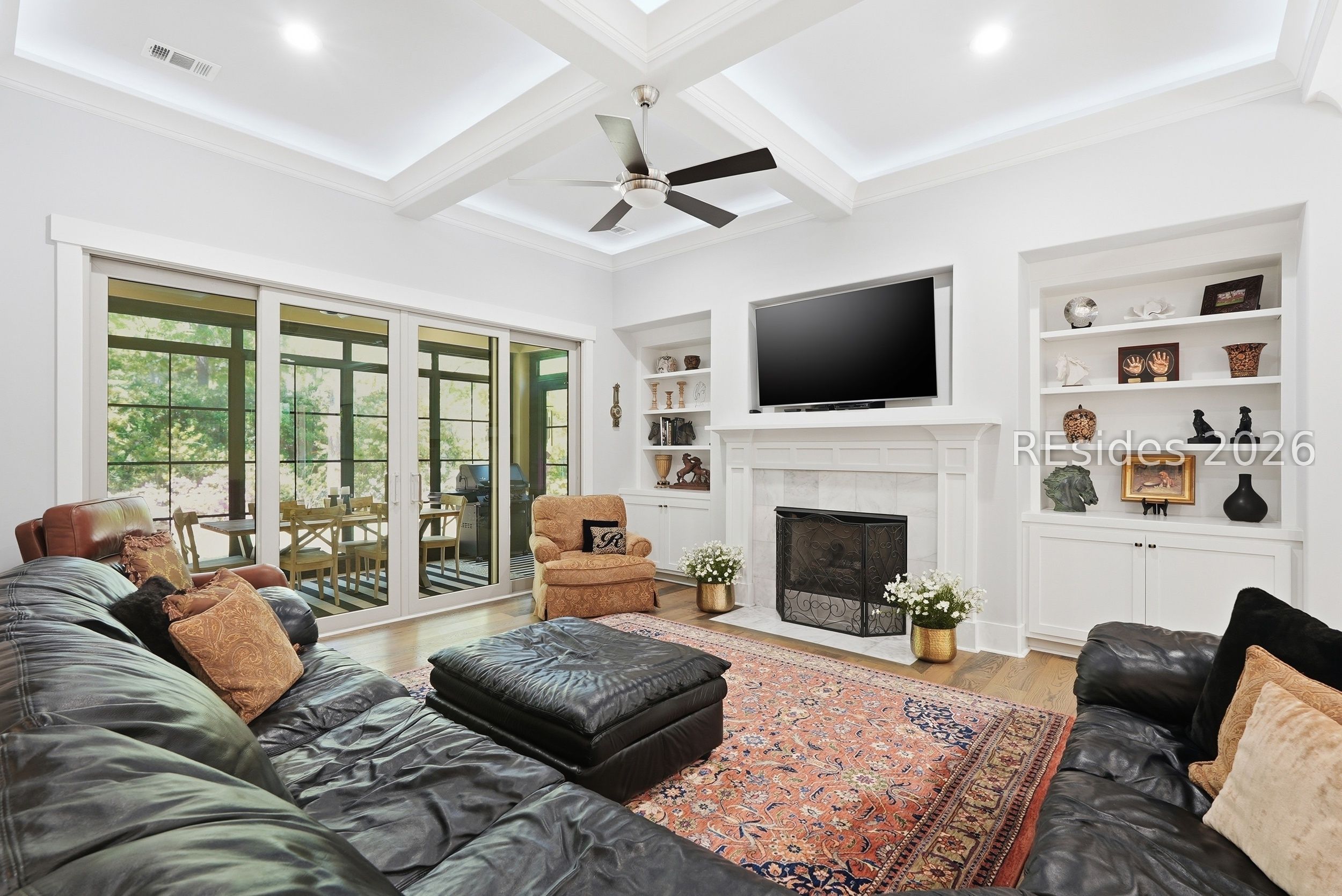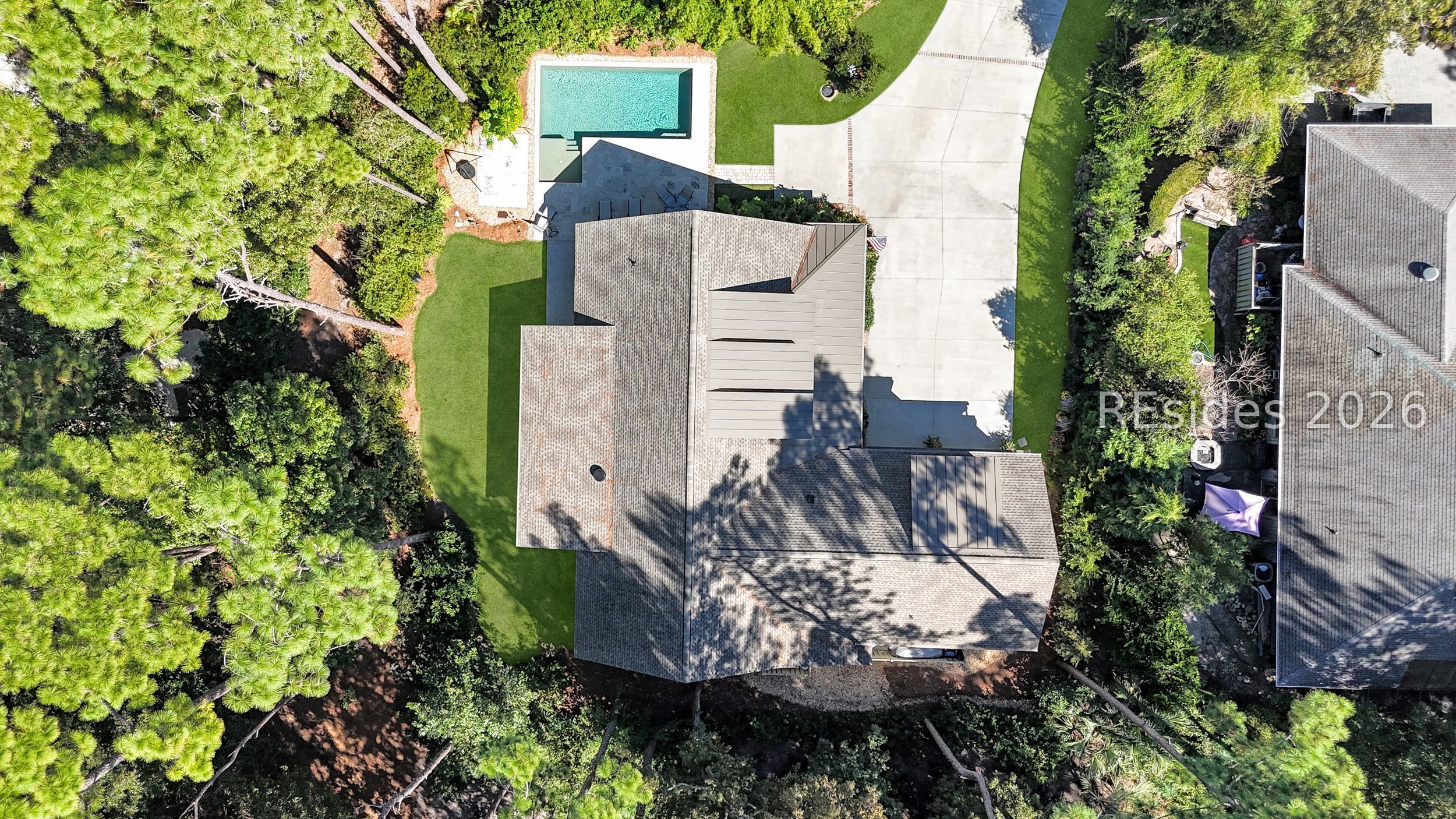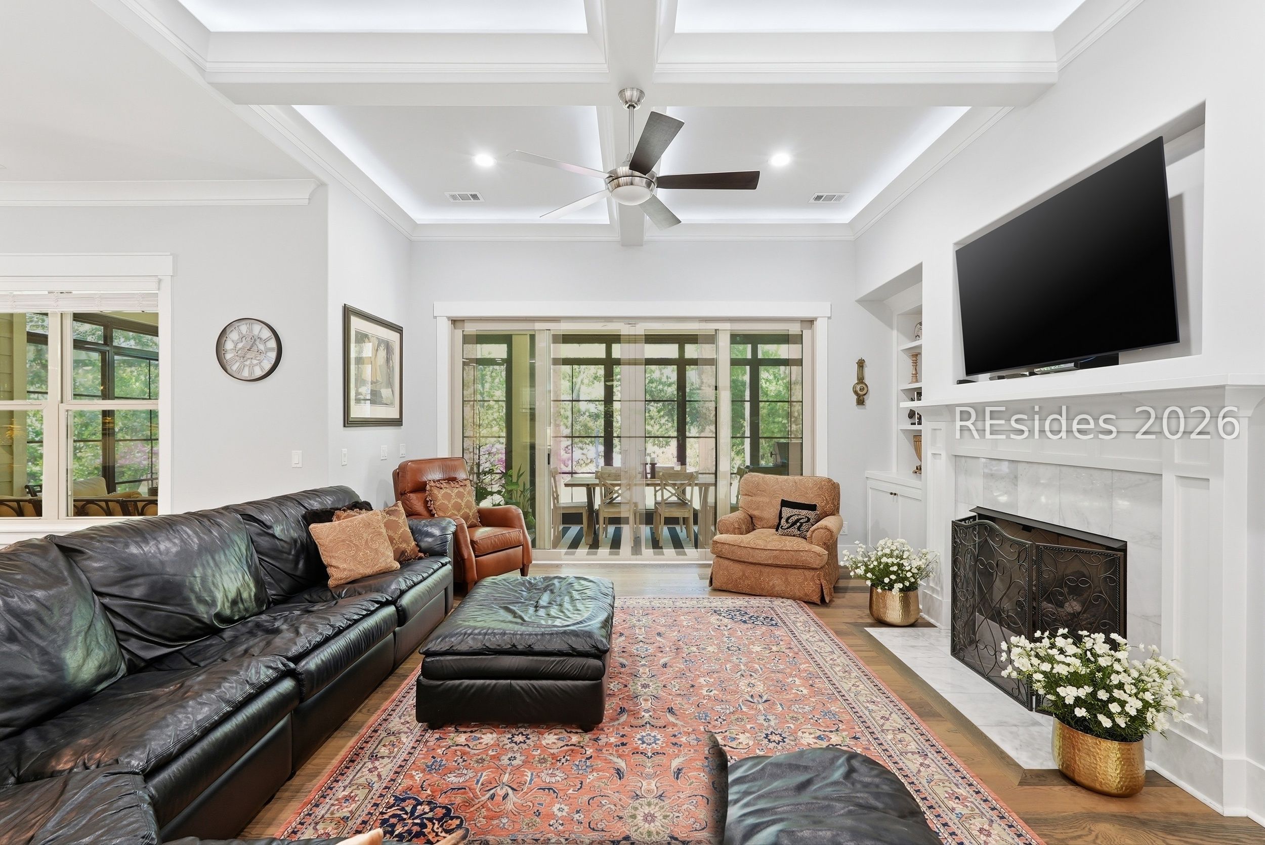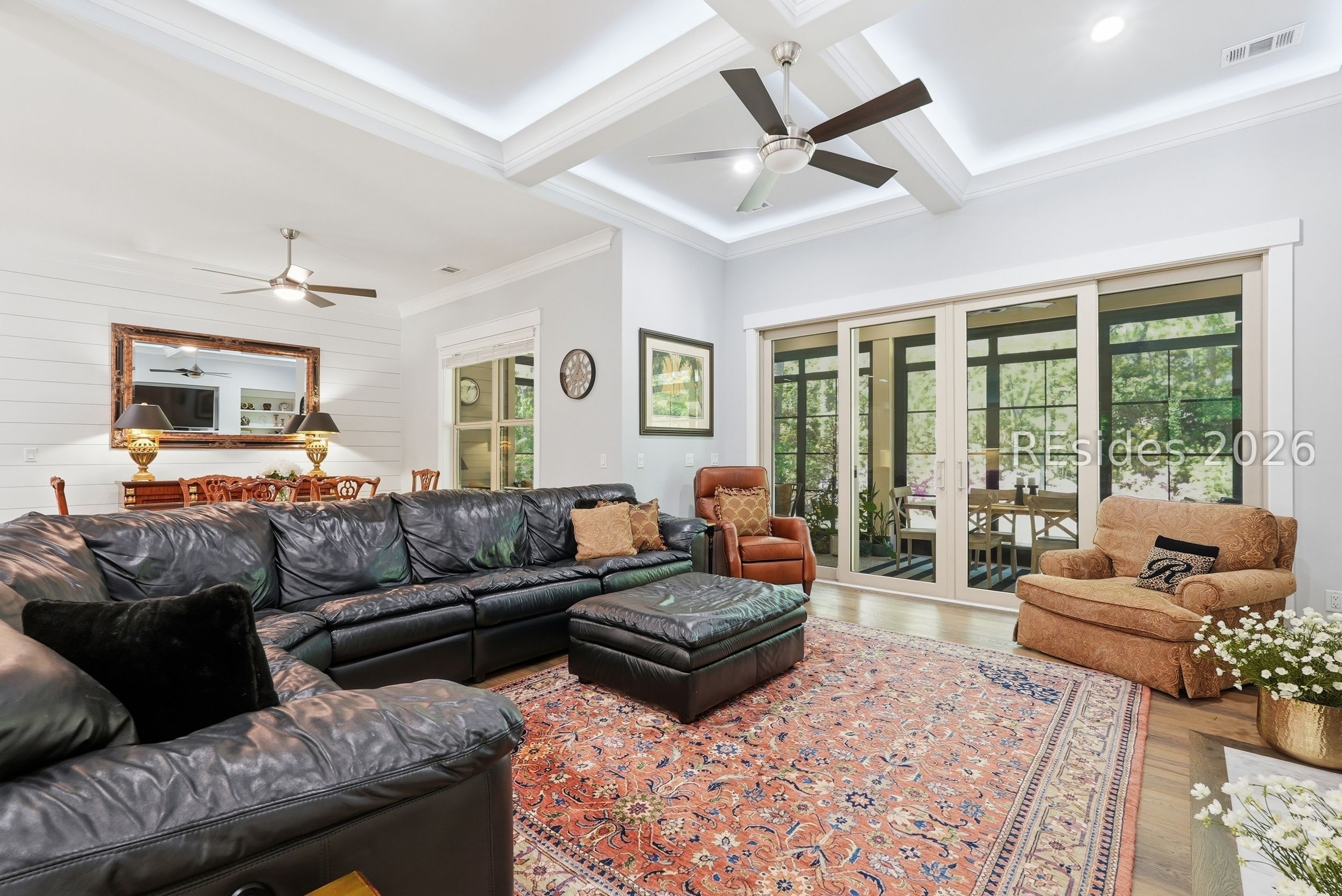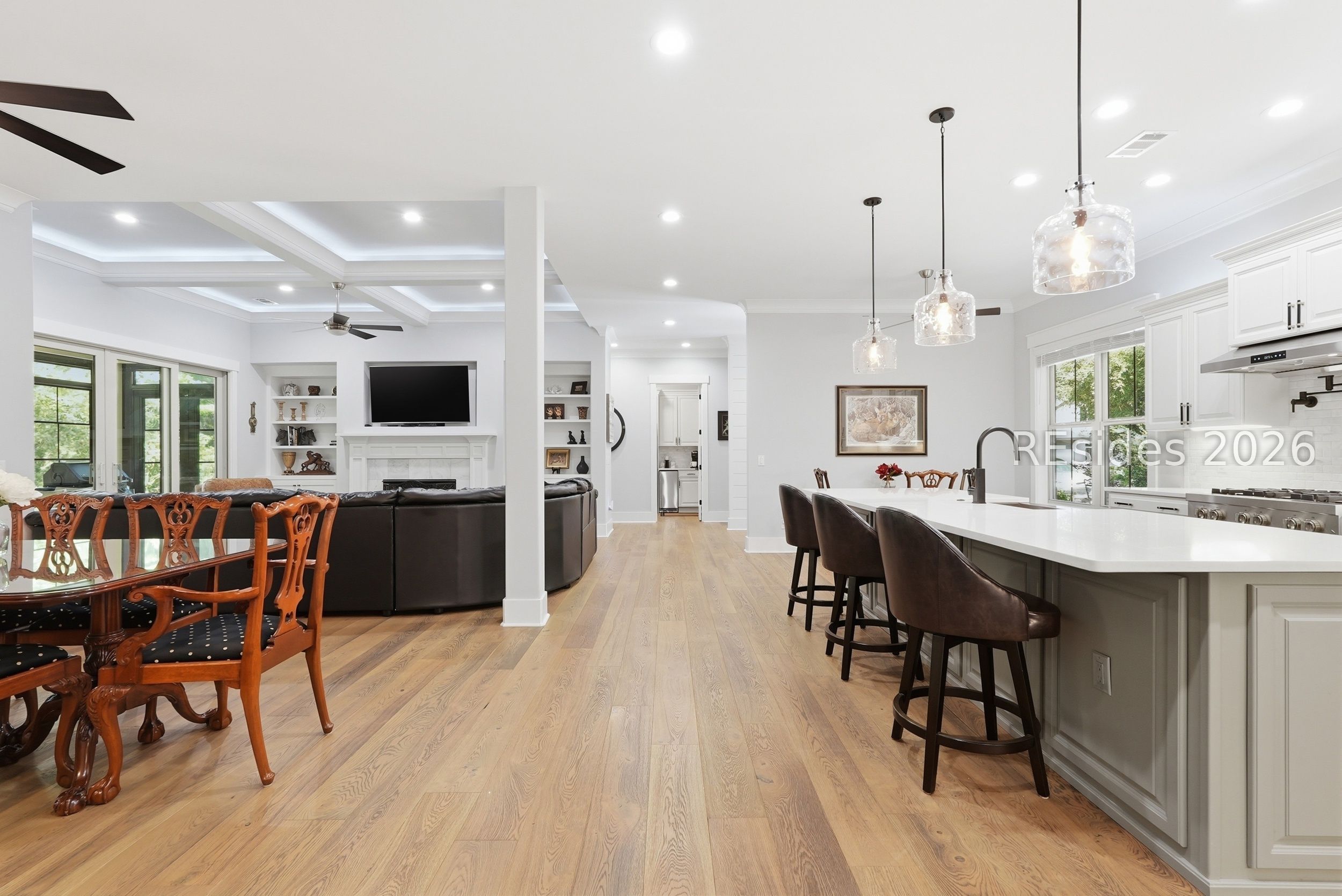 Set on one of the highest elevations on Hilton Head Island (approximately 20 feet above sea level, Zone X), this thoughtfully designed home built in 2021 provides both security and a true sense of retreat-surrounded by mature trees and lush, curated landscaping that creates a secluded, garden-like setting. Inside, the home is equally impressive. Light-filled living spaces with 10+ ft ceilings flow effortlessly into a stunning open-concept design anchored by a beautifully appointed gourmet kitchen. Featuring an 11-foot quartz island, custom cabinetry with extensive drawer storage, honed marble backsplash, gas cooktop, double ovens, and a butler's pantry with beverage center, this space was designed for both everyday living and exceptional entertaining. The home offers four spacious ensuite bedrooms, including a luxurious first-floor primary suite with dual walk-in closets, spa-like bath, and elegant finishes throughout. A large second-floor flex suite provides ideal space for guests, media, or a private retreat. One of the home's most captivating features is the all-season porch-nearly 300 square feet of additional living space-designed with a convertible SunSpace system that transitions from enclosed to screened, allowing you to enjoy coastal breezes, abundant natural light, and peaceful garden views year-round. Step outside to a private outdoor oasis. The saltwater pool with Italian travertine decking offers both sun and shade throughout the day, while the expansive surrounding deck provides generous space for lounging or dining. The landscaping-featuring over 300 flowering plants across 58 varieties-creates a vibrant, ever-changing backdrop, with blooms extending from spring through late fall and even into winter. Designed with entertaining in mind, the home comfortably accommodates large gatherings, with space for up to 24 guests, dual refrigerators, a premium Scotsman nugget ice maker, and ample parking for family and friends. Located just minutes from the Bluff Trail, Dolphin Head Beach, golf, and miles of leisure paths, this home offers a unique blend of privacy, natural beauty, and coastal lifestyle-an exceptional opportunity in one of Hilton Head's most desirable settings.