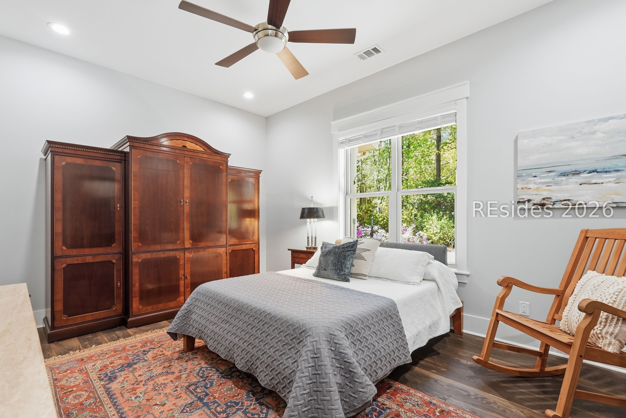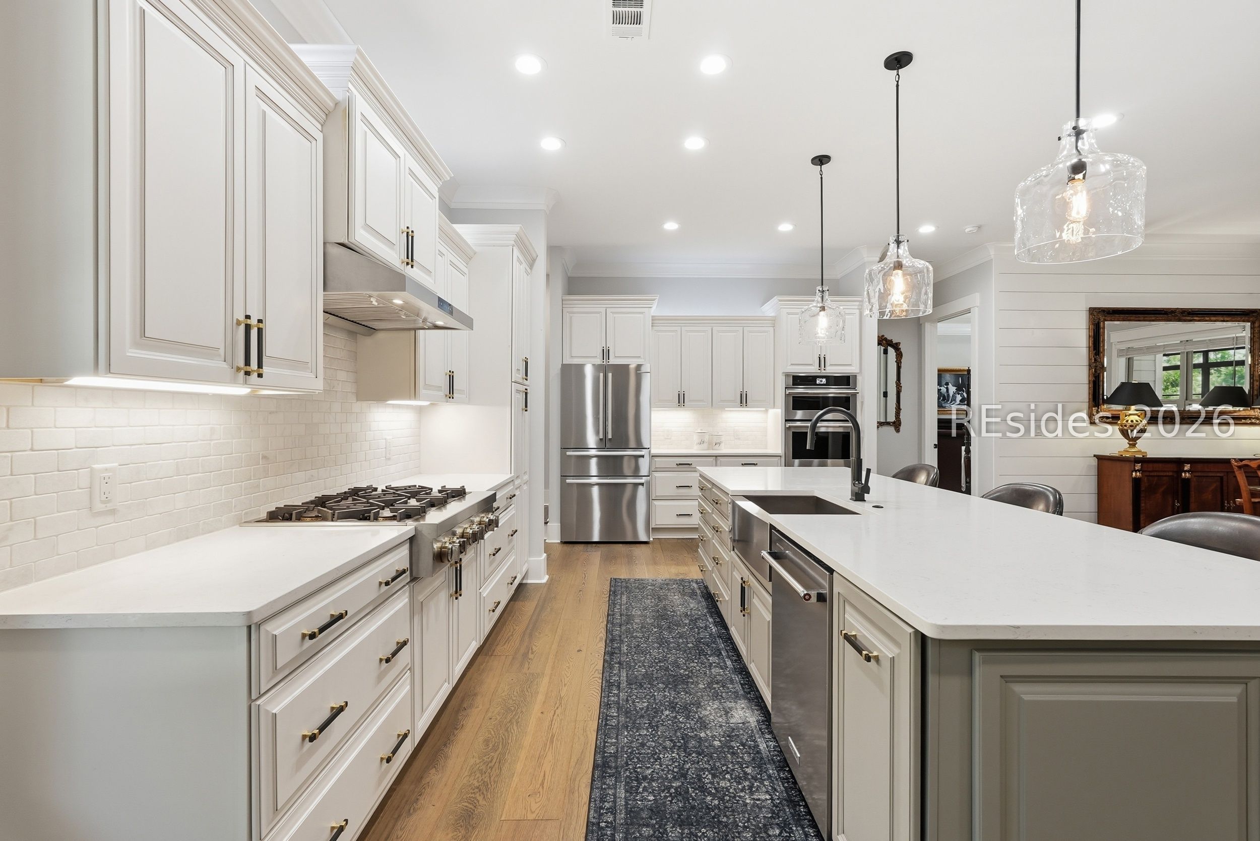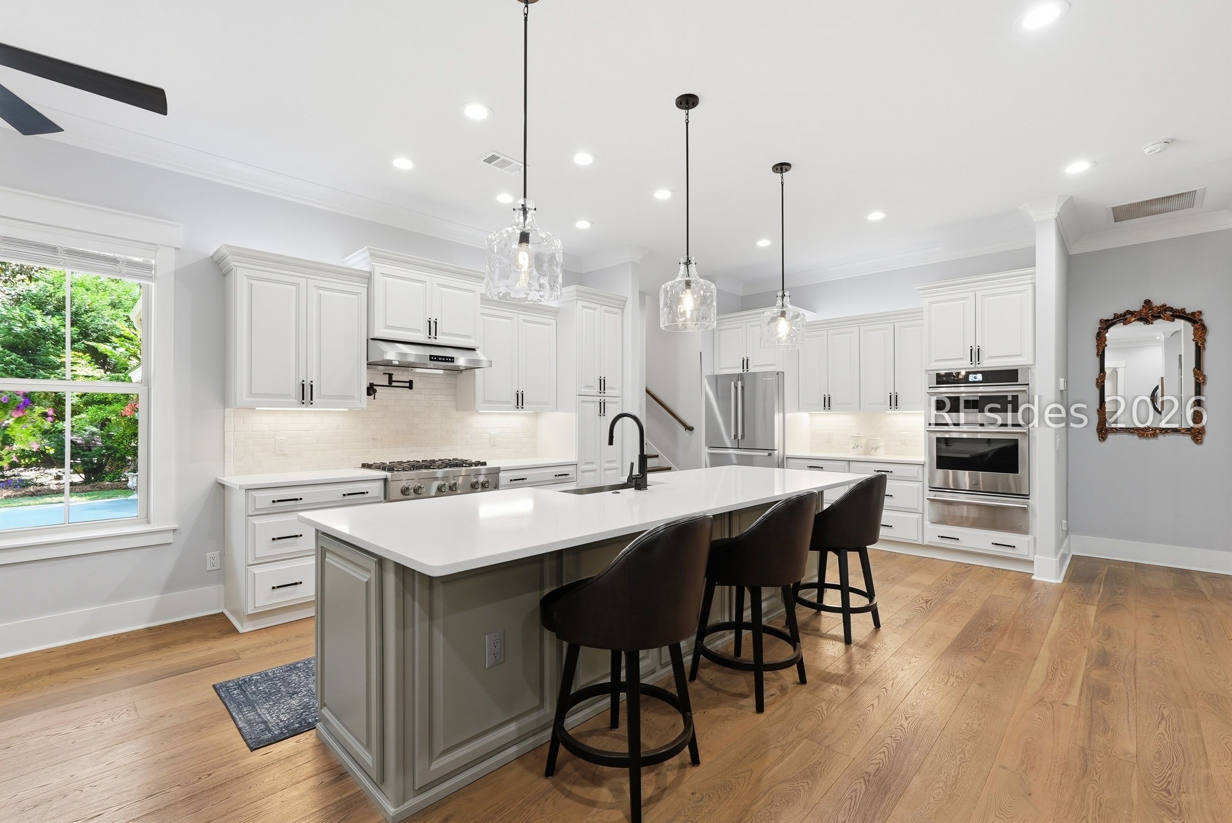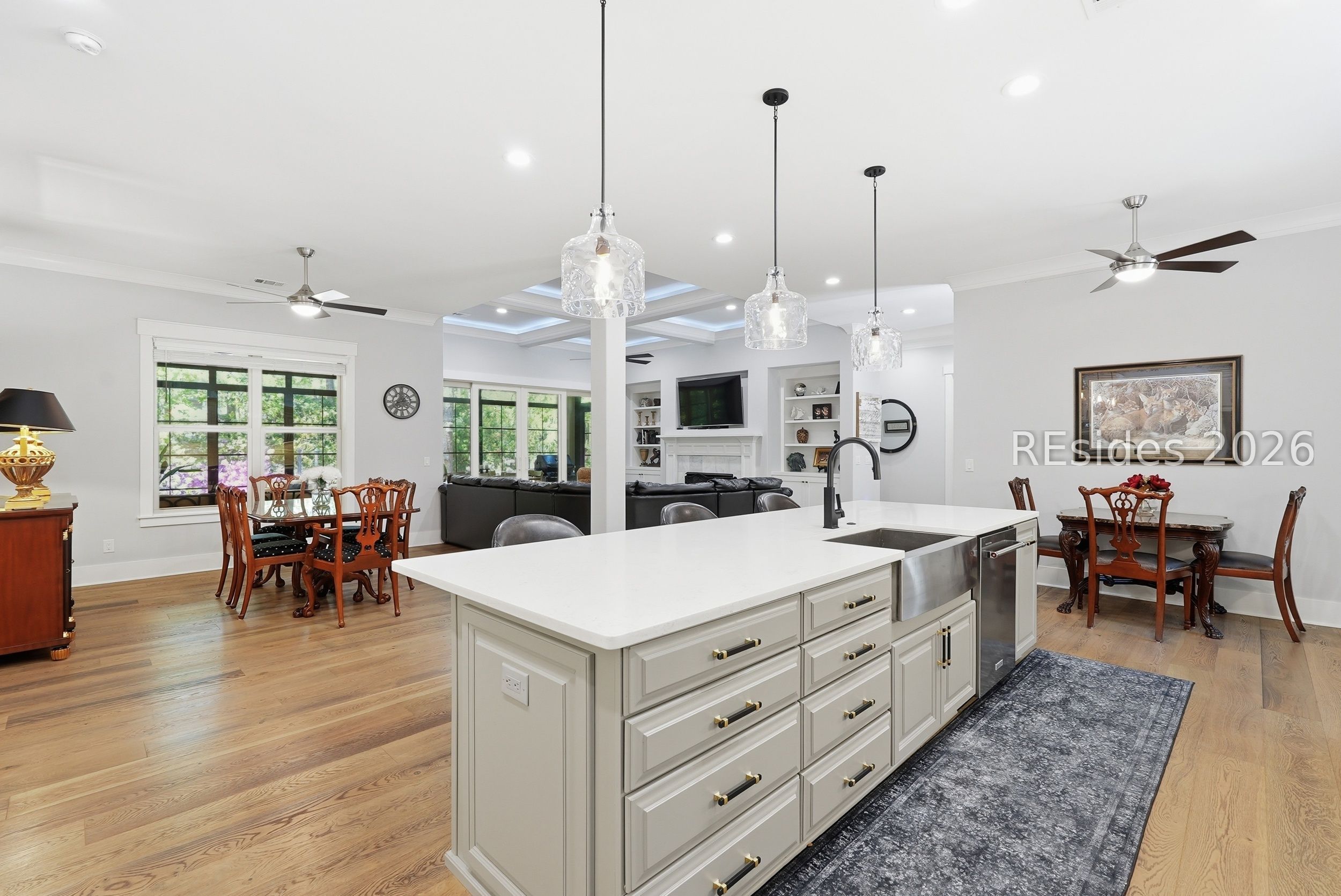 Set on one of the highest elevations on Hilton Head Island (approximately 20 feet above sea level, Zone X), this thoughtfully designed home built in 2021 provides both security and a true sense of retreat-surrounded by mature trees and lush, curated landscaping that creates a secluded, garden-like setting. Inside, the home is equally impressive. Light-filled living spaces with 10+ ft ceilings flow effortlessly into a stunning open-concept design anchored by a beautifully appointed gourmet kitchen. Featuring an 11-foot quartz island, custom cabinetry with extensive drawer storage, honed marble backsplash, gas cooktop, double ovens, and a butler's pantry with beverage center, this space was designed for both everyday living and exceptional entertaining. The home offers four spacious ensuite bedrooms, including a luxurious first-floor primary suite with dual walk-in closets, spa-like bath, and elegant finishes throughout. A large second-floor flex suite provides ideal space for guests, media, or a private retreat. One of the home's most captivating features is the all-season porch-nearly 300 square feet of additional living space-designed with a convertible SunSpace system that transitions from enclosed to screened, allowing you to enjoy coastal breezes, abundant natural light, and peaceful garden views year-round. Step outside to a private outdoor oasis. The saltwater pool with Italian travertine decking offers both sun and shade throughout the day, while the expansive surrounding deck provides generous space for lounging or dining. The landscaping-featuring over 300 flowering plants across 58 varieties-creates a vibrant, ever-changing backdrop, with blooms extending from spring through late fall and even into winter. Designed with entertaining in mind, the home comfortably accommodates large gatherings, with space for up to 24 guests, dual refrigerators, a premium Scotsman nugget ice maker, and ample parking for family and friends. Located just minutes from the Bluff Trail, Dolphin Head Beach, golf, and miles of leisure paths, this home offers a unique blend of privacy, natural beauty, and coastal lifestyle-an exceptional opportunity in one of Hilton Head's most desirable settings.
