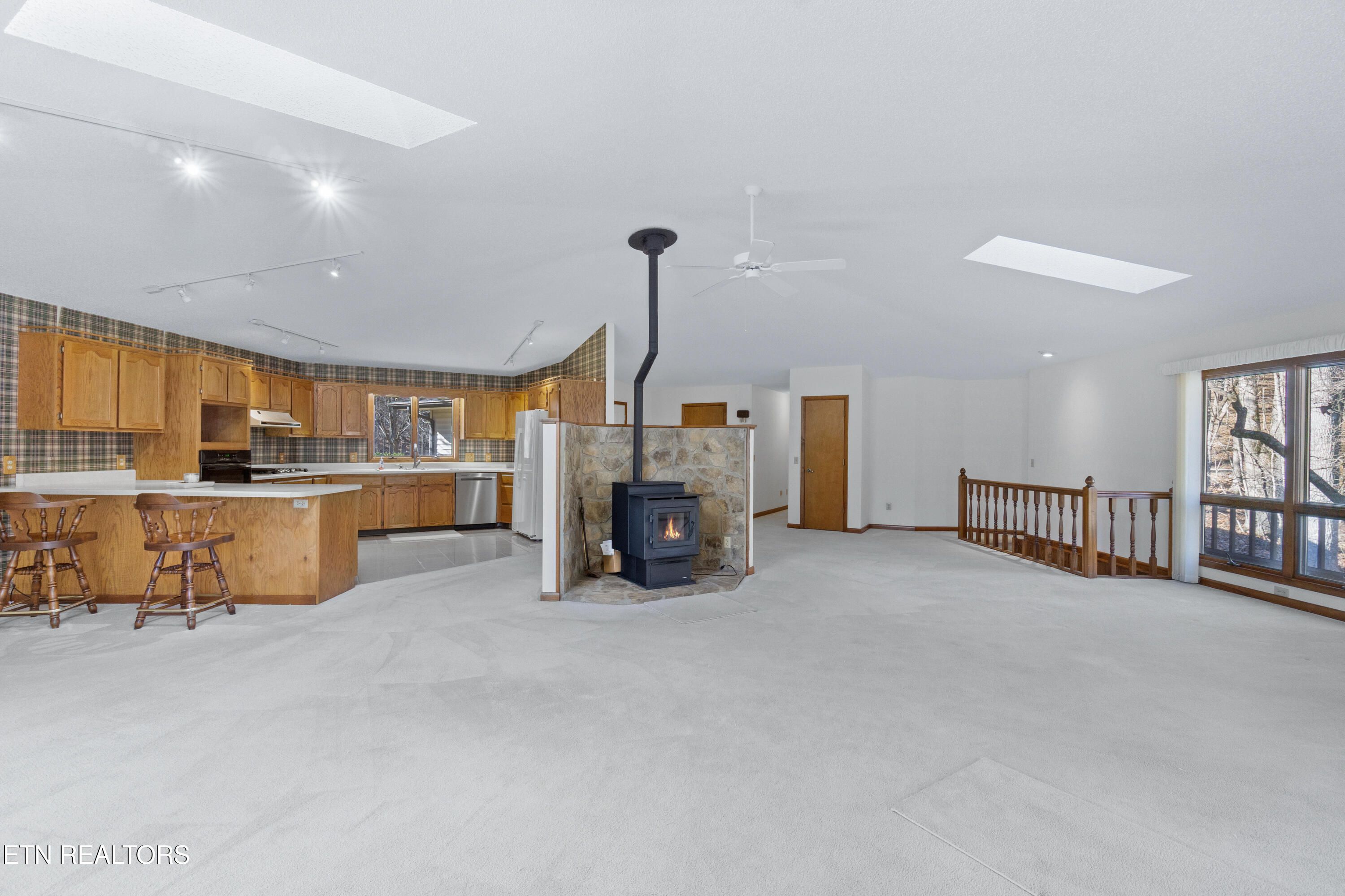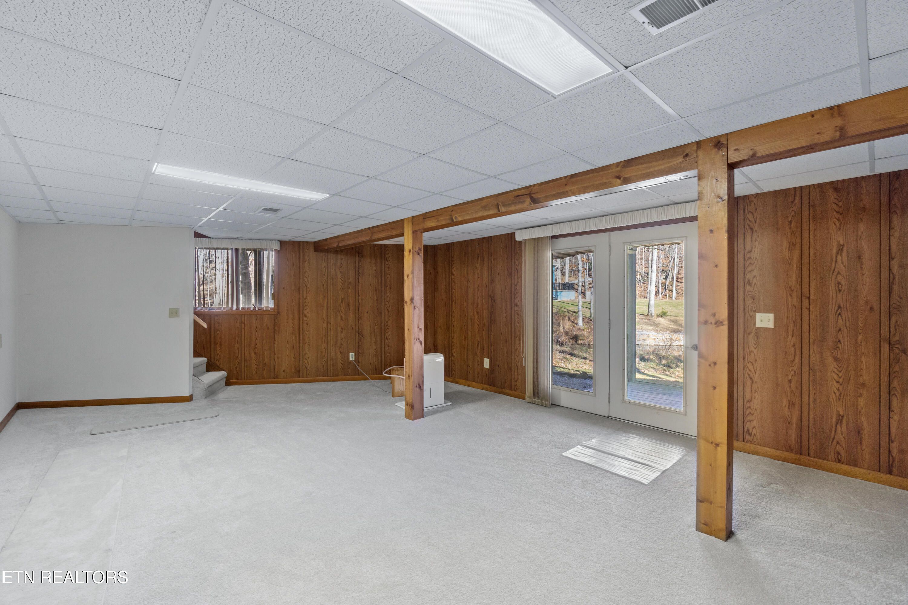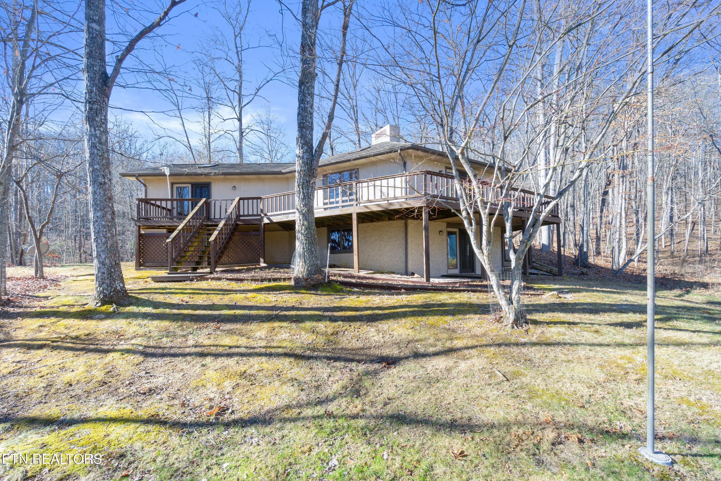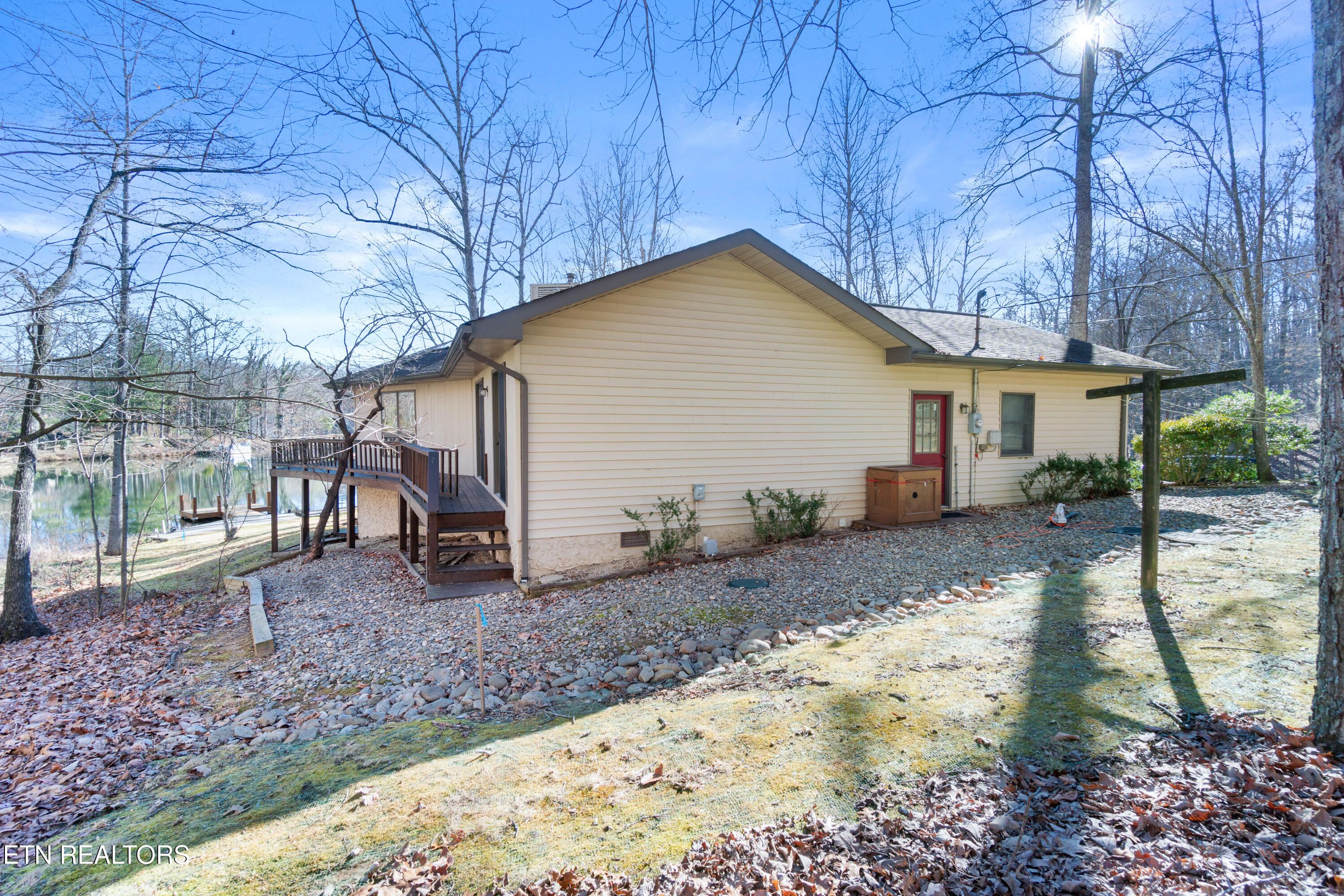 Lakefront Retirement Living in Fairfield Glades - Comfort, Accessibility, and Peaceful Waterfront Lifestyle! If you are dreaming of a retirement filled with peaceful lake views, quiet surroundings, and a home designed for comfort and ease, this beautiful lakefront property in the Fairfield Glades, Tennessee offers an exceptional opportunity. Located at the end of a quiet cul-de-sac on a generous lot, this one-story ranch home combines accessible living, scenic beauty, and flexible space perfect for enjoying your next chapter. Designed with comfort and aging in place in mind, the private master suite offers a spacious retreat with French doors that open directly onto a wraparound deck overlooking the lake. Imagine starting each morning with coffee while watching the sunrise over the water or relaxing in the evening with quiet lake views. The ensuite master bathroom is ADA compliant and features a large walk-in shower designed for safety, accessibility, and relaxation. Both bathrooms have a thermostatically controlled floor (heated). The heart of the home features a bright and welcoming layout where the roomy kitchen opens into a large octagon-shaped dining/living room. This unique design creates a spacious feel filled with natural light and beautiful water views. The open flow of the main living space makes daily living comfortable while also providing an inviting setting for hosting family and friends. On the opposite side of the home, guests or visiting family members can enjoy their own private space with an additional bedroom and full bathroom featuring a heated floor for year-round comfort. A nearby sewing or hobby room provides flexible space that could easily function as a third bedroom, craft room, home office, or reading retreat -- perfect for hobbies and activities many retirees enjoy. The finished walkout basement adds approximately 580 square feet of usable living or hobby space and includes a small workshop area ideal for woodworking, crafting, or home projects. Large glass doors allow natural light and convenient outdoor access. Interior access to a large crawl space provides excellent storage for seasonal decorations, tools, or recreational equipment. Outdoor living is truly where this property shines. The expansive wraparound porch offers elevated panoramic lake views, creating an ideal space for entertaining, birdwatching, or simply enjoying the peaceful setting. The recently rebuilt private dock provides direct lake access and is perfect for fishing, paddle boating, or enjoying time by the water. The property also includes a large attached two-car garage and an outbuilding for additional storage or hobby space. This home offers the perfect balance of privacy and convenience, located within the highly desirable Fairfield Glades community while still providing easy access to Fairfield Glade's golf courses, medical services, shopping, dining, and outdoor recreation opportunities. Whether you are looking for a full-time retirement residence or a relaxing seasonal retreat, this lakefront property offers comfort, accessibility, and a lifestyle centered around relaxation and natural beauty. If you are ready to slow down, enjoy scenic lakefront living, and settle into a home designed for comfort and flexibility, this property is a rare opportunity to make that vision a reality!