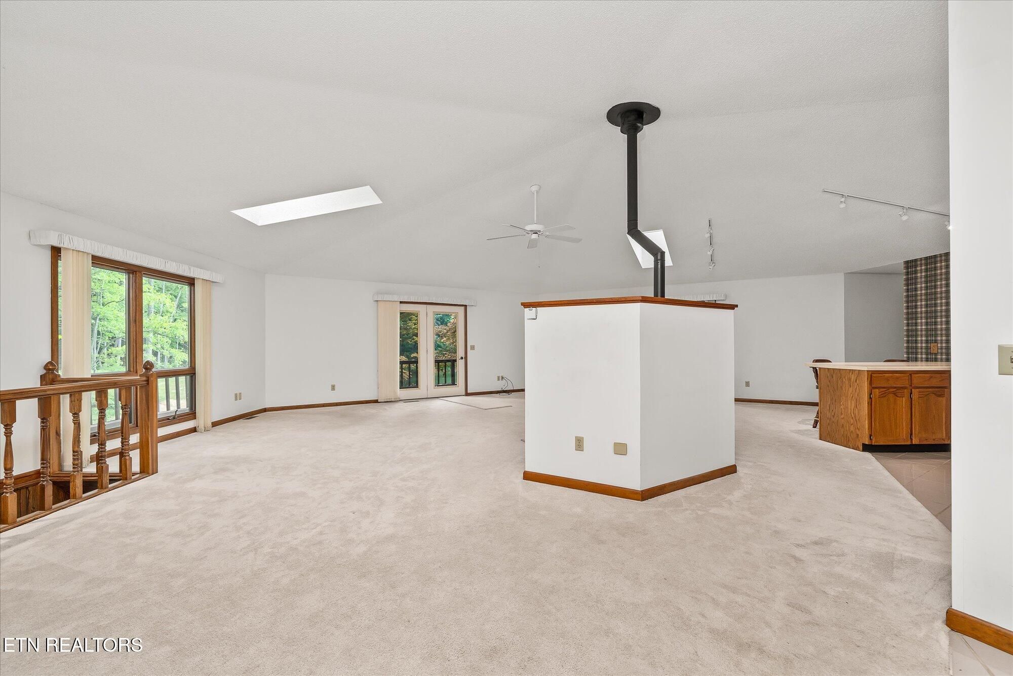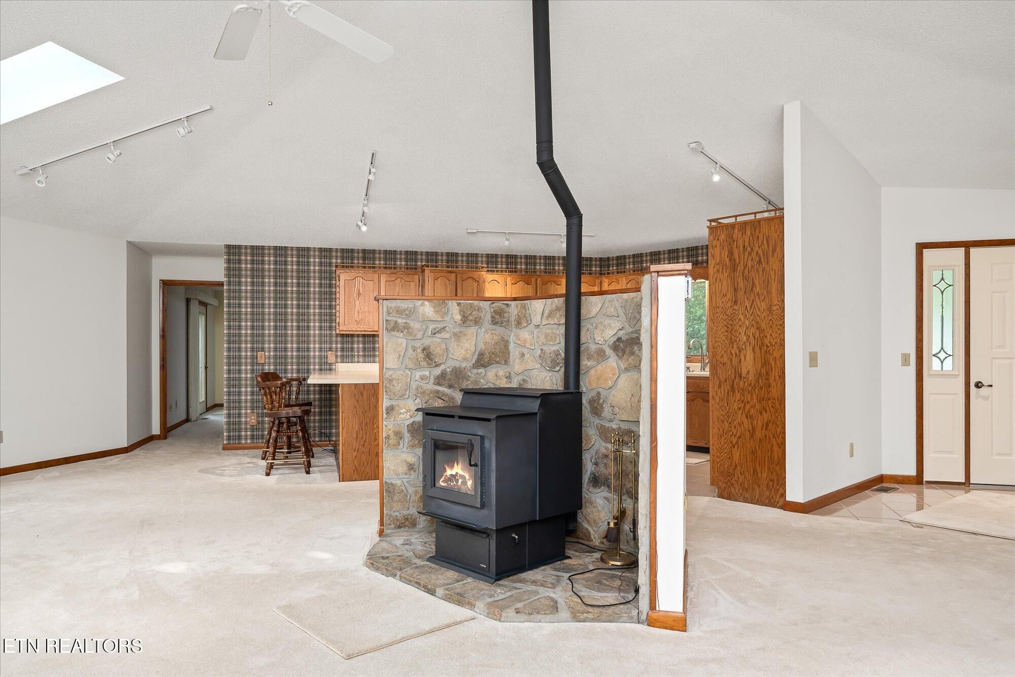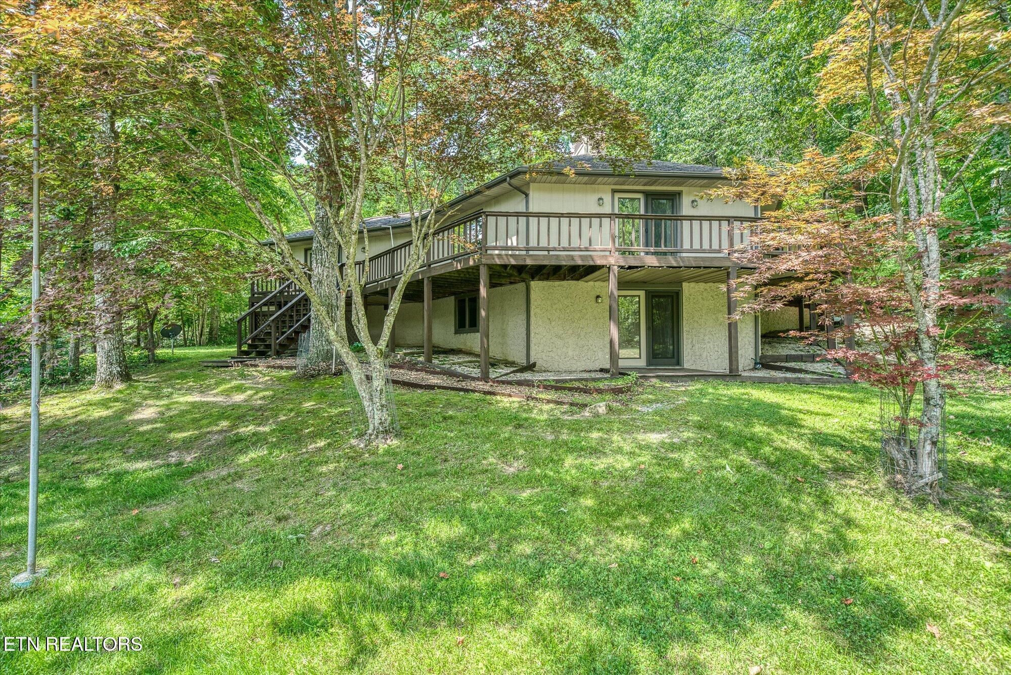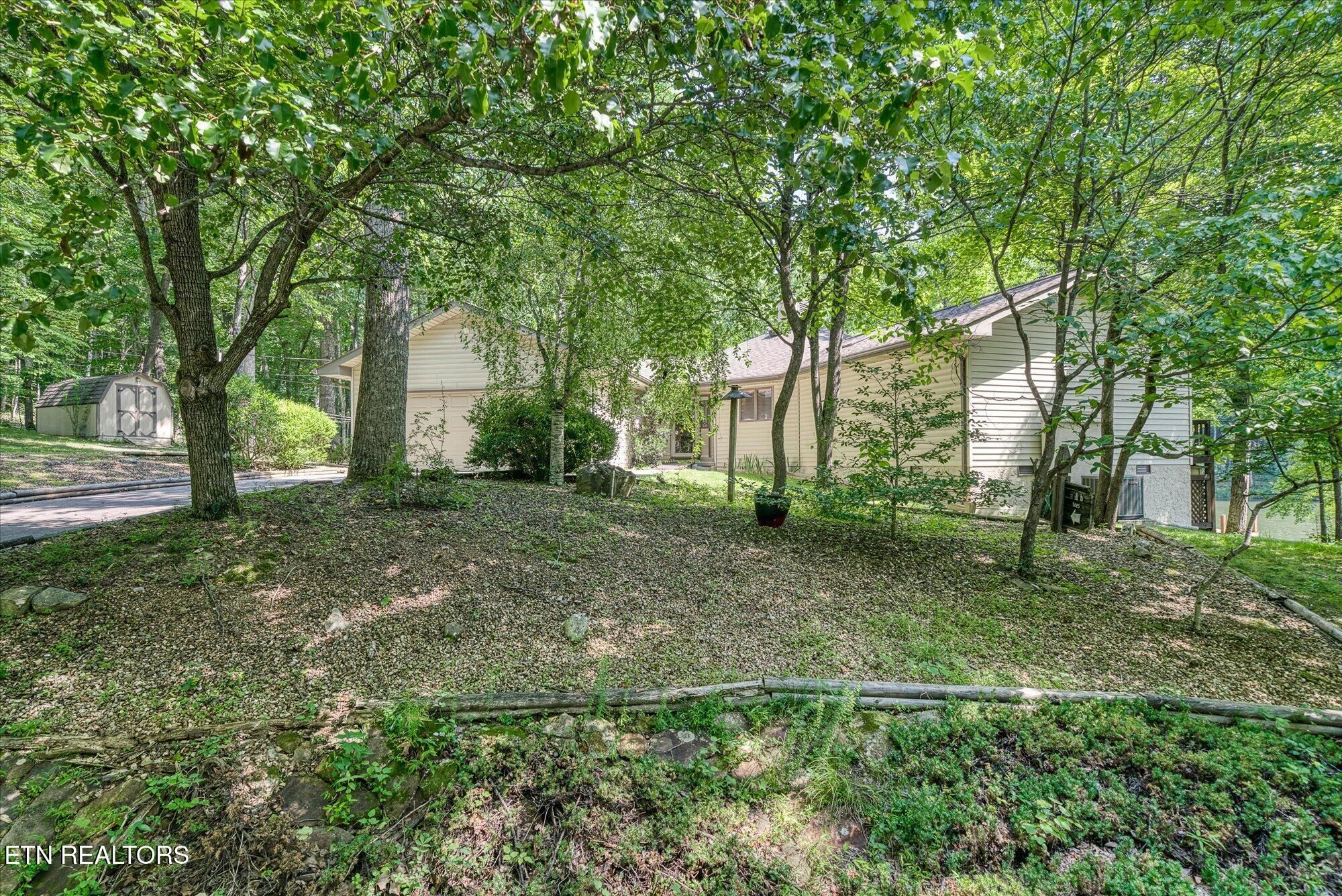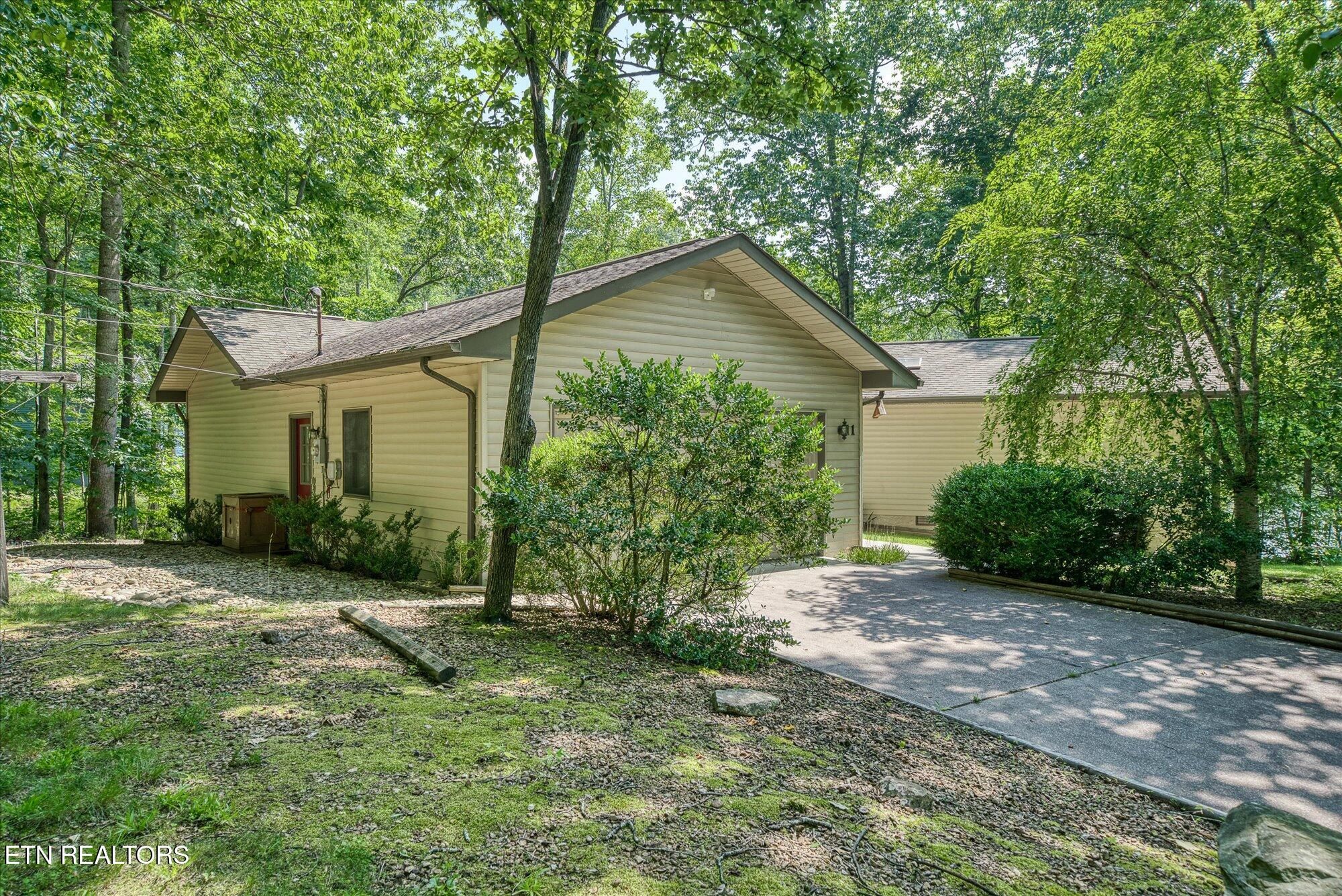 If you are looking for a private, serene location, then you have found it, this remarkable lake home offers an exquisite blend of comfort, character and natural beauty in a graceful park like setting. Built in 1990, this creative home features a split floorplan with an open concept living space, heated bathroom floors and a combination of carpet and ceramic tile throughout. The kitchen features a triple sink, large window overlooking the front yard, oak cabinets with pull out drawers, an eat in counter, gas stove cooktop, electric oven, dishwasher and refrigerator. Ceramic tile enhances the kitchen, foyer, and both bathrooms, and laundry room. The living area features a pellet stove surrounded by stone, adding warmth and a rustic charm to this area. The lower level is equipped with commercial grade carpet and includes a walkout to Lake Sherwood. There is also a catch all room for storage or small shop. This home is outfitted with a generator, central vac system installed in 2018, and a solar attic fan added in 2022 for energy efficiency. The home has well maintained baseboards and is illuminated with energy efficient LED lights and track lighting. Six skylights brighten the living room, primary, guest rooms and primary bath, The outdoor living is impressive in its own right, this home features a wraparound deck along the rear of the home accessible from each room via French doors. The most impressive feature of the home is the new dock and concrete patio adjoining the dock for boating, fishing and swimming. On a sidenote Lake Sherwood is stocked with crappie, bass, catfish, and tilapia. The property's shed was refurbished in 2016, and it features a durable metal shingle roof. The oversized 2 car garage includes built in cabinets for extra storage. You can live in privacy in Fairfield Glade but at the same time have access to all of the amenities which make Fairfield Glade one of the most sought-after retirement communities in the United States.