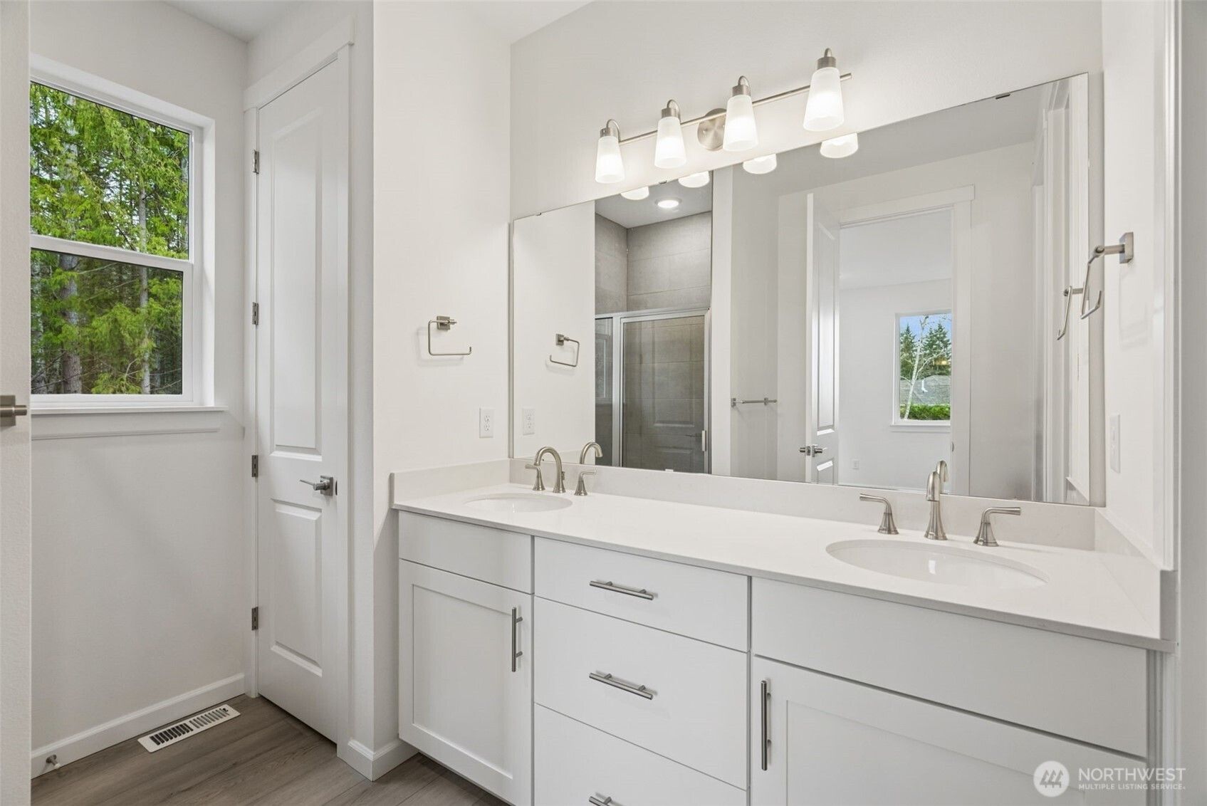 MOVE-IN READY!! Welcome to Olympic Terrace in Port Ludlow, featuring a new two-story home. The Frost is a 4 bedroom 2.5-bathroom home with a spacious great room and dining area; with an electric fireplace, gourmet kitchen and oversized center island, large pantry and much more. Oversized Primary suite has large windows and double sinks, spacious walk-in shower and closet. This home offers open concept, 9-foot ceilings on both floors and 8-foot doors. White cabinets and light stone LVP flooring with quartz countertops. Extras included central A/C, front and back yard landscaping with sprinklers in front, EV charger and more! If working with Buyer Broker, please register your Broker on your 1st visit.