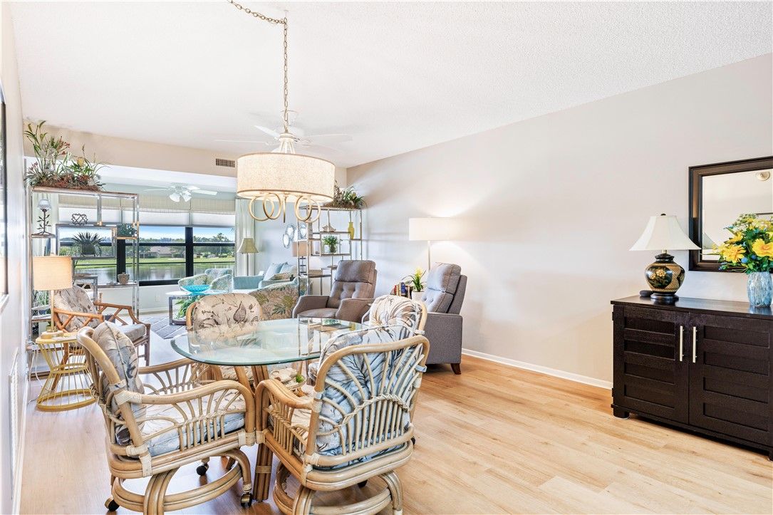 Welcome home to this furnished, turnkey gem in the coveted “inner circle” with STUNNING lake & golf course views! This favored 2BD/2BA floor plan offers an extra kitchen window for even more natural light and a spacious pantry! Delight in kitchen's upgraded cabinets, counters, tiled backsplash & stainless steel appliances! Baths updated with beautiful vanities & flooring. Bask in luxury vinyl floors, plush bedroom carpet, Wi-Fi HVAC & water heater, impact windows & assigned covered parking! Bring your suit case & enjoy this season or year round! Near heated pool/clubhouse/pickle ball/pro shop!