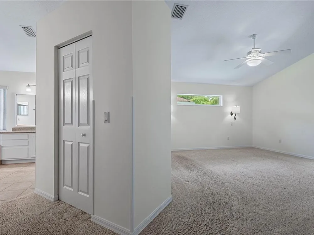 - Cathedral Ceiling(s), Ceiling Fan(s), Crown Molding, Main Level Primary, Solid Surface Counters, Stone Counters, Thermostat, Vaulted Ceiling(s), Walk-In Closet(s), Window Treatments
