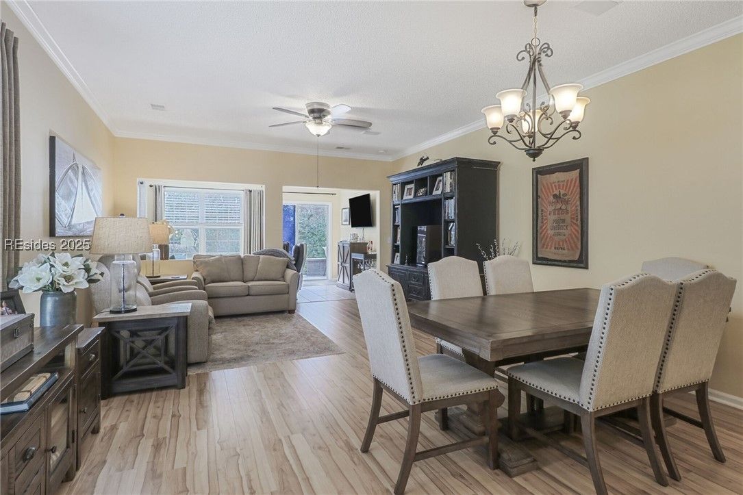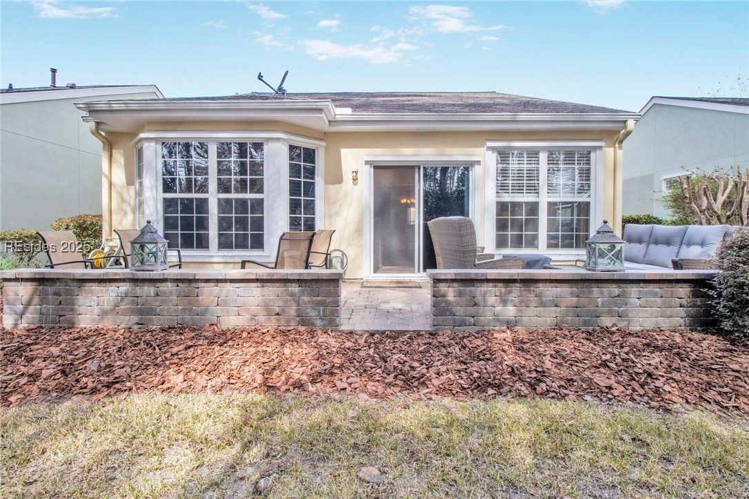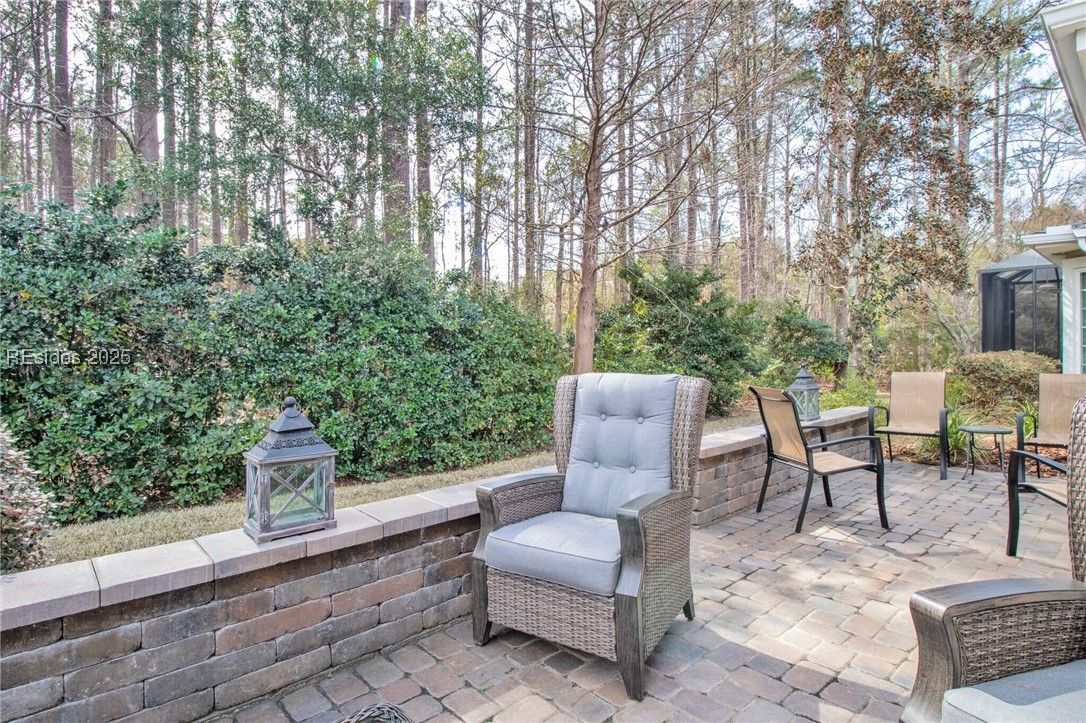 One of the best locations in Sun City across the street from Town Square. 2-minute walk to the Town Square amenity center. Heather model with 2 bedrooms, 2 bathrooms & den. Carolina room & brick paver patio with courtyard wall leading to the front door. Wood & tile floors throughout. Eat-in kitchen with Silestone counters, updated cabinets, SS appliances, natural gas stove & Thomasville custom-built prep station with full-extension soft-close 24" drawers. Updated light fixtures & fans. Owner's suite with bay window new bathroom vanity with quartz top. 2nd bath with updated vanity & tiled walk-in shower. New blinds, window treatments, & crown molding. Backyard brick paver patio with courtyard wall offers views of the private forest preserve. Enjoy the Sun City lifestyle living on a street of former model homes. Home is being sold furnished.