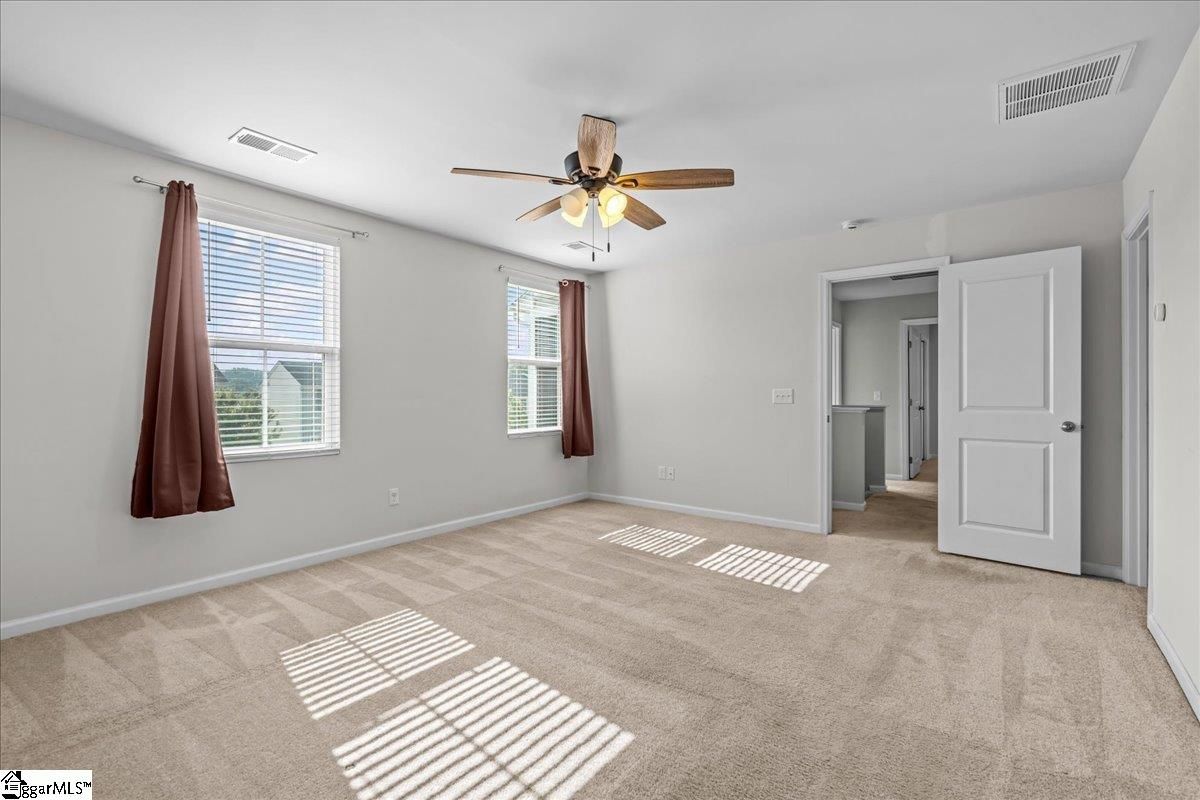 Welcome to Maplestead Farms, a vibrant neighborhood with newer homes and close access to the Swamp Rabbit Trail, Paris Mountain, Furman University, shopping, and so much more! This community has sidewalks and a welcoming nature playground. This 3-bedroom/2.5 bath two-story is bright and cheery with lots of natural light. It features an open concept kitchen and living room with a kitchen island and a breakfast area that opens to a large, completely fenced backyard with patio. The yard's upper berm is filled with wild blackberry bushes and passionflower fruit! Upstairs, you will discover an oversized primary bedroom ensuite with a large walk-in closet. The well-planned split floor plan has the largest storage closet and laundry room in the hall between the additional bedrooms. The other two spacious upstairs bedrooms share a hall bath. The split HVAC system with separate upstairs and downstairs thermostats allows for lower heating/cooling bills and more comfort. This is a truly lovely home that has been well taken care of at an affordable price in move-in condition!!! Carpets have been freshly cleaned for the next owner.