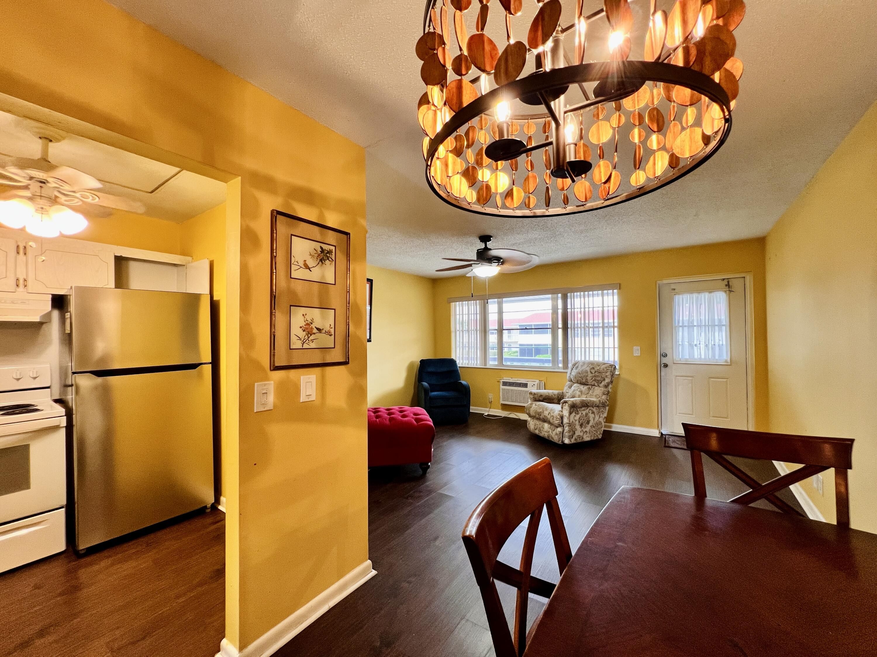 A Lovely Spot To Call Home In 55+ Century Village! Cheerful One Bedroom / One Full Bath Centrally Located Within The Community - Close to Several Pools! Pretty Dark Wood Look Laminate Flooring Flows Throughout. Screened Lanai Offers A Fantastic Spot to Enjoy Gorgeous Sunsets & Green Space Views! Century Village Is a Vibrant 55+ Community Centrally Located in Highly Desirable Palm Beach County...
