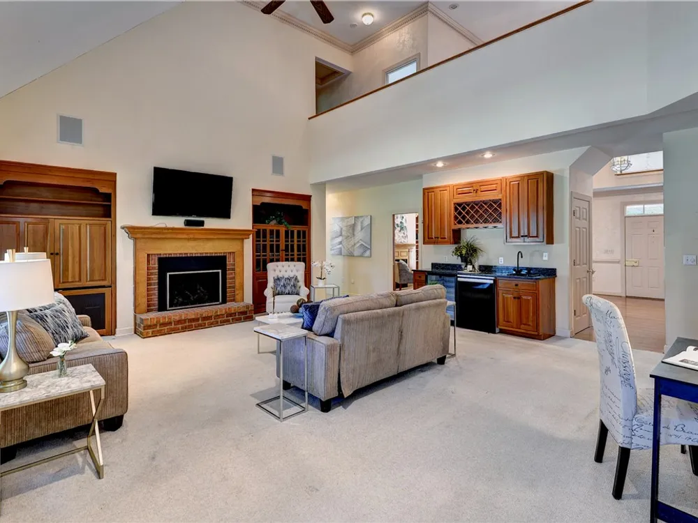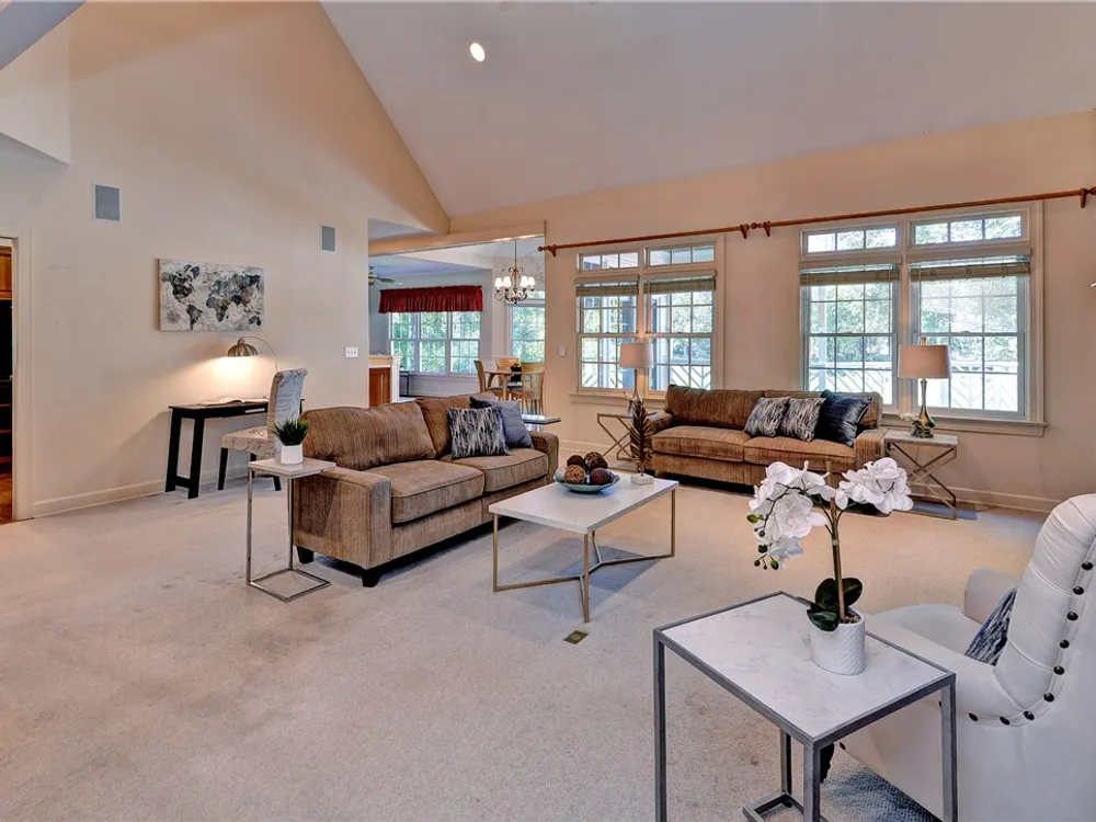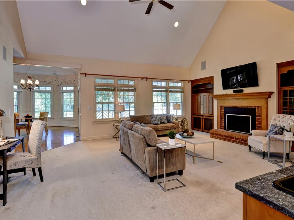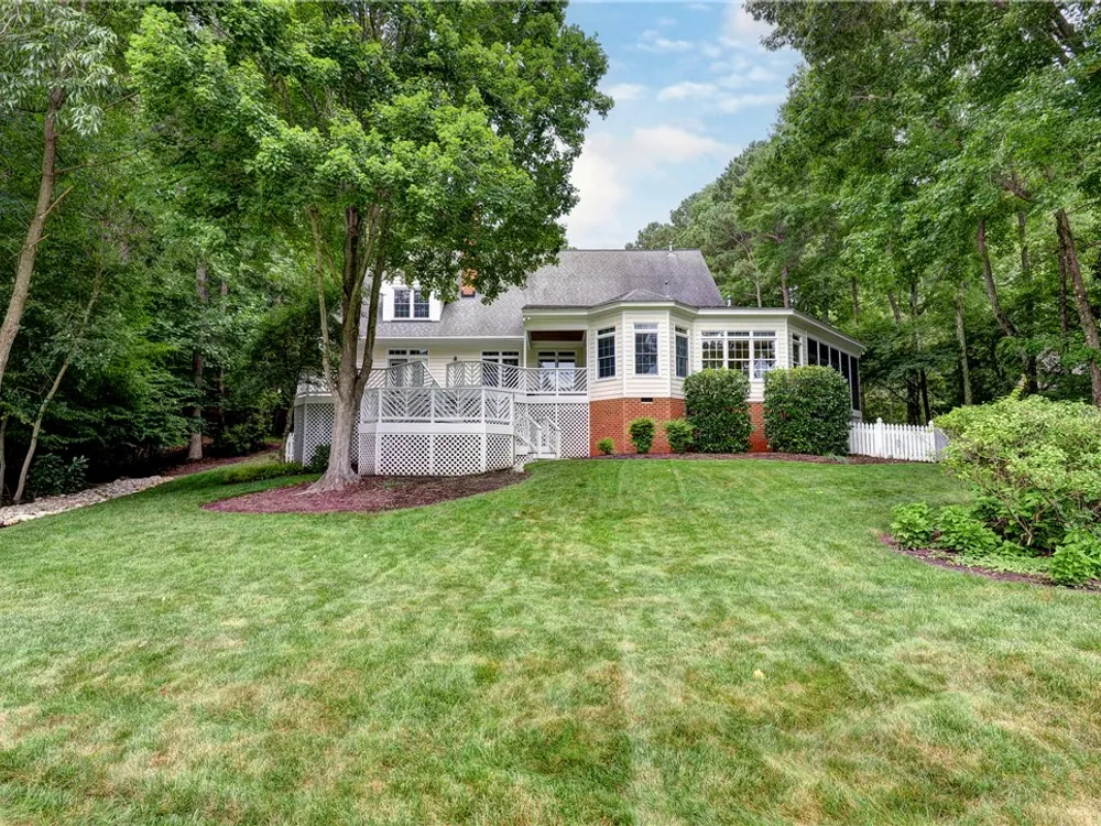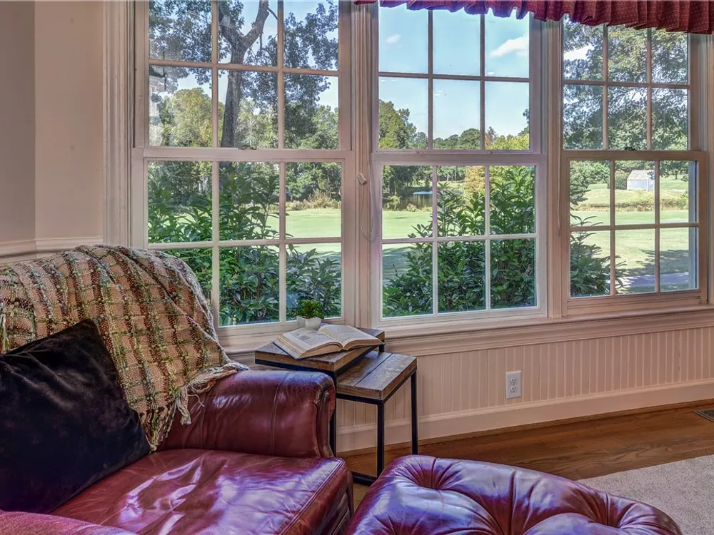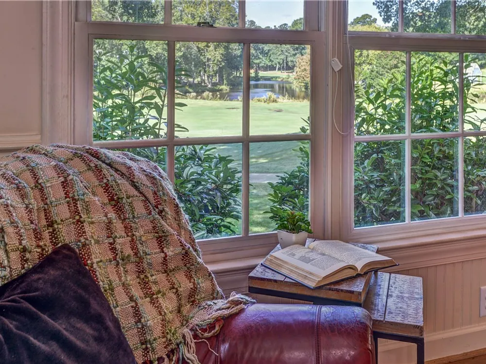Set on the 17th fairway of the Blackheath golf course, this exceptional custom-built home offers panoramic golf and water views by day -- and breathtaking elevated sunsets in the evening. A dramatic circular staircase anchors the spacious, welcoming foyer, flanked by an expansive dining room with built-in corner cabinets. The study or living room features built-ins and a gas fireplace, while the great room includes even more custom built-ins and a top-tier gas fireplace. The chef’s kitchen offers inset cabinetry, gas cooking, center island and abundant storage. A generous breakfast area with bay window overlooks stunning golf and water vistas, and a cozy keeping area is perfect for casual conversation or cocktails. The three-season porch with a beadboard ceiling and Eze-Breeze windows extends the living space. The first-floor primary suite has deck access, tranquil views and is wired for a hot tub. Upstairs are three additional bedrooms and a large bonus room with built-ins. Enjoy outdoor living from the multi-level deck with a gas line for grilling. Updates include: roof (2010), generator (2020), water heater (2022) and HVAC (approx. 10 years old). Oversized two-car garage.