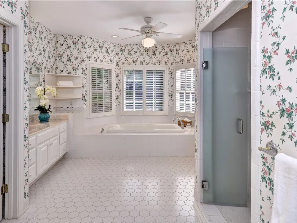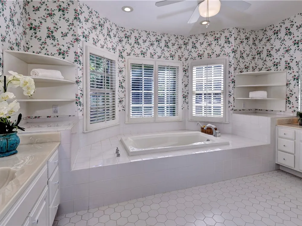 - Wet Bar, Bookcases, Built-in Features, Bay Window, Ceiling Fan(s), Dining Area, Separate/Formal Dining Room, Eat-in Kitchen, Garden Tub/Roman Tub, High Ceilings, Pantry, Pull Down Attic Stairs, Recessed Lighting, Walk-In Closet(s), Workshop