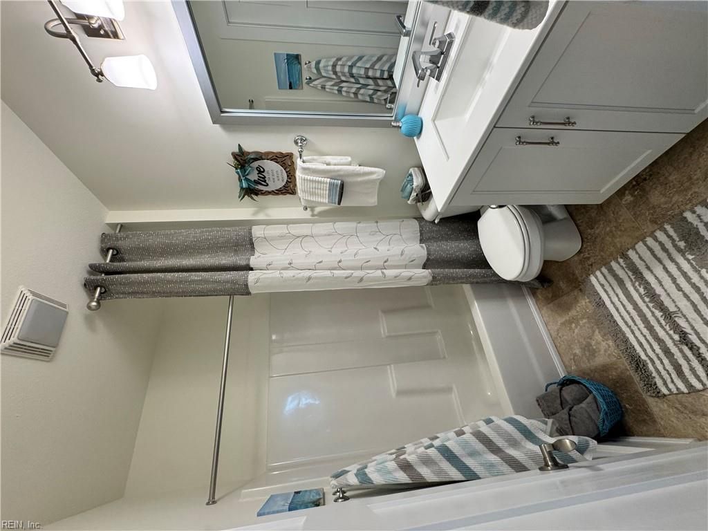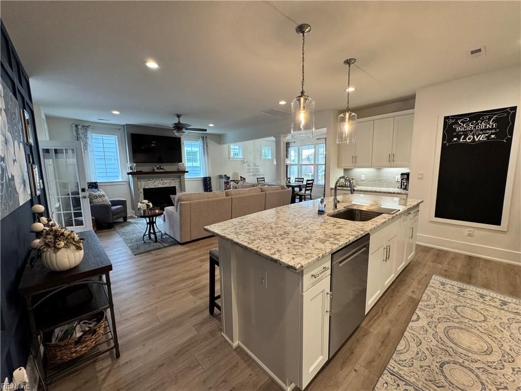 Welcome to 110 Creek Lane in sought-after Suffolk vibrant 55+ community! This spectacular DETACHED condominium offers stunning custom upgrades throughout and beautiful views of the water and sunsets from the second level covered deck. The first floor features a spacious primary suite with an en suite bath and private covered patio leading to your own enclosed courtyard. You'll also find an additional bedroom and full bath on the main level, ideal for guests or an office. Upstairs, discover two additional bedrooms, a full bath, and an oversized flex room that opens to a covered porch-perfect for relaxing or entertaining! Enjoy the convenience of a 220V garage outlet for your electric vehicle, and a 10 foot extended outdoor patio with custom pavers and artificial turf for easy maintenance. Additional highlights include custom accent walls, built-in mudroom cabinetry and a gourmet kitchen with upgraded cabinets, tile backsplash and quartz countertops. This home truly has it all!