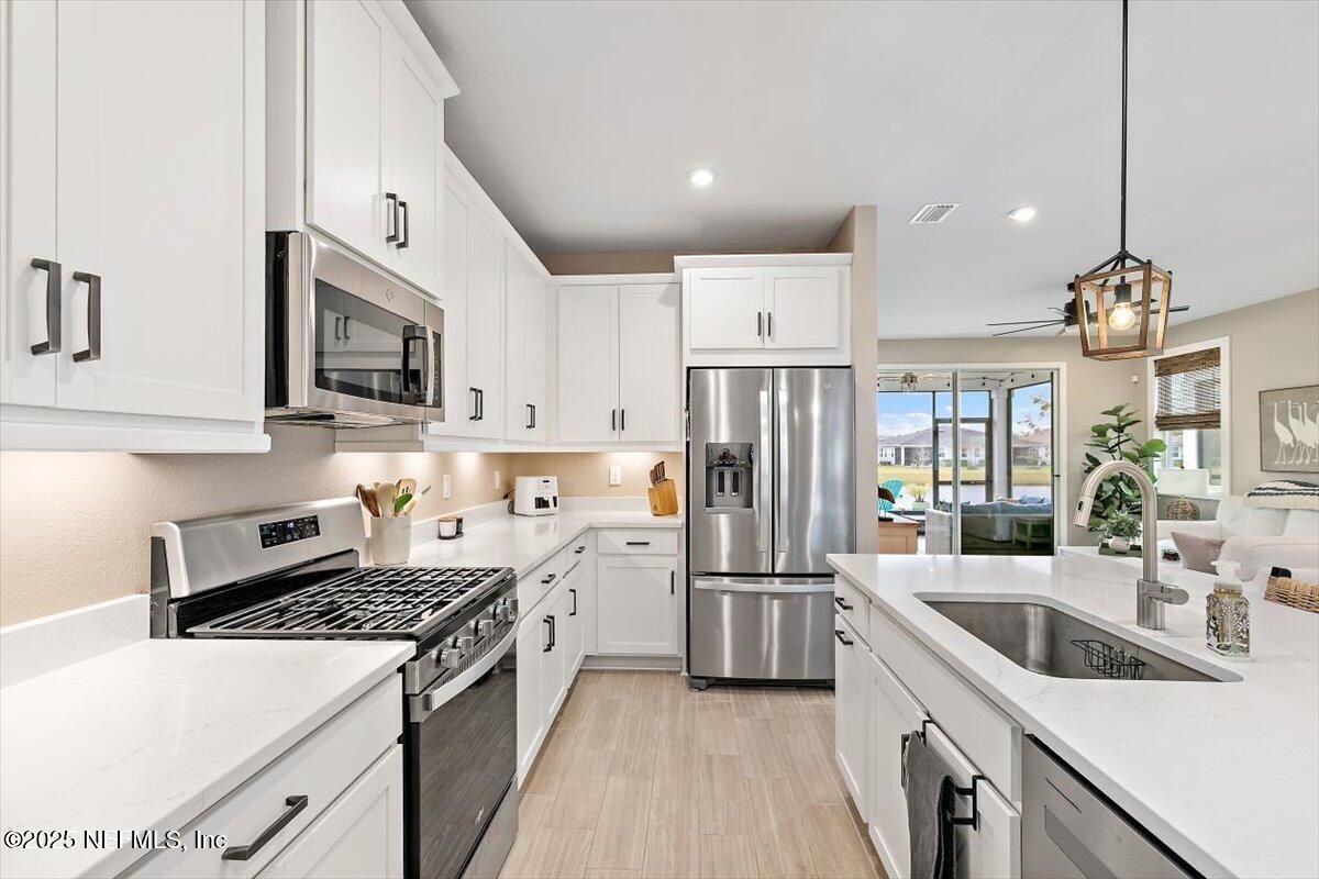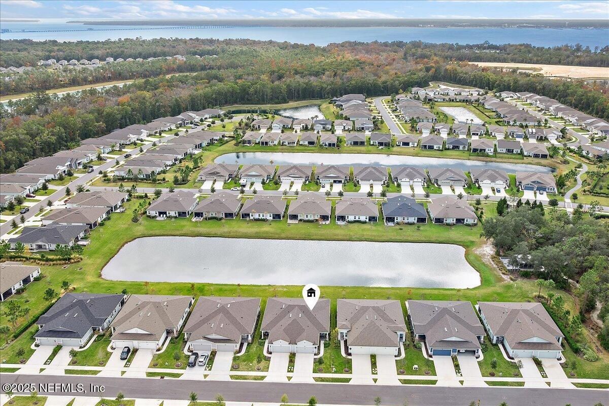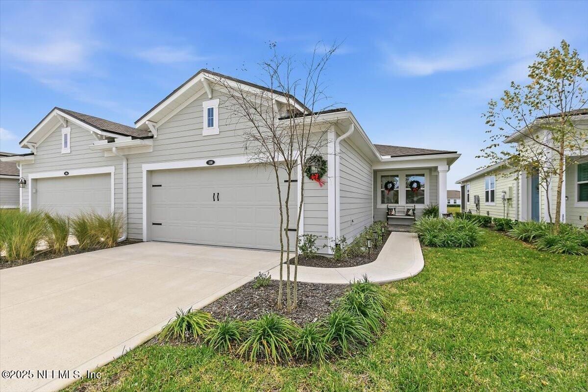 Located in the highly desirable 55+ WaterSong at RiverTown, 110 Fly Line showcases the popular River floor plan with a charming Low Country elevation. Enjoy lock-and-leave living since the HOA covers exterior maintenance, lawn care, and landscaping. This beautifully designed villa features a light-filled corner study accented by stylish barn doors and a thoughtfully designed zero-entry owner's shower for added convenience and comfort. The spacious, open-concept kitchen offers a large island that seamlessly overlooks the great room and dining area, perfect for everyday living and entertaining. Step outside to the screened-in lanai and enjoy peaceful mornings and stunning sunsets with serene pond views, or relax on the extended paver patio overlooking the tranquil water. Additional highlights include a spacious two-car garage with epoxy flooring and a water softener, as well as custom window trim that adds an elevated, designer touch throughout the home. WaterSong is an an exclusive gated 55+ community within RiverTown, a master-planned neighborhood blending modern, resort-style amenities with a pristine natural setting along the St. Johns River. And just a short walk from your door, enjoy all the resort-style amenities Watersong offers: clubhouse, gym, pickleball, bocce ball, resort-style pool, lap pool, and more. Plus, as part of RiverTown, you also get access to the RiverClub, RiverHouse, and RiverLodge. Miles of scenic trails and riverfront dining round out this unbeatable 55+ lifestyle. Enjoy miles of walking and biking trails, sidewalks, and amenities designed for active living, social connection, and enjoying the Florida sunshine. Come make Watersong at Rivertown your new place to call home!