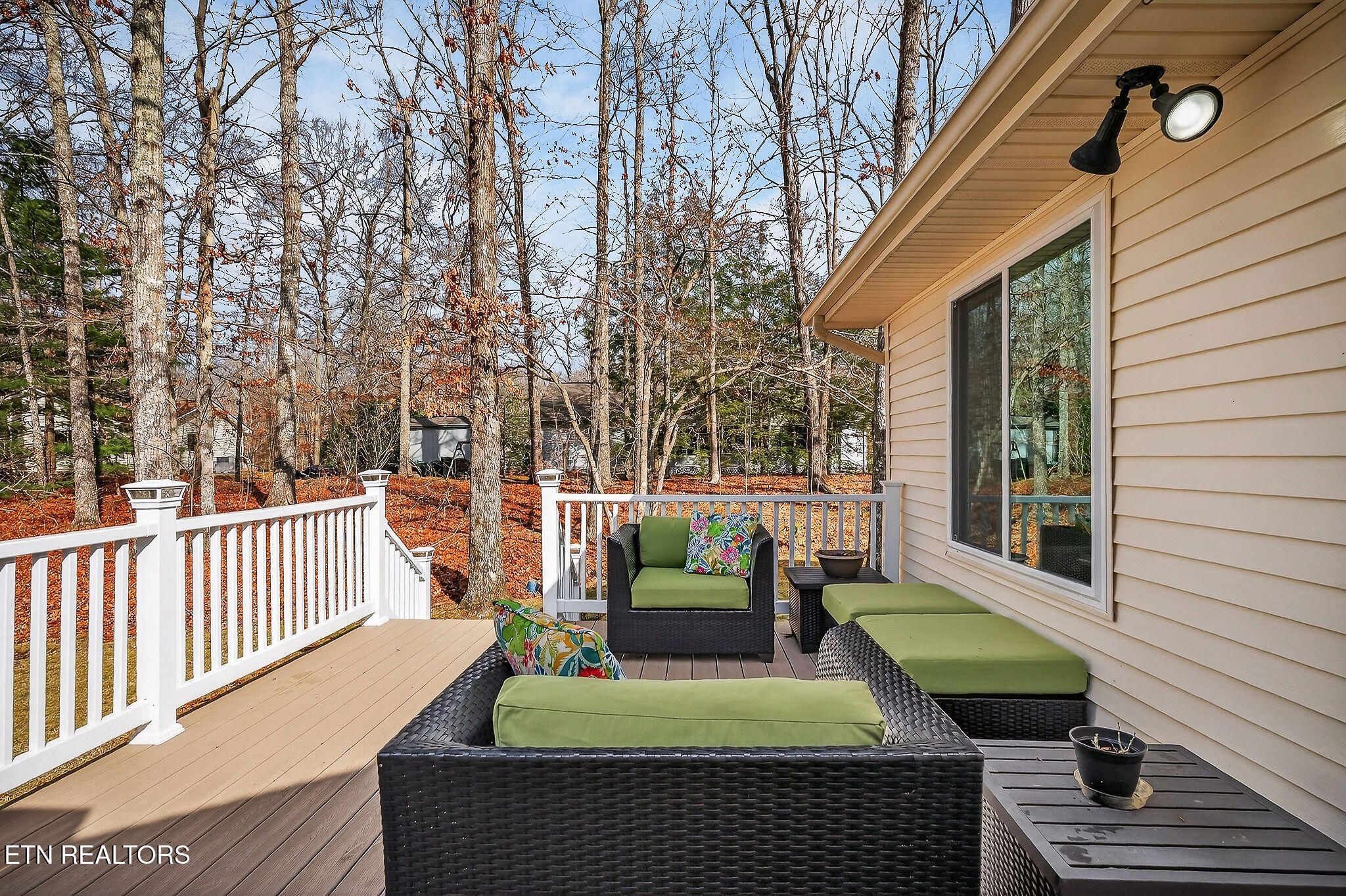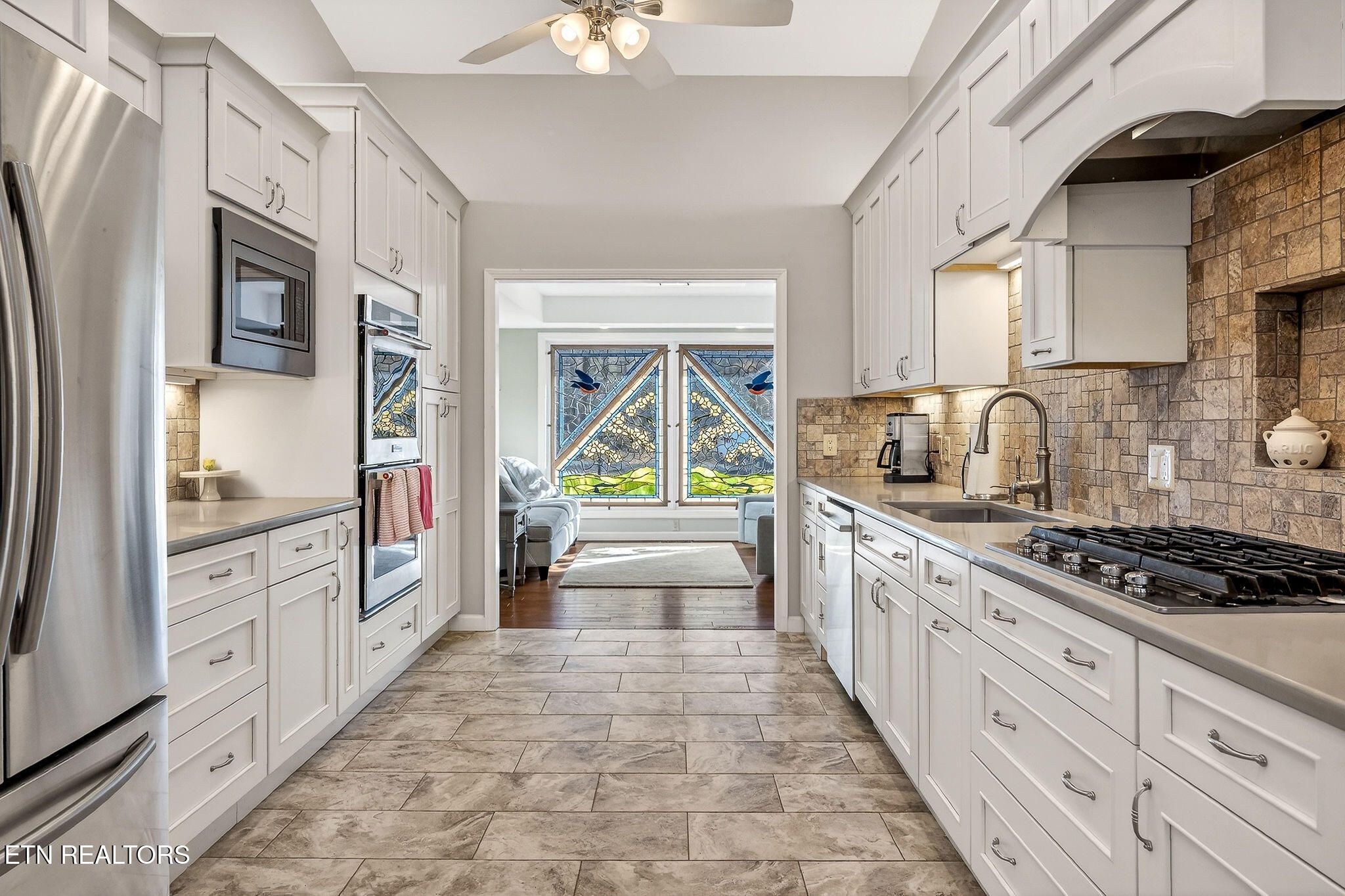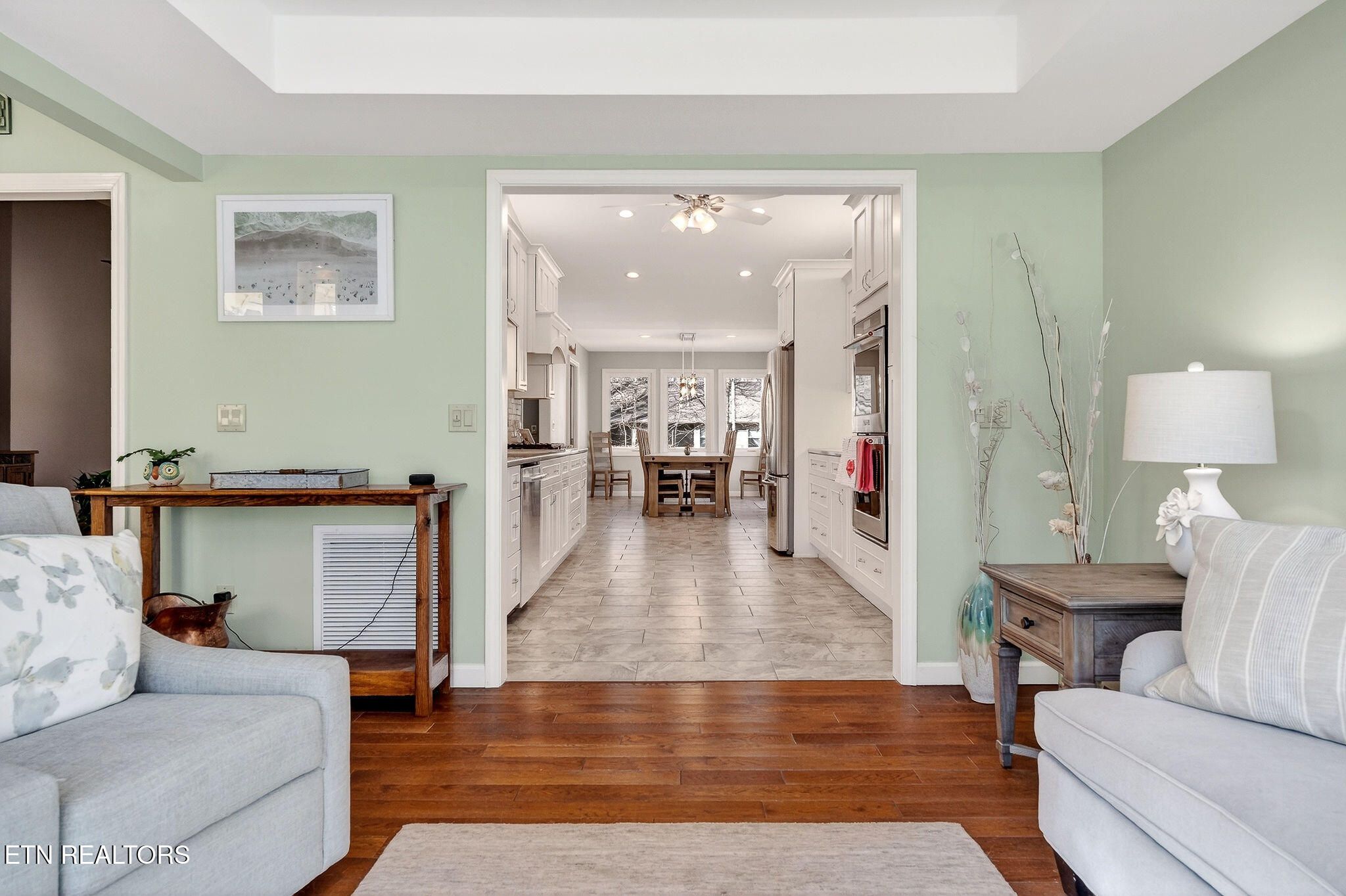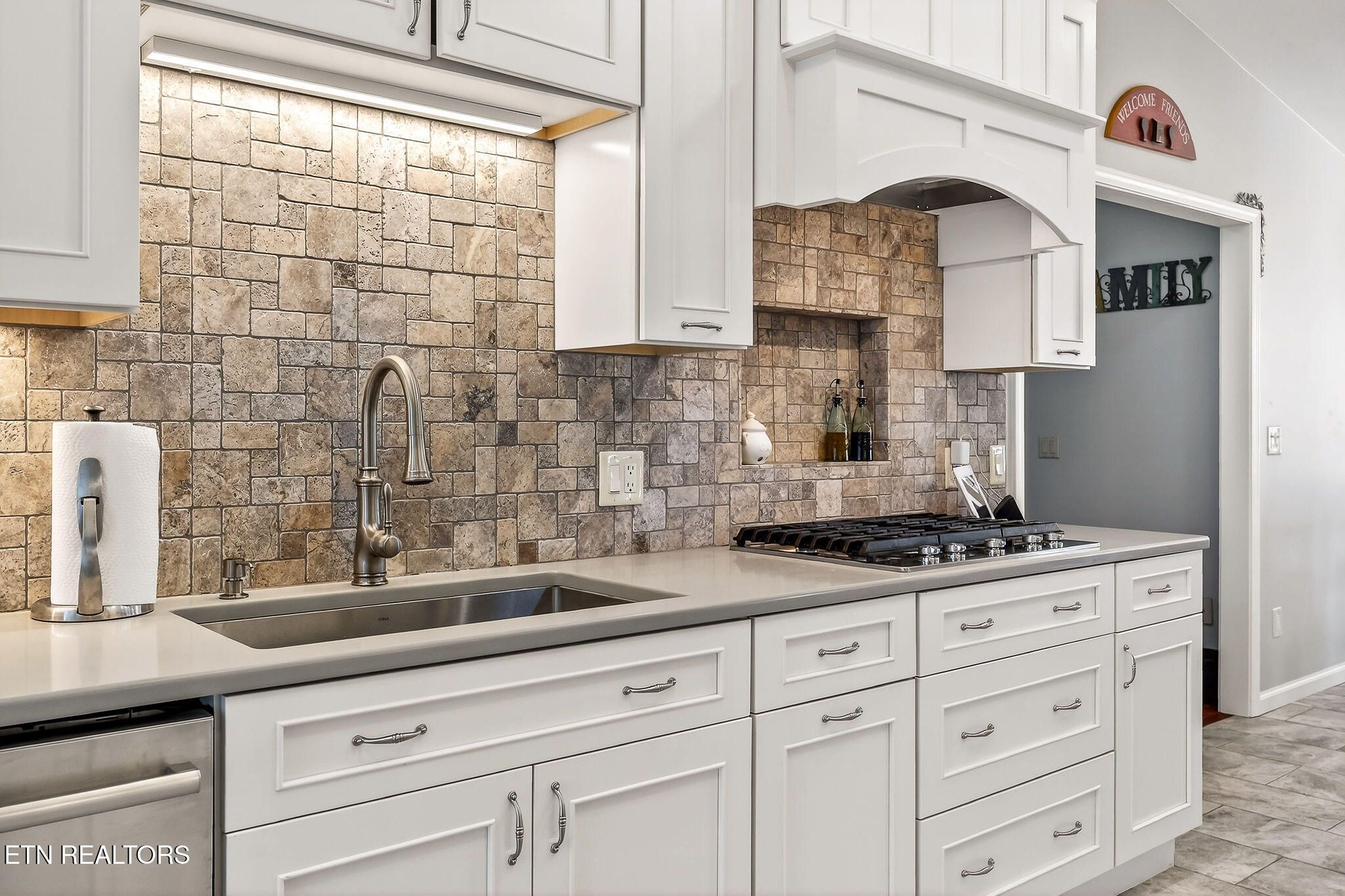 Step inside this beautifully reimagined, single-story ranch home where thoughtful design meets effortless living. Completely renovated from top to bottom, this 2,070-square-foot residence offers the rare combination of refined finishes, functional flow, and true main-level living. Warm wood floors and elegant tile set the tone as you enter, leading you into a spacious great room crowned by a vaulted ceiling and anchored by a cozy gas fireplace—an inviting heart of the home made for gathering. Just beyond, a sunroom captures natural light and offers a peaceful retreat, while a small formal living area adds flexibility for entertaining or quiet conversation. The beautifully appointed stain glass windows are removeable, but they add to the ambiance of the room. The kitchen is both stunning and smartly designed, featuring quartz countertops, stainless steel appliances, double ovens, microwave, gas cooktop, soft-close cabinetry, and beautiful under- and over-cabinet lighting that adds warmth and dimension. Whether hosting friends or preparing a quiet meal at home, this space was created to be enjoyed. The same elevated finishes continue into the bathrooms, where quartz counters and quality details shine. The primary suite is a true sanctuary. The spa-inspired bath boasts a luxurious, no-curb walk-in shower with three shower heads, a towel-warming rack, dual sinks, and exceptional storage. An impressively large walk-in closet completes the suite, offering both elegance and ease. Two additional bedrooms provide comfort for guests or family, one featuring distinctive architectural ceiling details that add character and charm. Practical upgrades are woven seamlessly throughout the home, including a recently installed recirculating water heater, new windows, lever door handles for ease of use, ceiling fans, and generous storage spaces. A dedicated utility and mudroom enhance everyday living, while the open deck invites outdoor relaxation and entertaining. Car enthusiasts, hobbyists, or craftsmen will appreciate the oversized garage, which goes beyond a traditional two-car setup with an extra bay ideal for a workshop or additional storage. Perfectly located, this home places you close to nature and convenience alike—just minutes from two nearby lakes, less than half a mile from the boat ramp, under a mile to the grocery store, and only moments from restaurants and I-40 for effortless access. This is more than a home—it's a thoughtfully crafted lifestyle, where comfort, beauty, and location come together in perfect harmony.