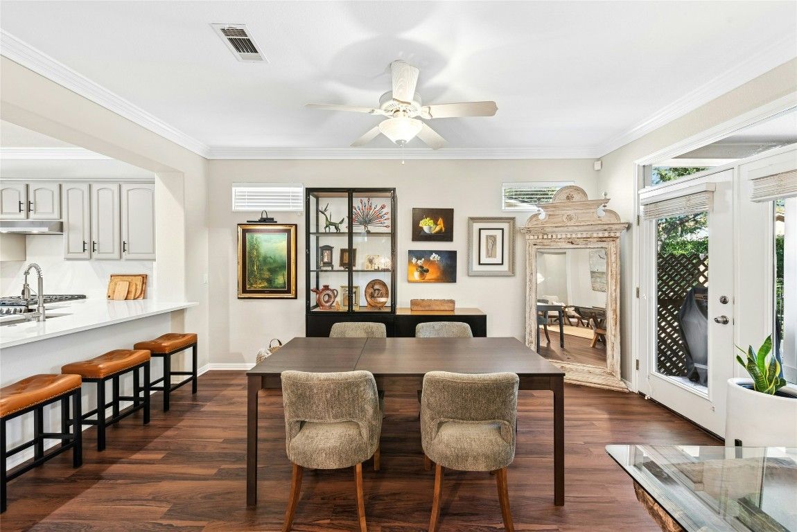 - Breakfast Bar, Built-in Features, Ceiling Fan(s), Crown Molding, Separate/Formal Dining Room, Multiple Dining Areas, Main Level Primary, NoInteriorSteps, Open Floorplan, Pantry, Quartz Countertops, Recessed Lighting, Walk-In Closet(s)