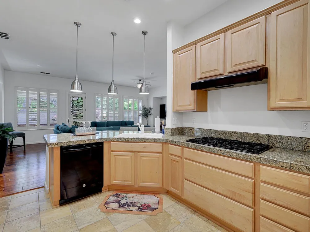 - Built-In Electric Oven, Free-Standing Refrigerator, Gas Cooktop, Gas Water Heater, Range Hood, Ice Maker, Dishwasher, Disposal, Microwave, Double Oven, Self Cleaning Oven