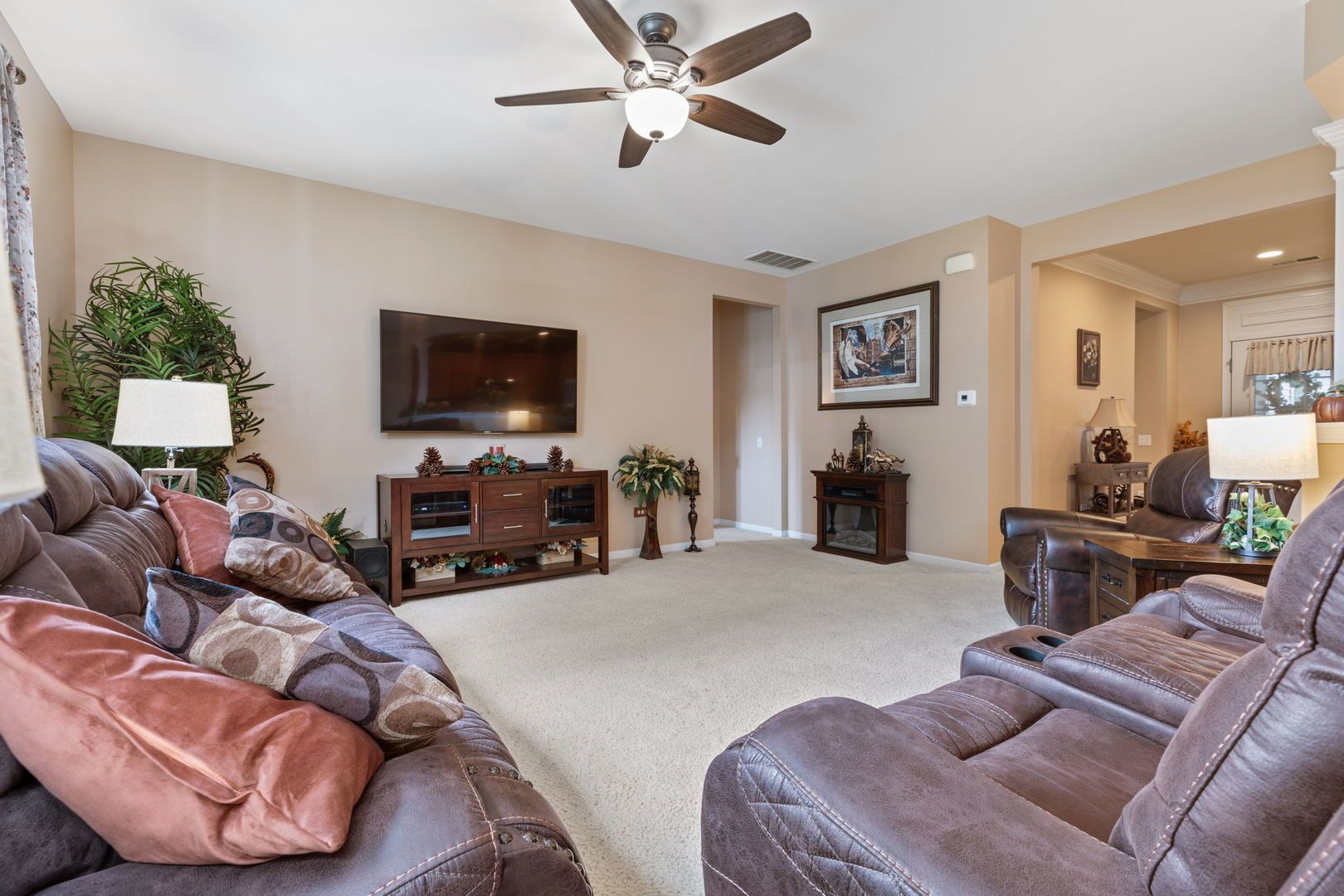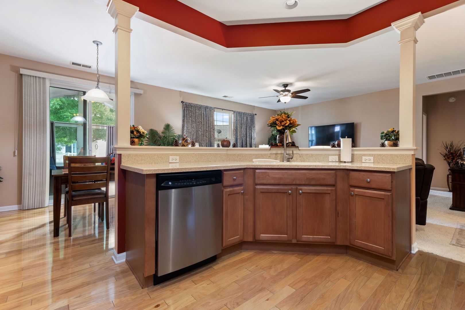 Welcome to this charming 2-bedroom, 2-bath single-level home in a secure 55+ gated community. Designed for comfort and convenience, the home features a spacious master suite with a large walk-in closet, a bright and airy 3-seasons room perfect for relaxing, and an extra-deep garage complete with pull-down attic stairs for additional storage. The open layout makes daily living easy, while the thoughtful storage options keep everything organized. Several new upgrades to the home: Driveway: 2024, Garbage Disposal: 2025, Furnace: 2024, Washer /Dryer: 2024, Oven/stove: 2024, Additional insulation in the attic: 2024, Water Heater: 2020, Roof: 2015, microwave: 2015. Residents here enjoy an active, resort-style lifestyle with access to a beautiful clubhouse, two sparkling pools, fitness center, bocce ball courts, and tennis courts. Whether you're looking to stay active or simply relax, this community has something for everyone. Don't miss the opportunity to make this inviting home yours!